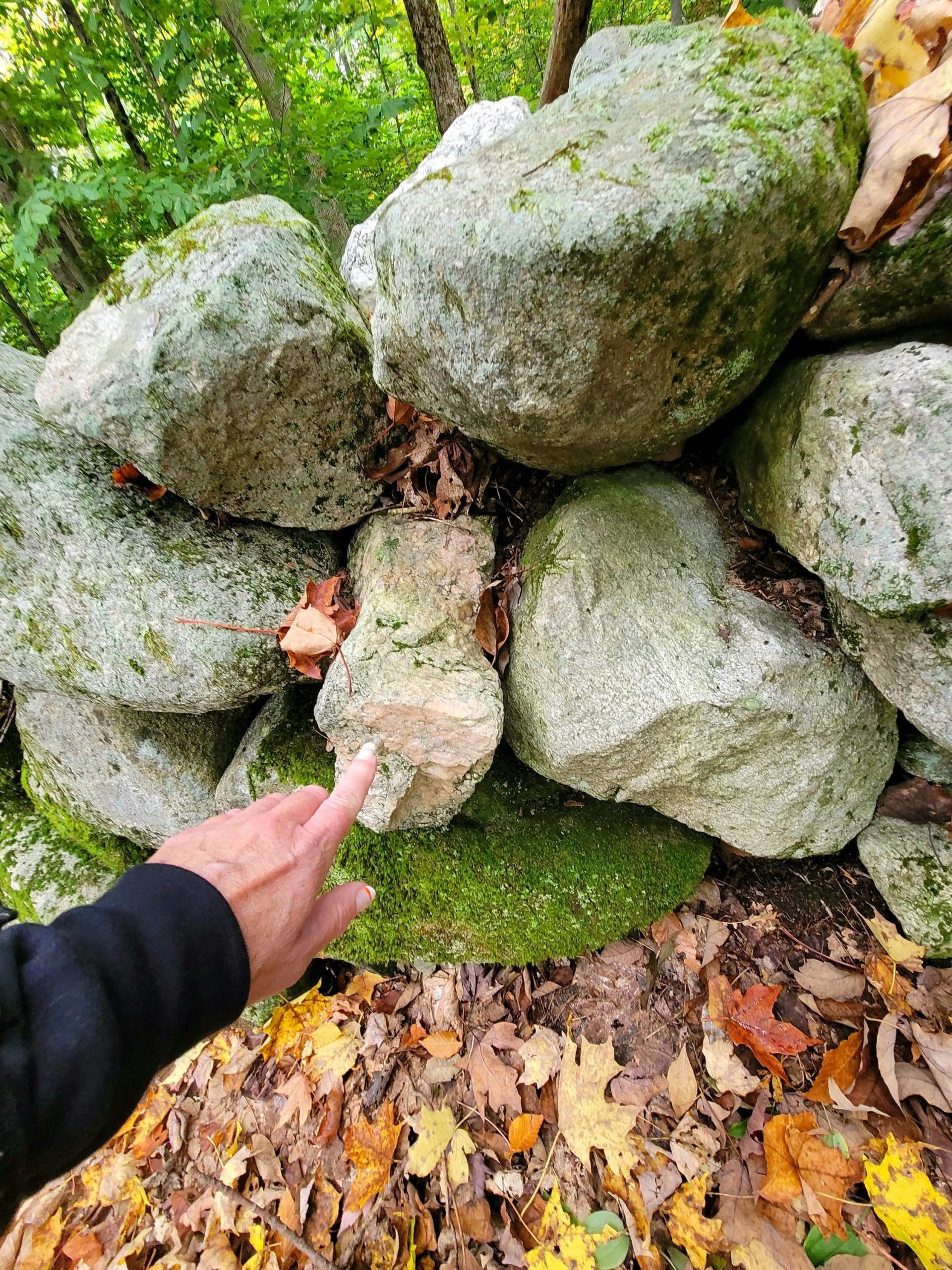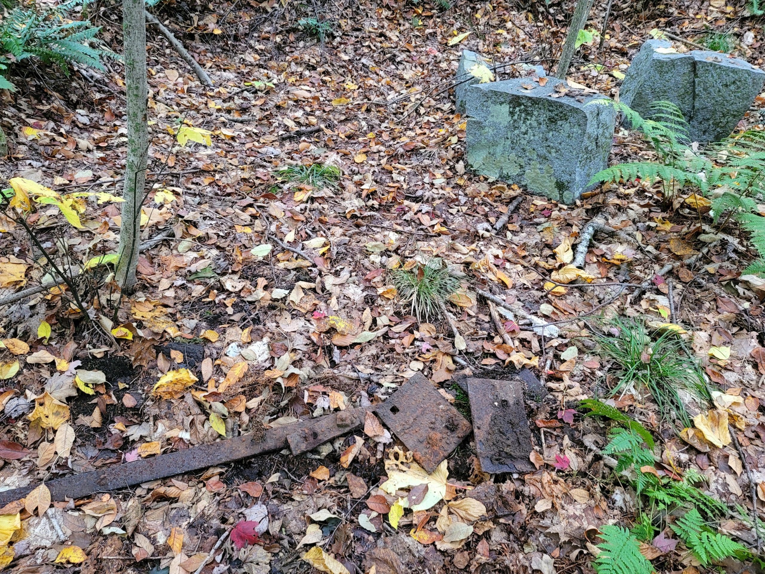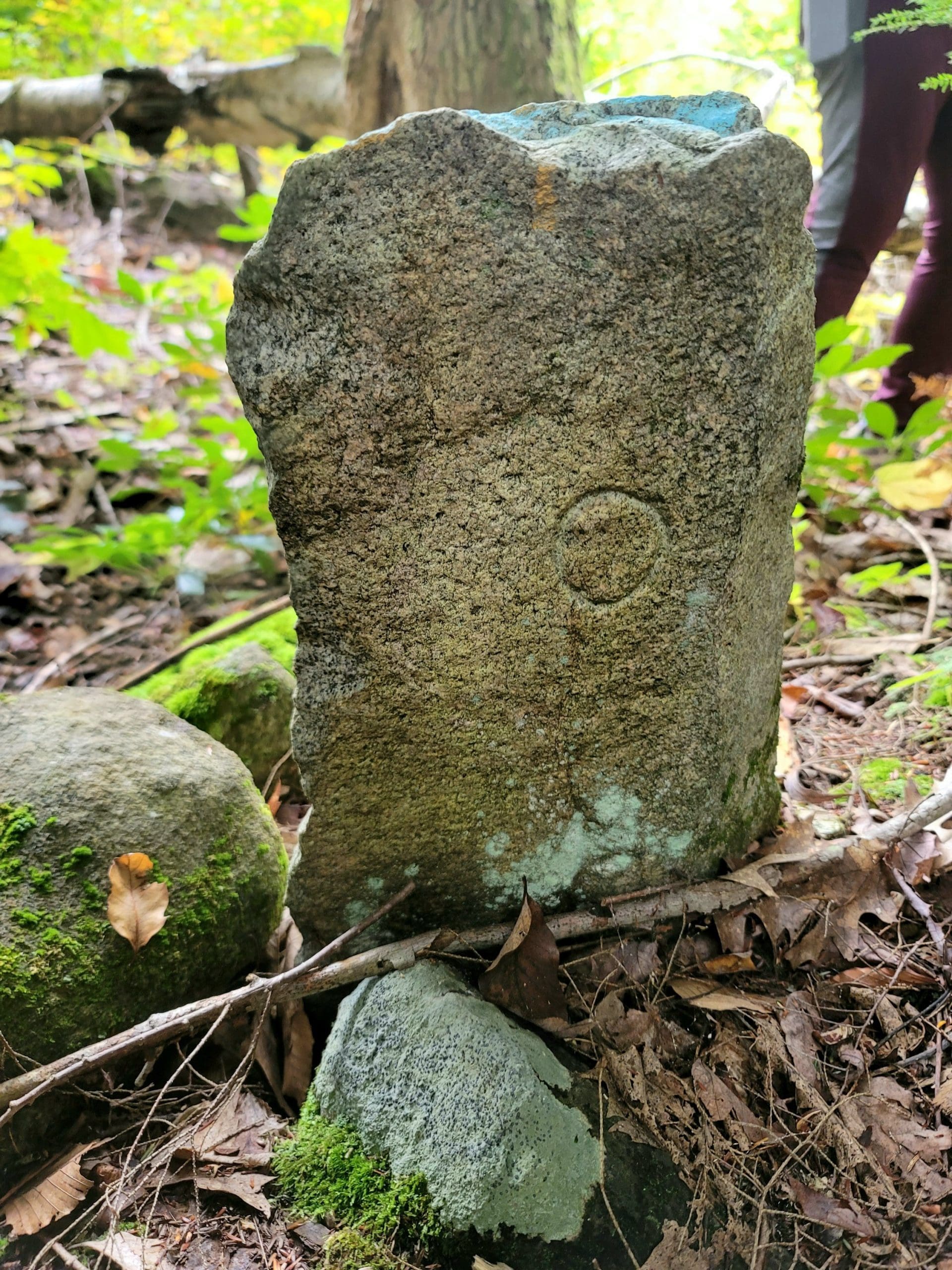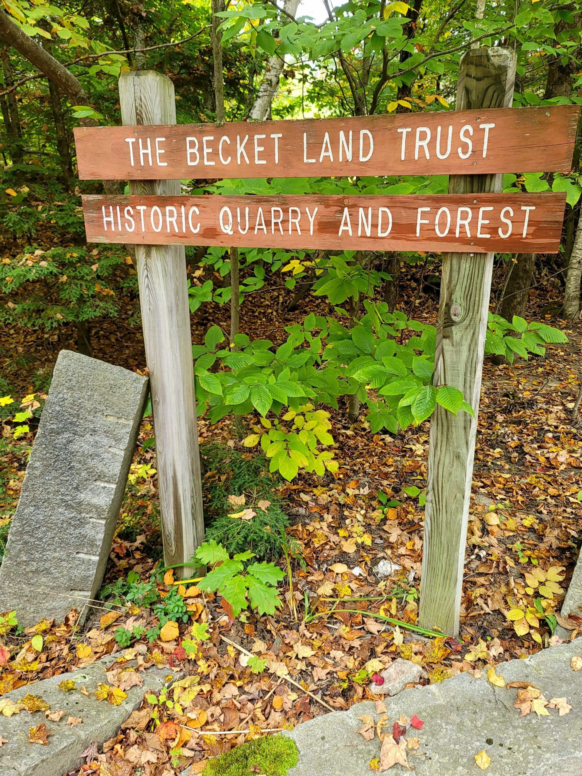 Our scouting trip with Tom Hoffman and Terri Thorne was to find the Bowe Quarry in Otis, armed with several types of GPS and maps, we followed the old rail and found some metal and quarry stone, however at Bonny Rigg Road the route continued onto private property and that is where we believe the Bowe to be. We continued instead on the old stone walled road to North Blandford to where the Otis/Becket boundary stone is, a nice cellar hole and the Turnpike was cut thru. The old road to the lower quarry was found here too.