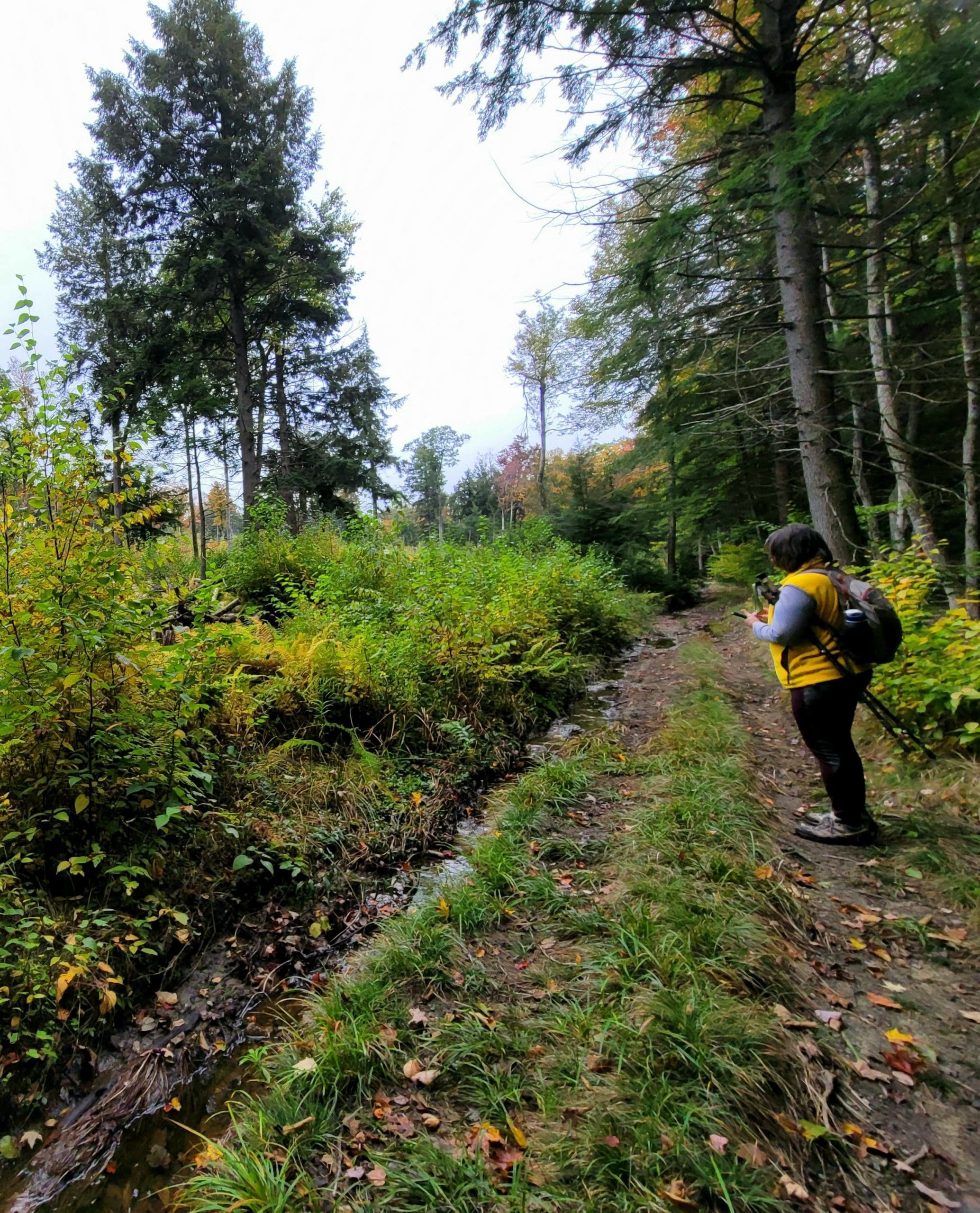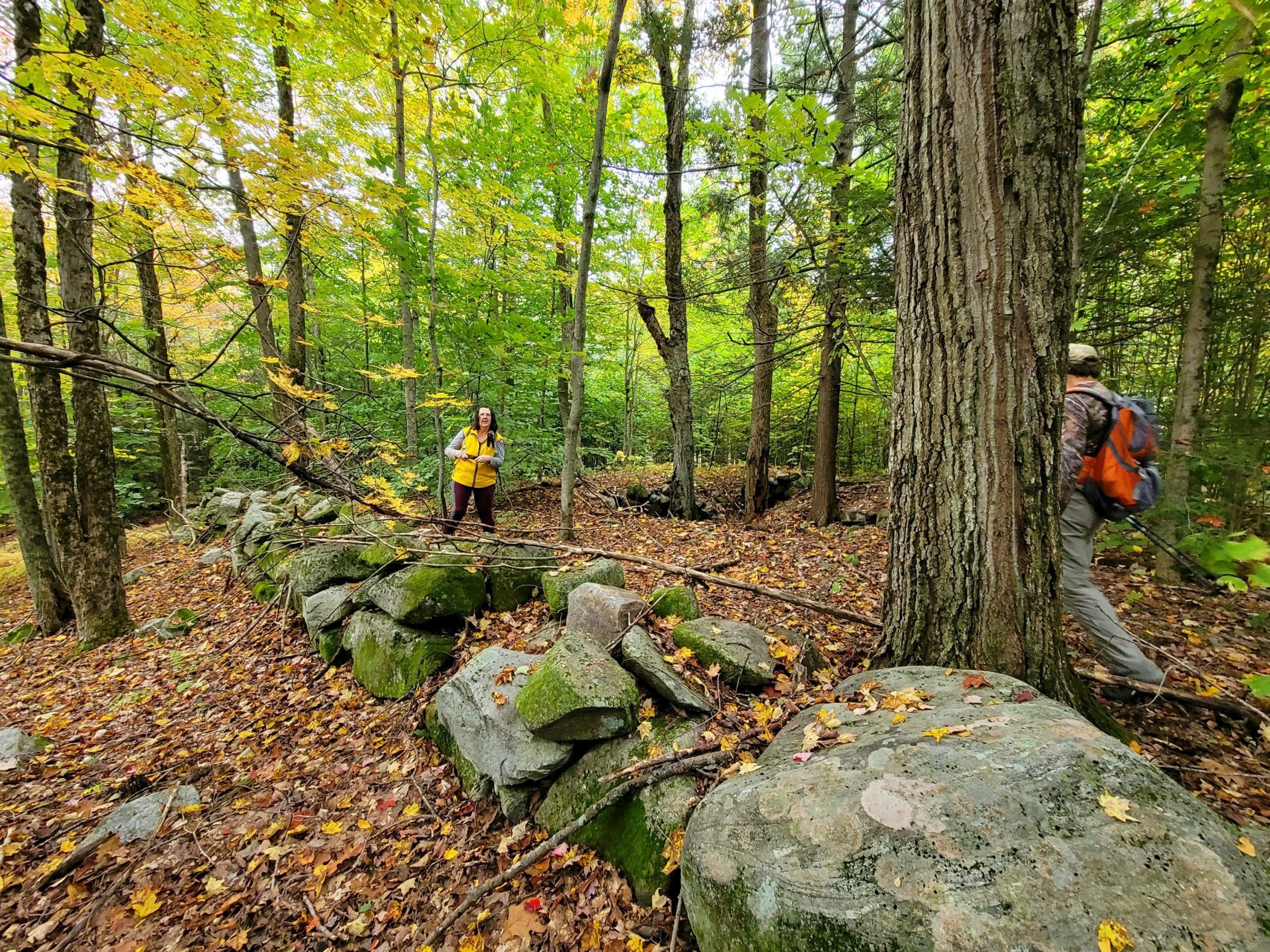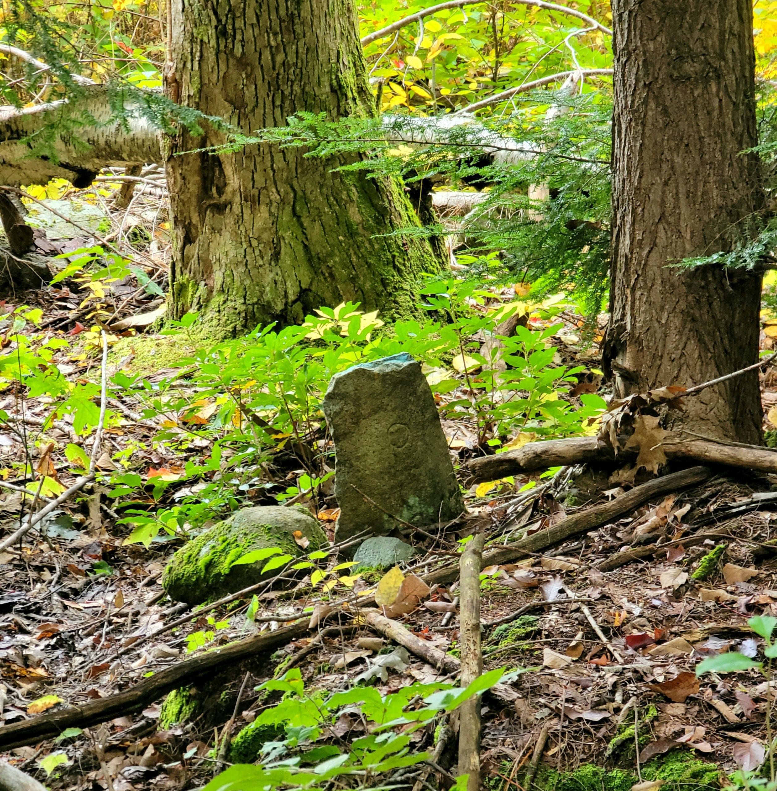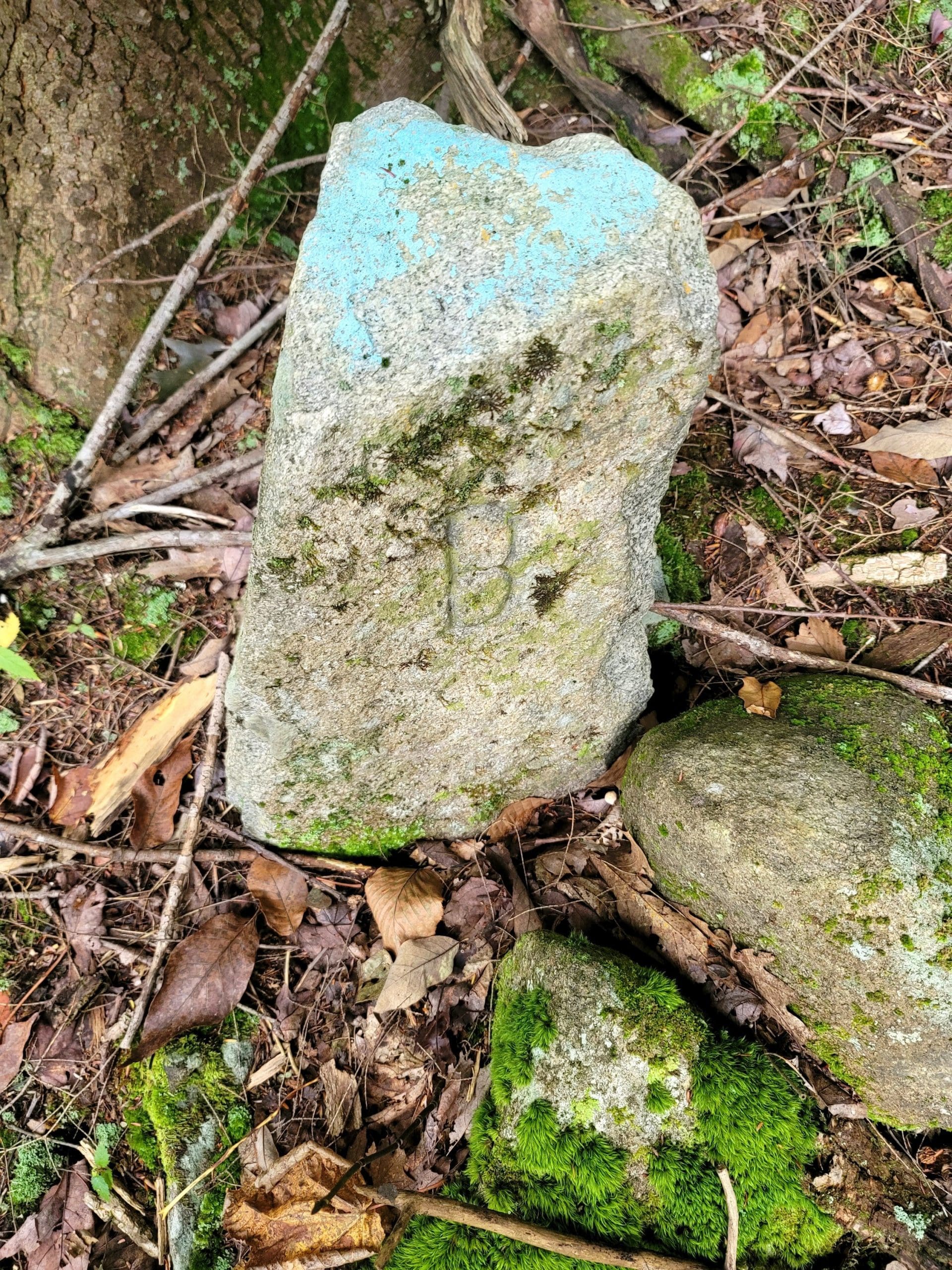 Our scouting trip with Tom Hoffman and Terri Thorne was to find the Bowe Quarry in Otis, armed with several types of GPS and maps, we followed the old rail and found some metal and quarry stone, however at Bonny Rigg Road the route continued onto private property and that is where we believe the Bowe to be. We continued instead on the old stone walled road to North Blandford to where the Otis/Becket boundary stone is, a nice cellar hole and the Turnpike was cut thru. The old road to the lower quarry was found here too.