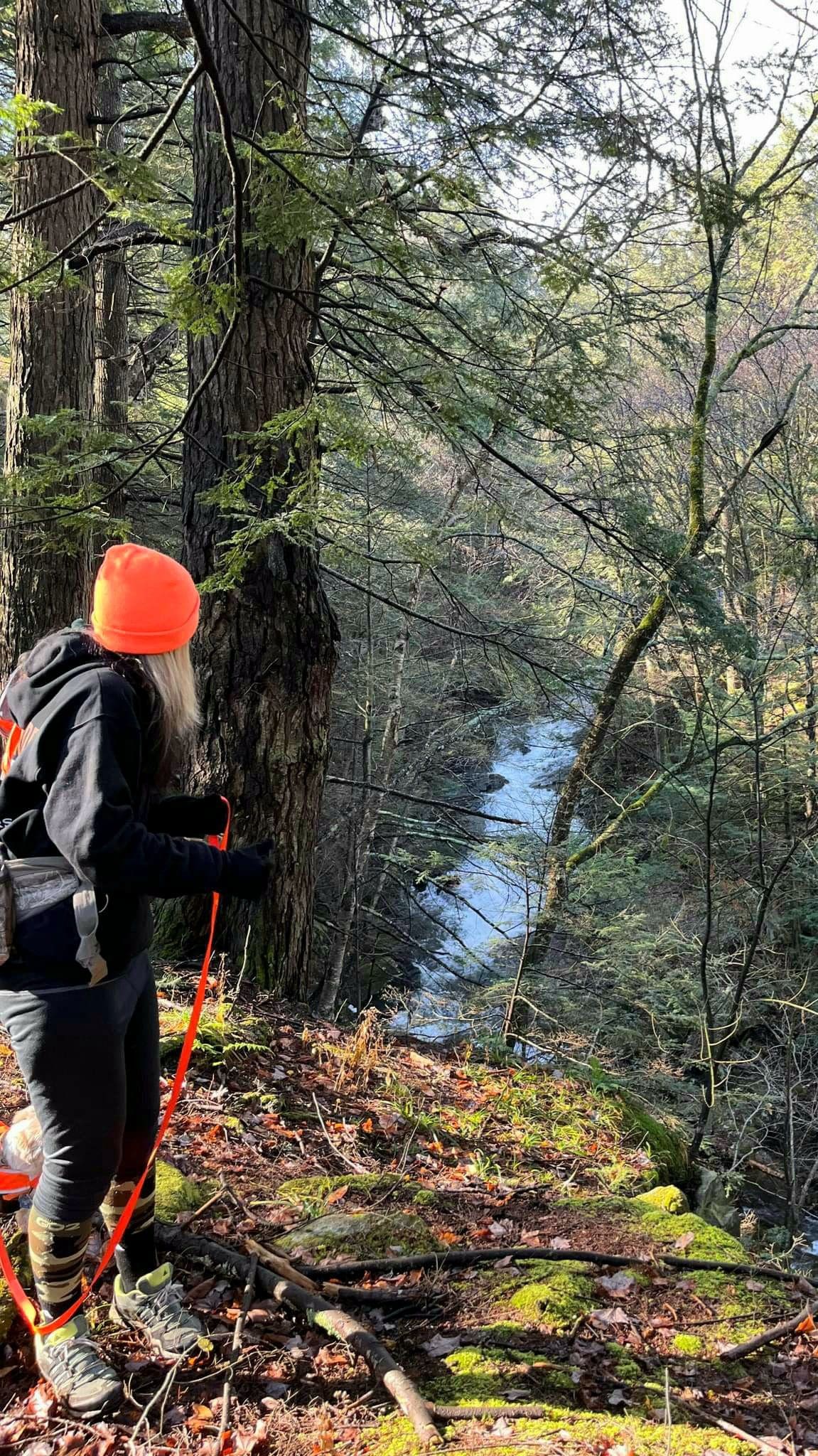 The Becket Ravine on Brooker Hill Road was mystical in early morning fog, towering cliff above the falls is massive. Follow the short footpath from the road to the lookout. An interesting large structure stands next to it, old maps show a barn. Giant boulders for walls and a brick lined square sistern of some sort farther out in front. A nice walk from the Becket Atheneum, be sure to stop in! Catch this one in Christy Butler’s book www.berksire-destinations.com.