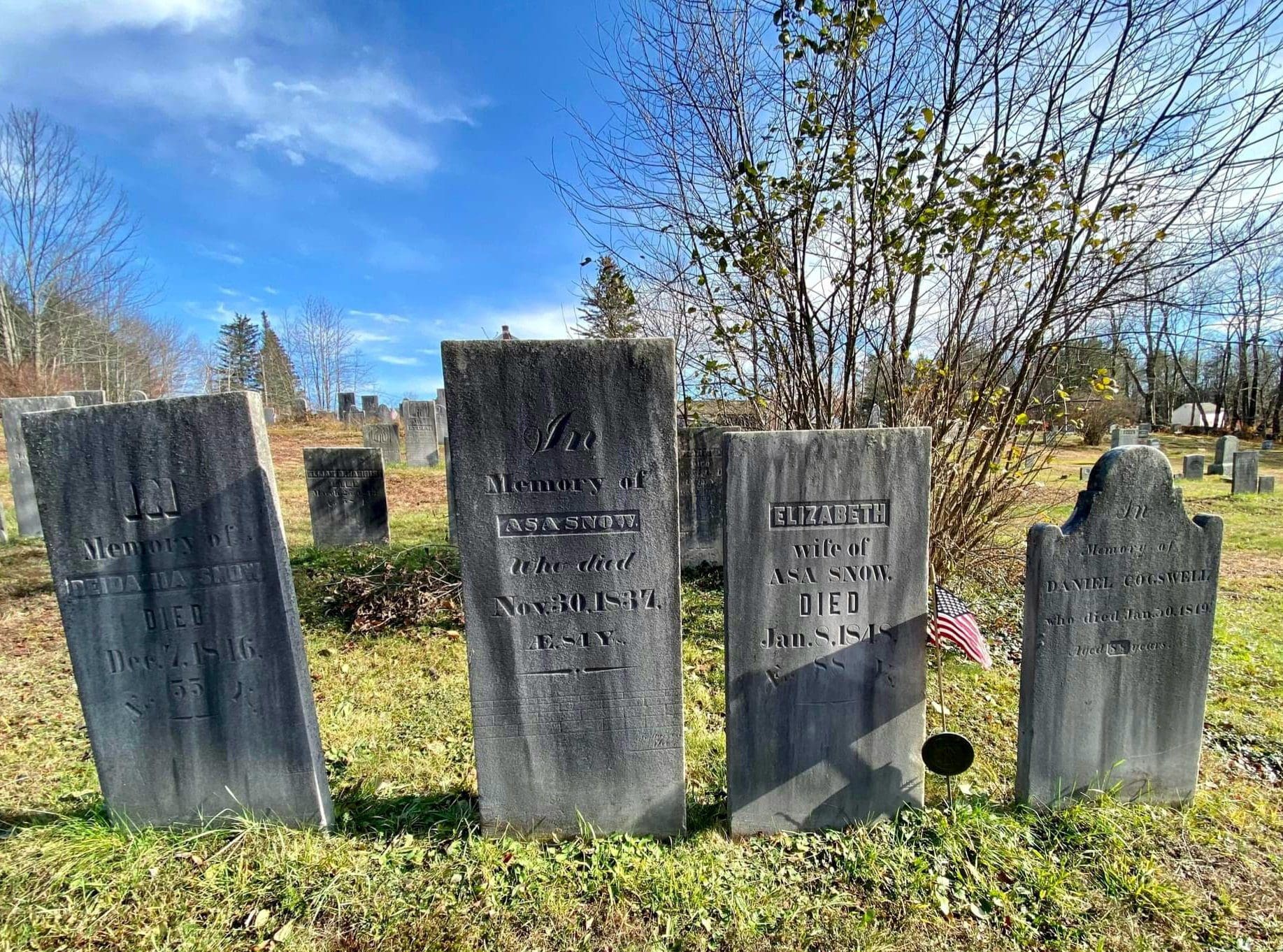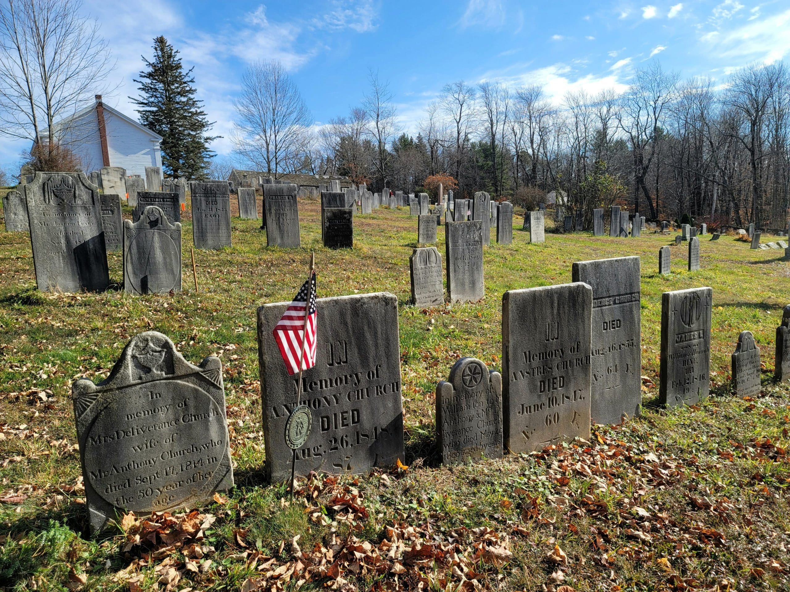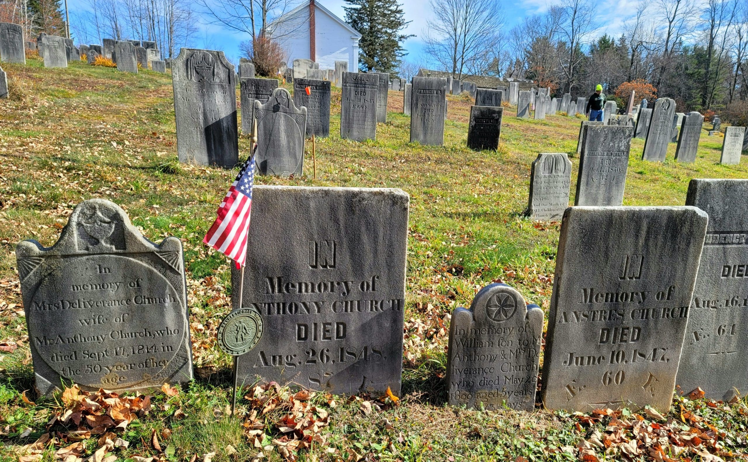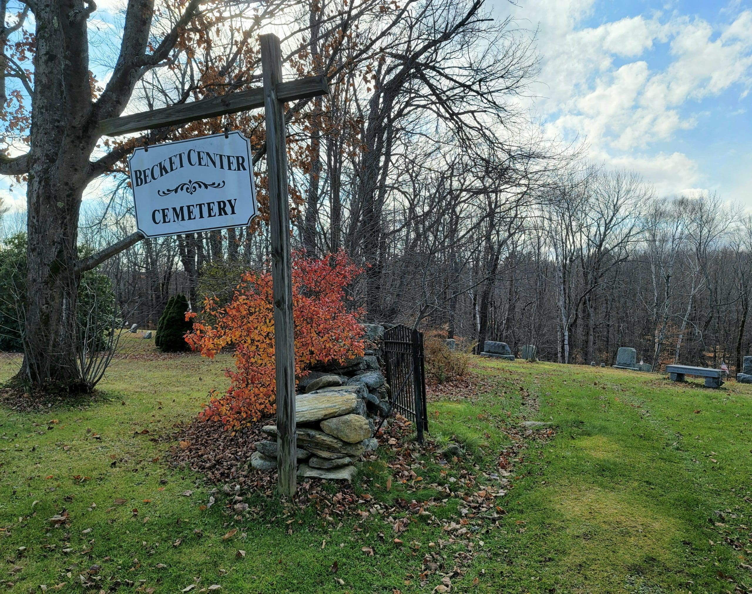 The Becket Center Cemetery established 1757 as the first burying ground in the township, behind the First Congregational Church. The oldest memorials of the town can be found here. Reading the inscriptions is quite fascinating, killed by a cart, accidentally shot for a deer and more interesting stories. The bell from the steeple being renovated can be viewed also. 21 Revolutionary soldiers rest here as well.