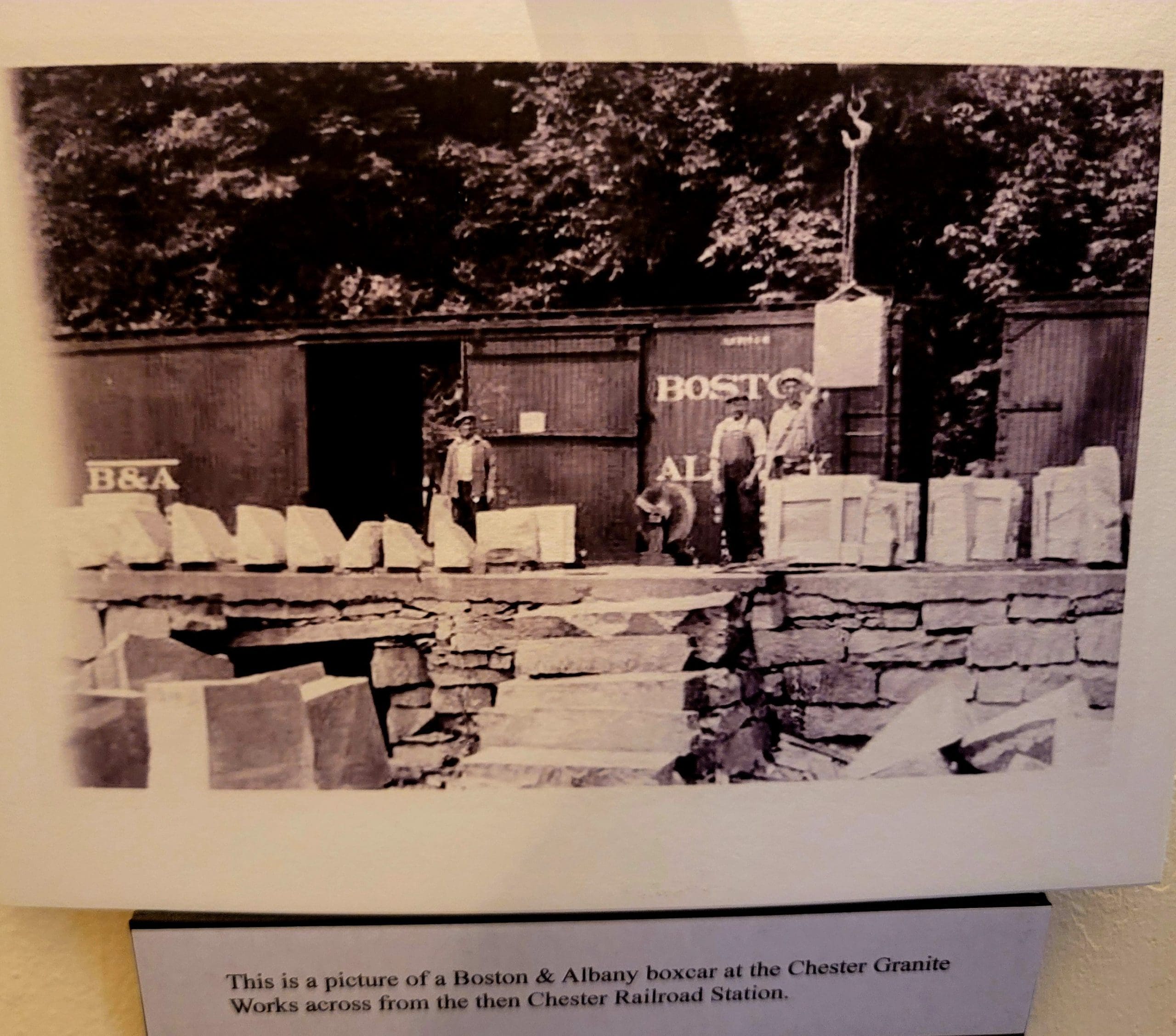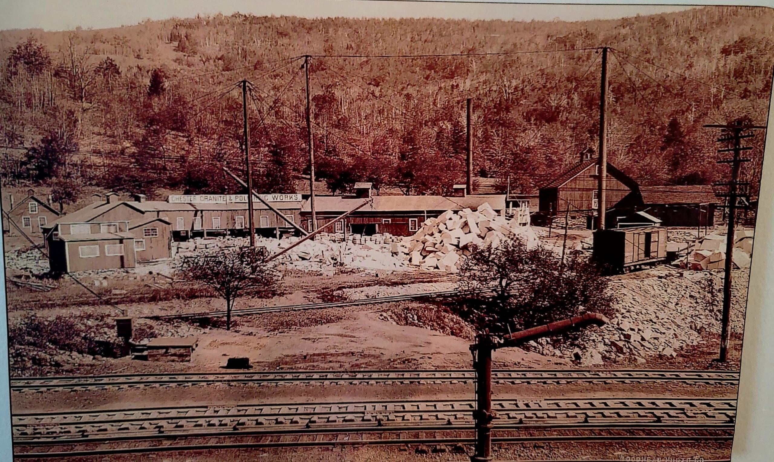 Now lets go back in time….the Chester Granite Works was a staple in Chester during the quarry era, here near the railstation the granite was brought down to the village via the Chester and Becket Railroad from Becket to work and polish the stone. Gravestones were also made here. It was also called the Chester and Hudson Granite Co. at one time. Learn more. Go see Dave Pierce at the Chester Railroad Station! www.chesterrailwaystation.net