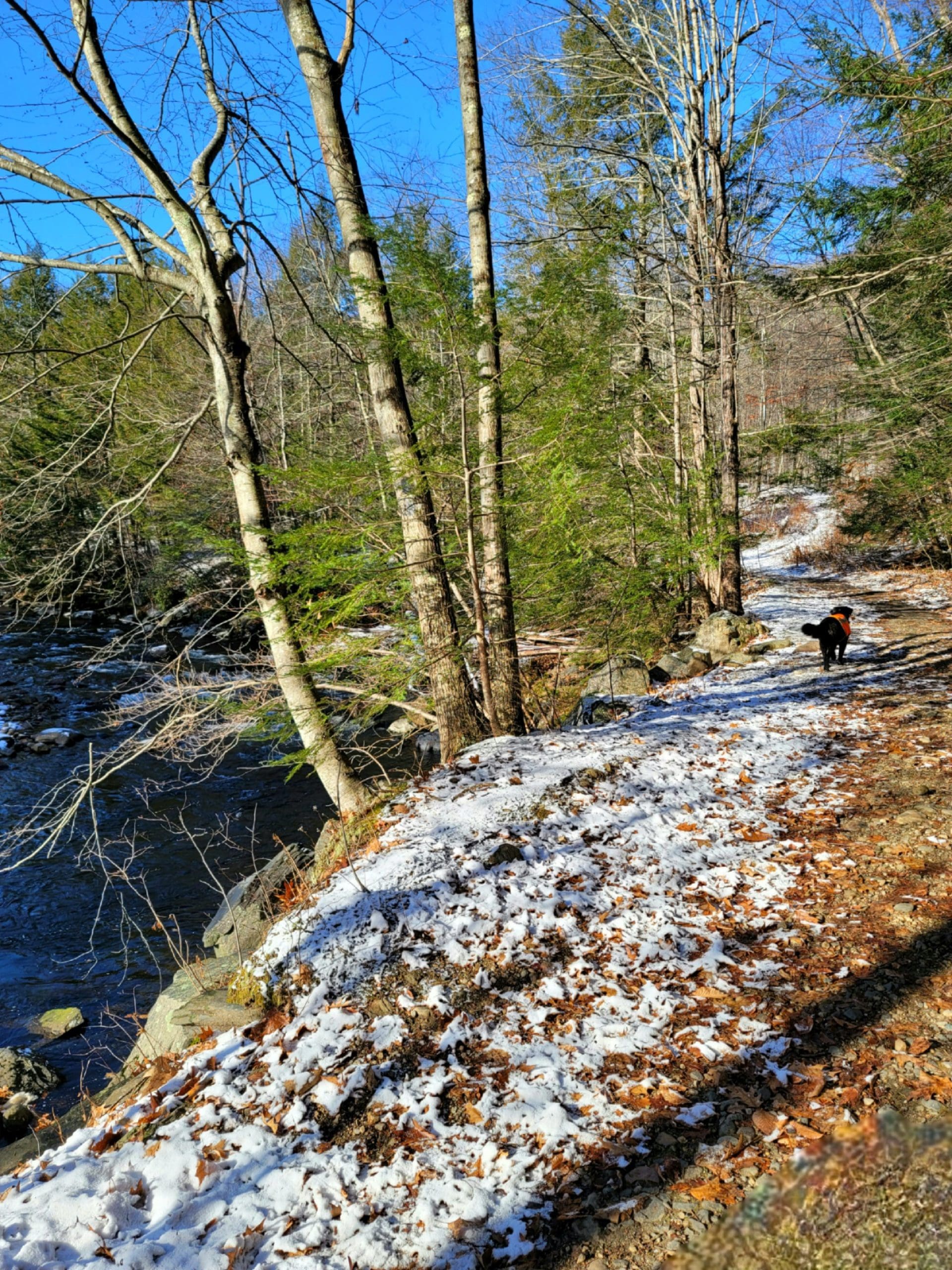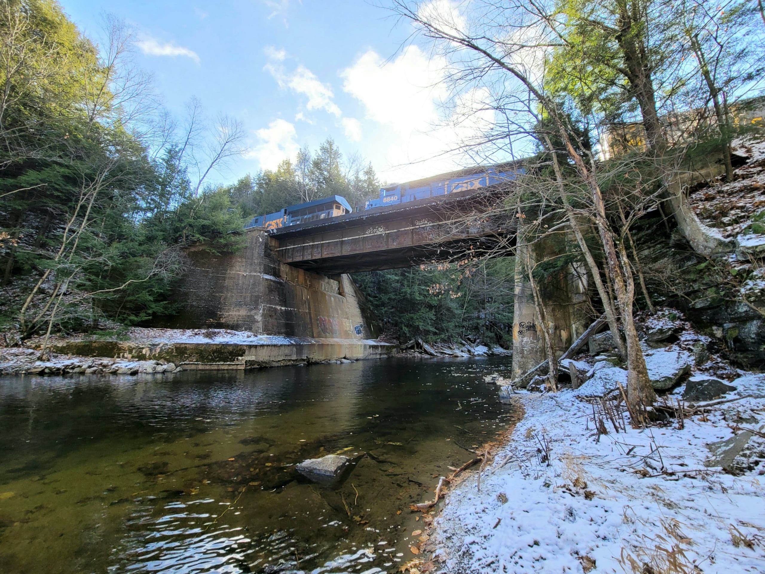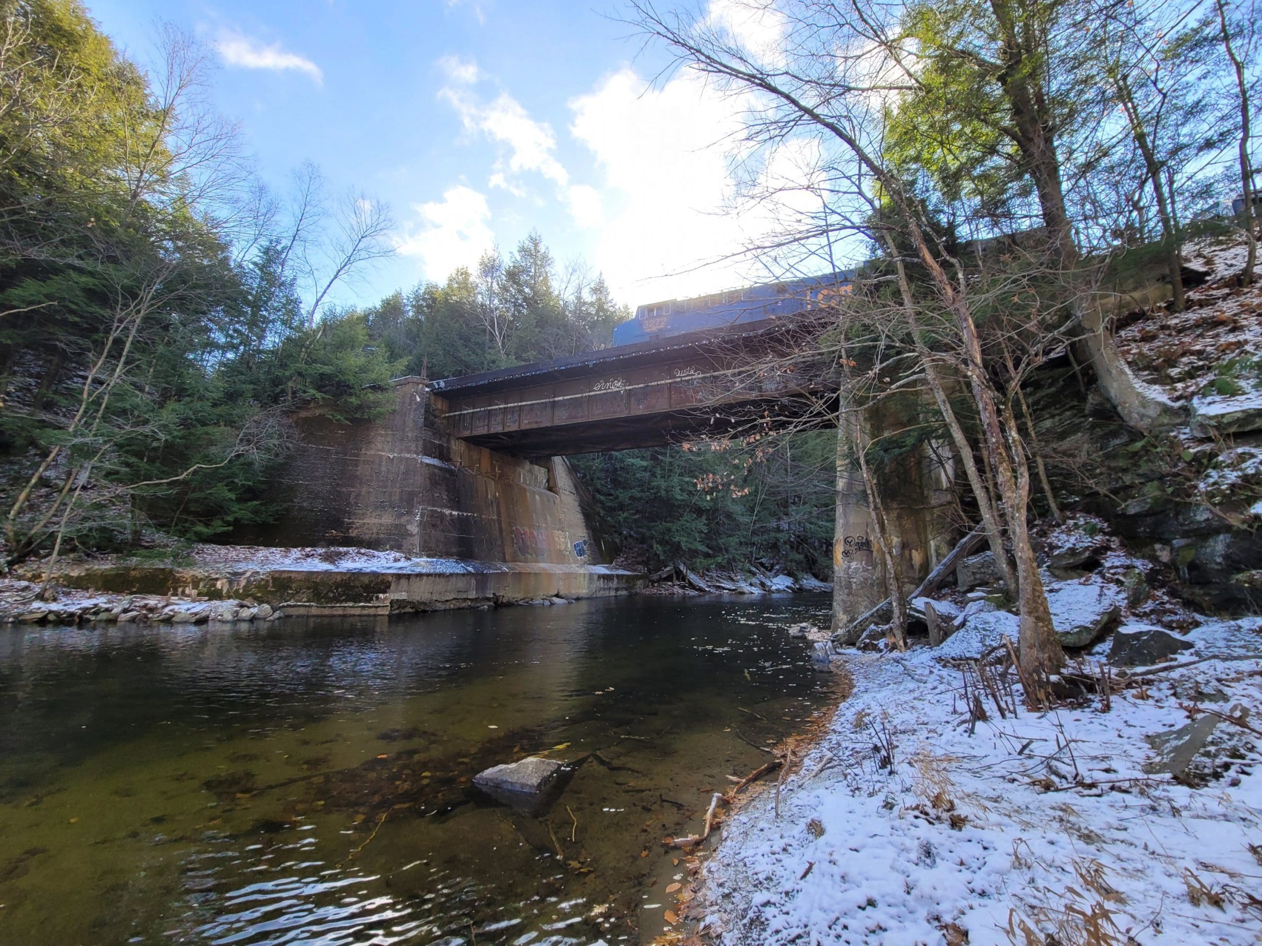 Weekend #flashhike at the Keystone Arch Bridges in Chester with fresh snow and high winds (which kept us from going far) so we followed the Pontoosuc Turnpike to bridge #2 aka Girder Deck Bridge, this originally was a Keystone Arch Bridge until the November 1927 flood. In 1928 it was rebuilt and CSX uses it today, you can see the original stone work, especially the right side. Of course we had to see the double arch as well!