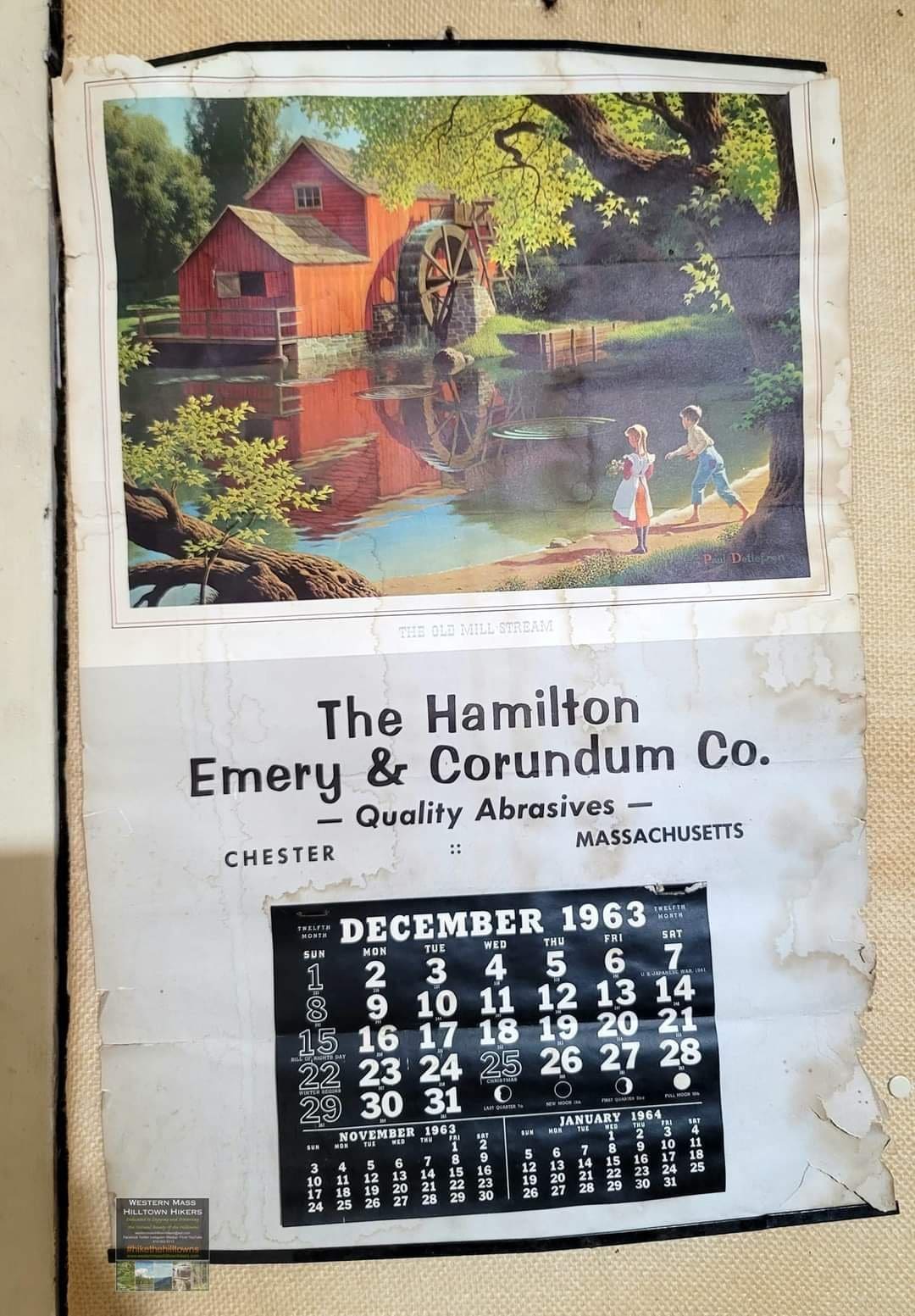 The Hampden Emery and Corundum Co. was a busy factory in Chester on the railroad. The raw stone was dropped here by rail and ground to make the grinding wheels. There were several buildings including the main factory which still stands today. Behind the old factory were more buildings and a road to the Chester Roundhouse and Coal Tower.