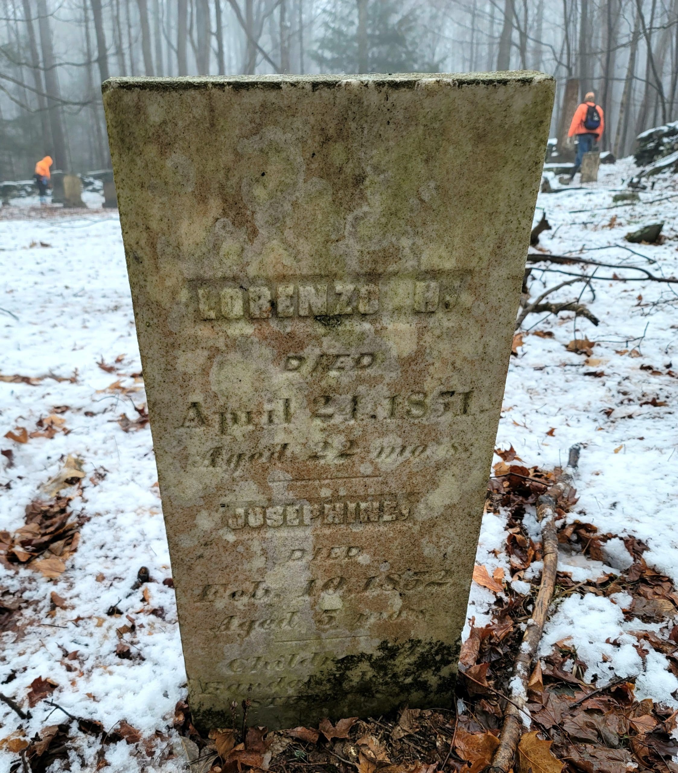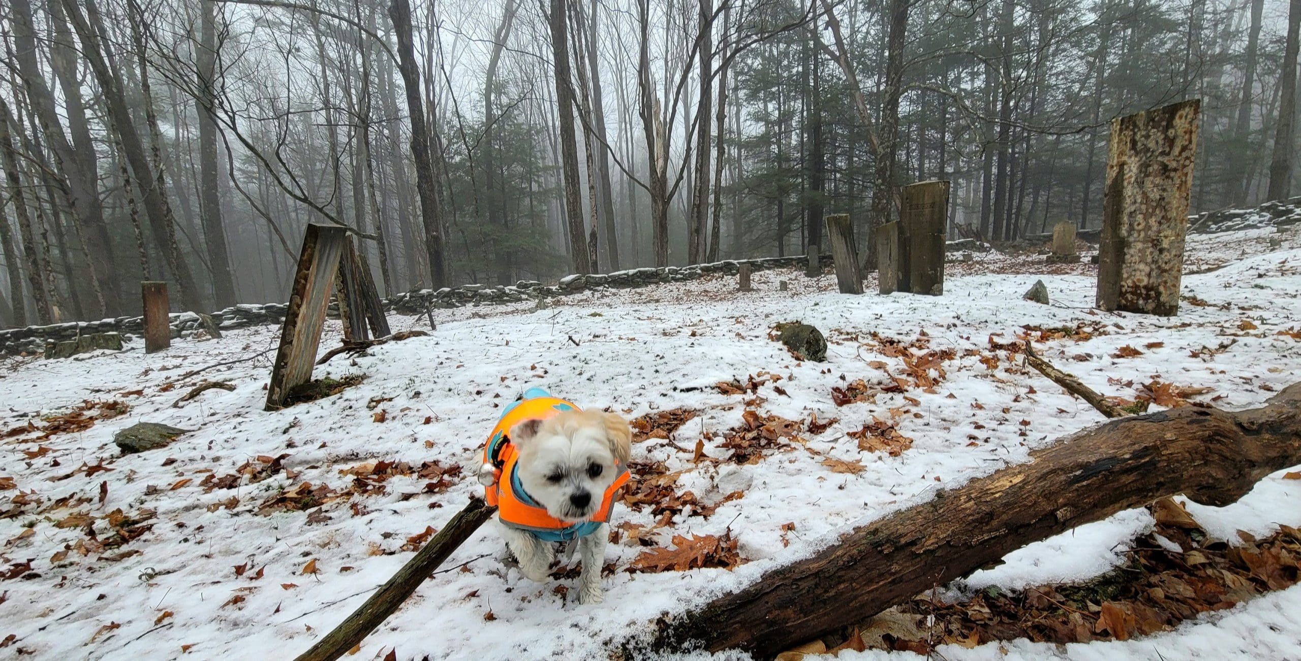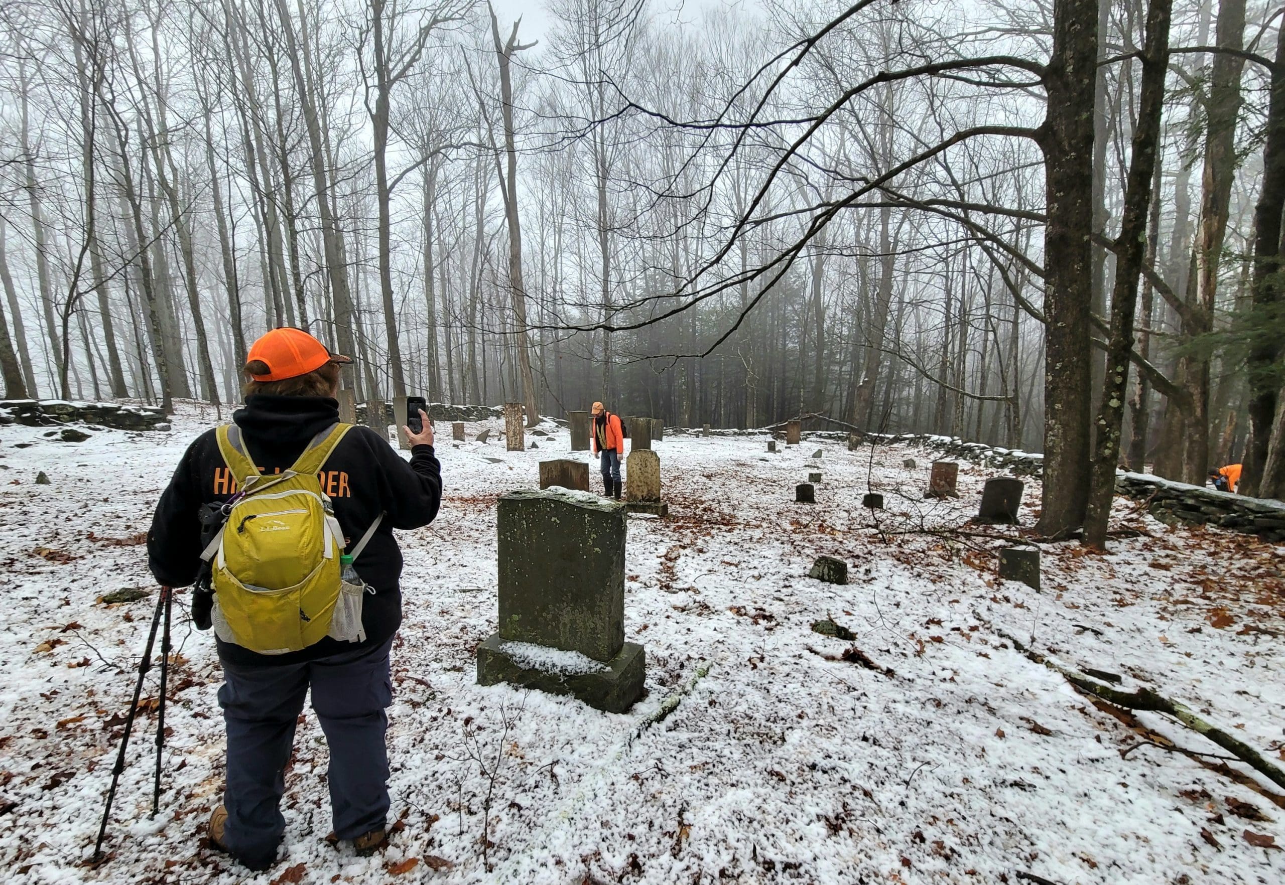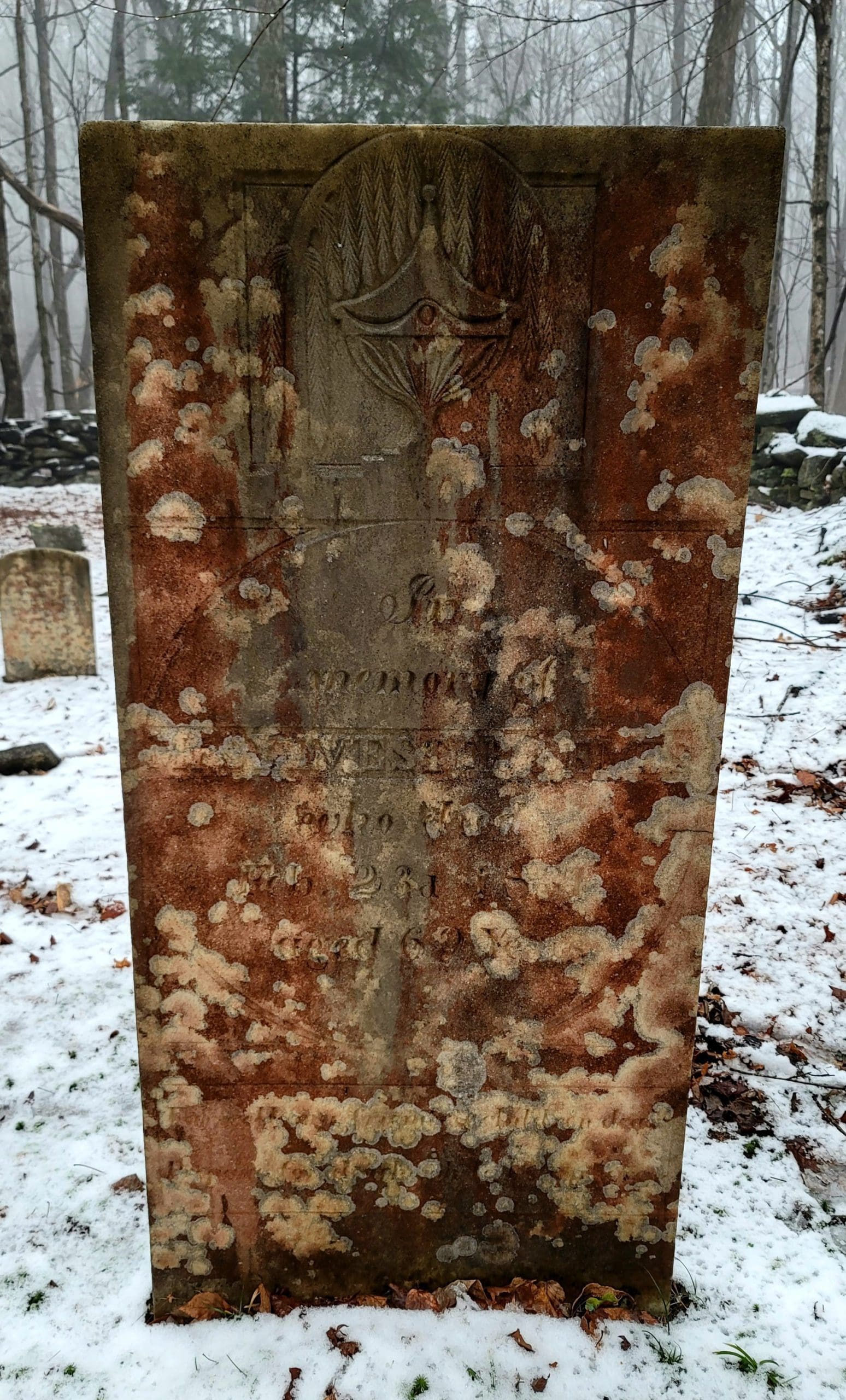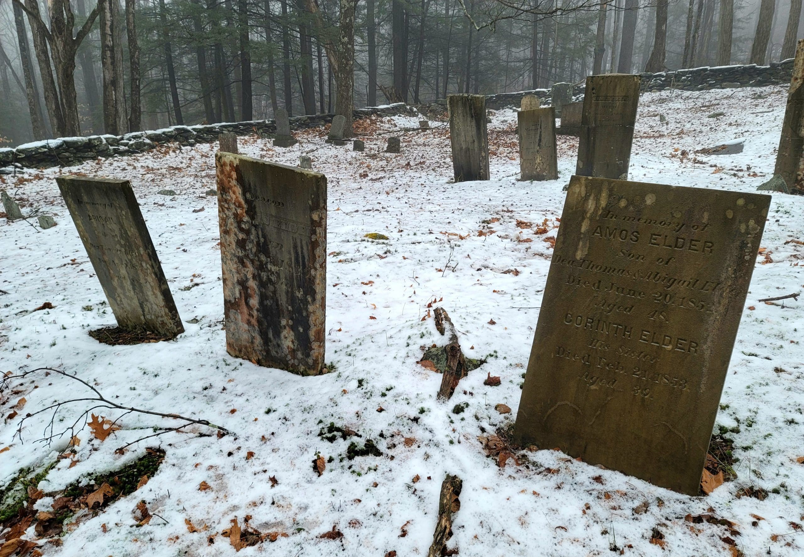 North Chester Cemetery found, located about a football field away from the intersection of Smith and Captain Bemis Road high up on Smith Hill. The earliest ancestors of Chester can be found here as North Chester Historic Distric was the earliest of settlements. Field stones are also present here, those graves are all upheaved from the ground forming raised mounds where they lay. Fog and rain for today’s hike was a perfect setting for this one. Old Smith Road makes for excellent walking as the road is closed, parking at the bottom is a must.