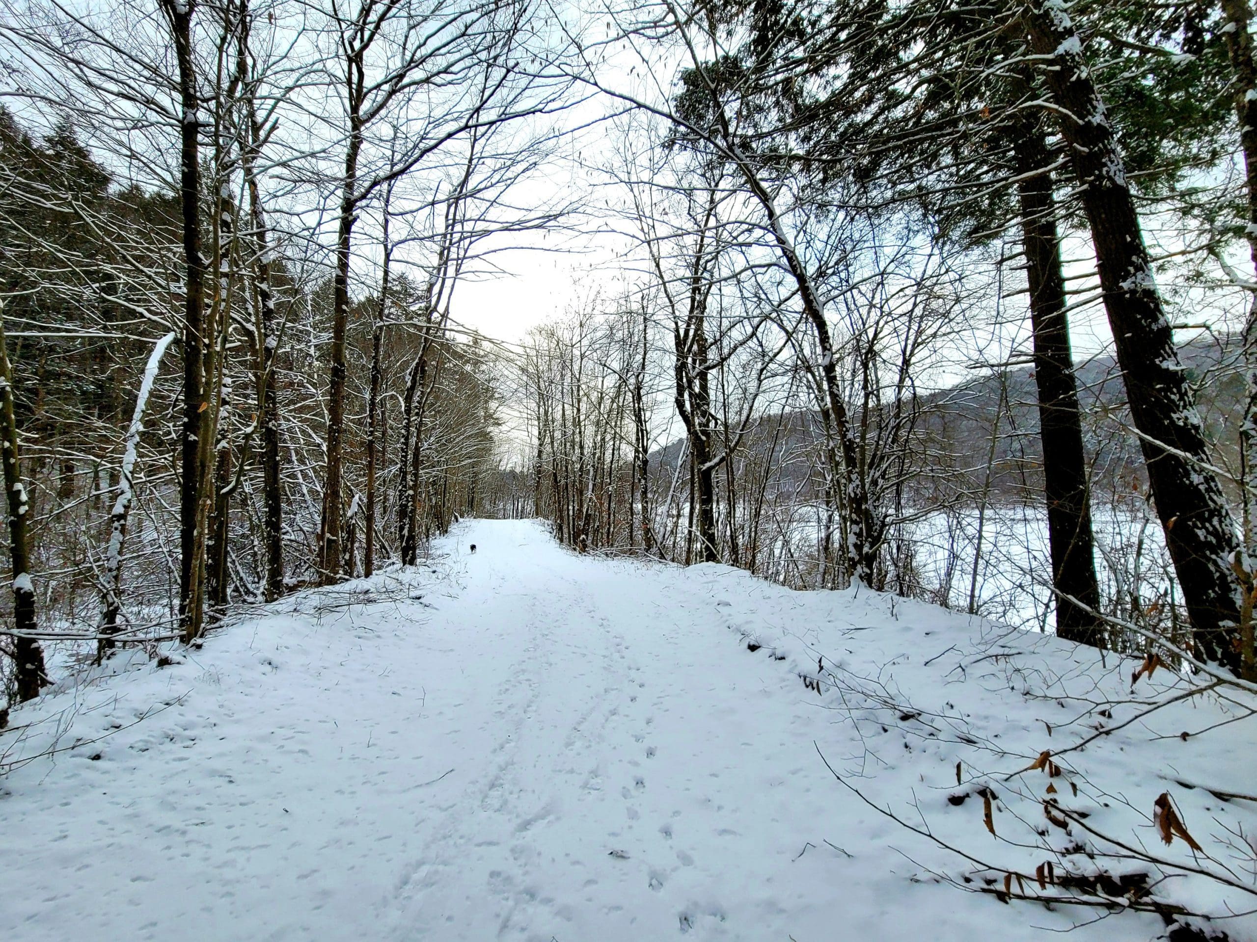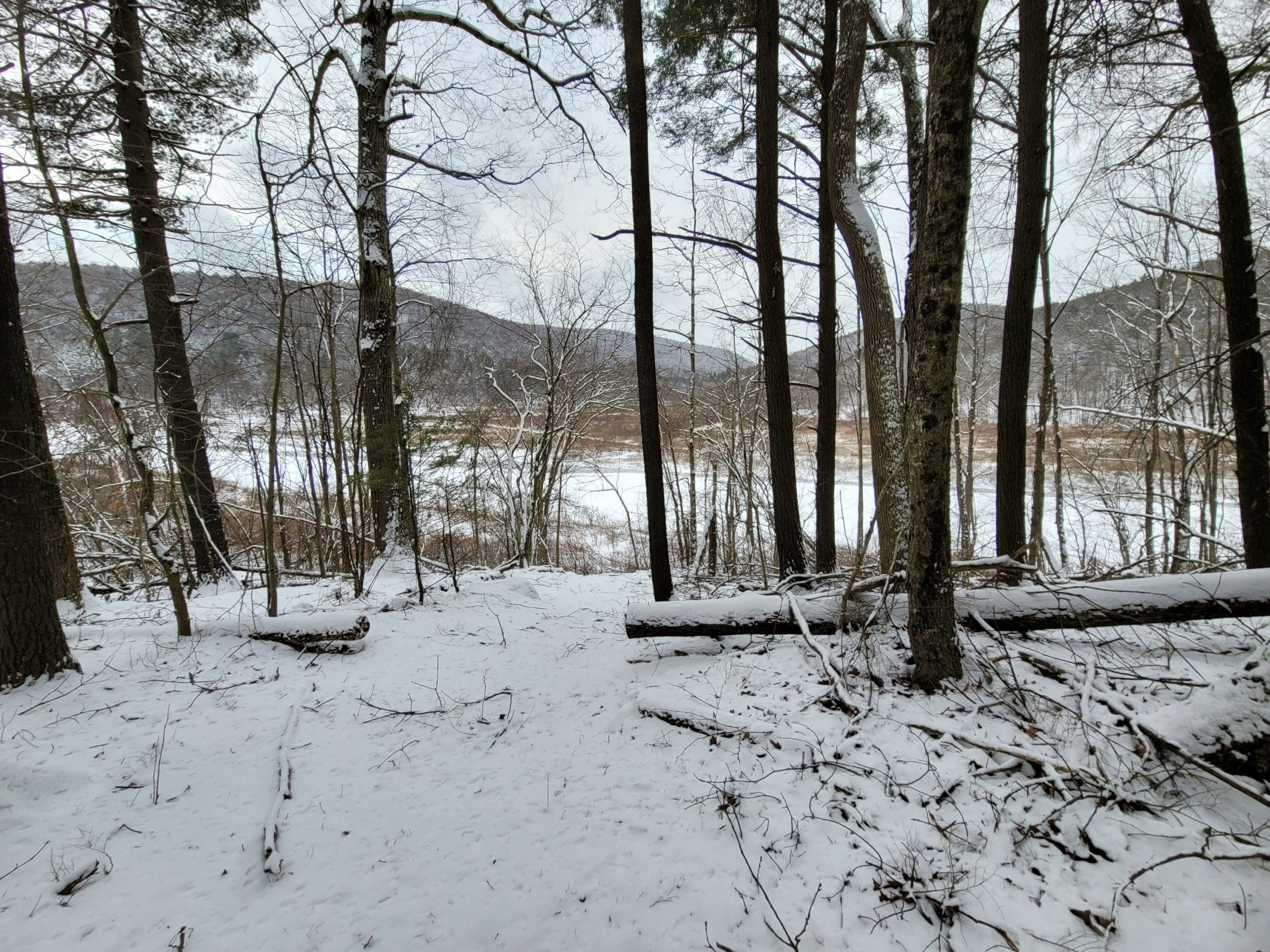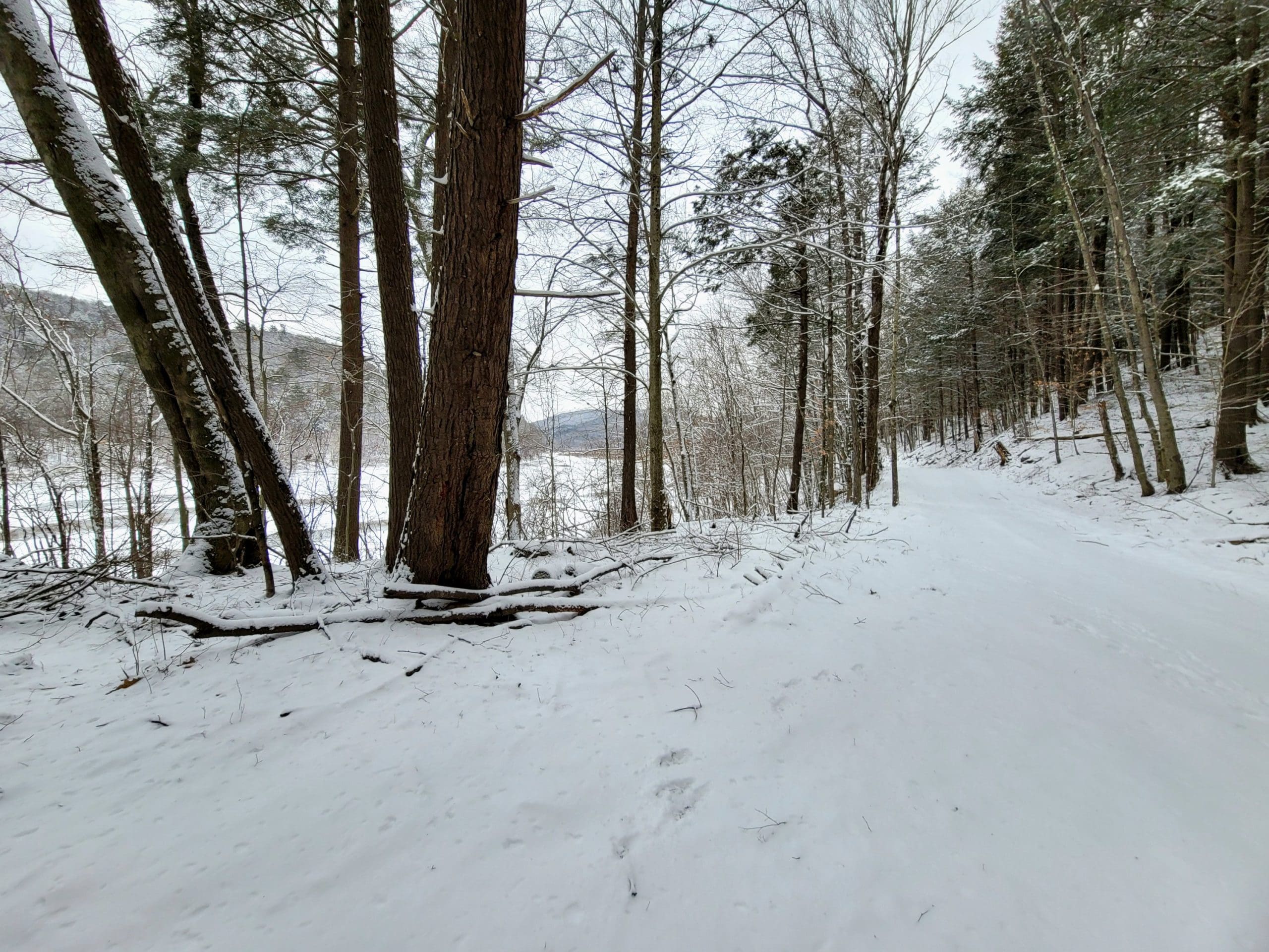 Flash hiking the Claude M. Hill Trail at Knightville in Huntington along the East Branch of the Westfield River. This trail starts behind the ranger station where you park. This is our winter “go to” since the trail is wide and relatively flat with rolling hills following the water. This trail continues about 7 miles to Indian Hollow in Chesterfield. Its great for skiis and snowshoes too. Flash hikes are short notice hikes for experienced hikers, most Fridays, Saturdays and Sundays. We use Facebook Messenger group texts for a platform, message or email us westernmasshilltownhikers@aol.com if you are interested.