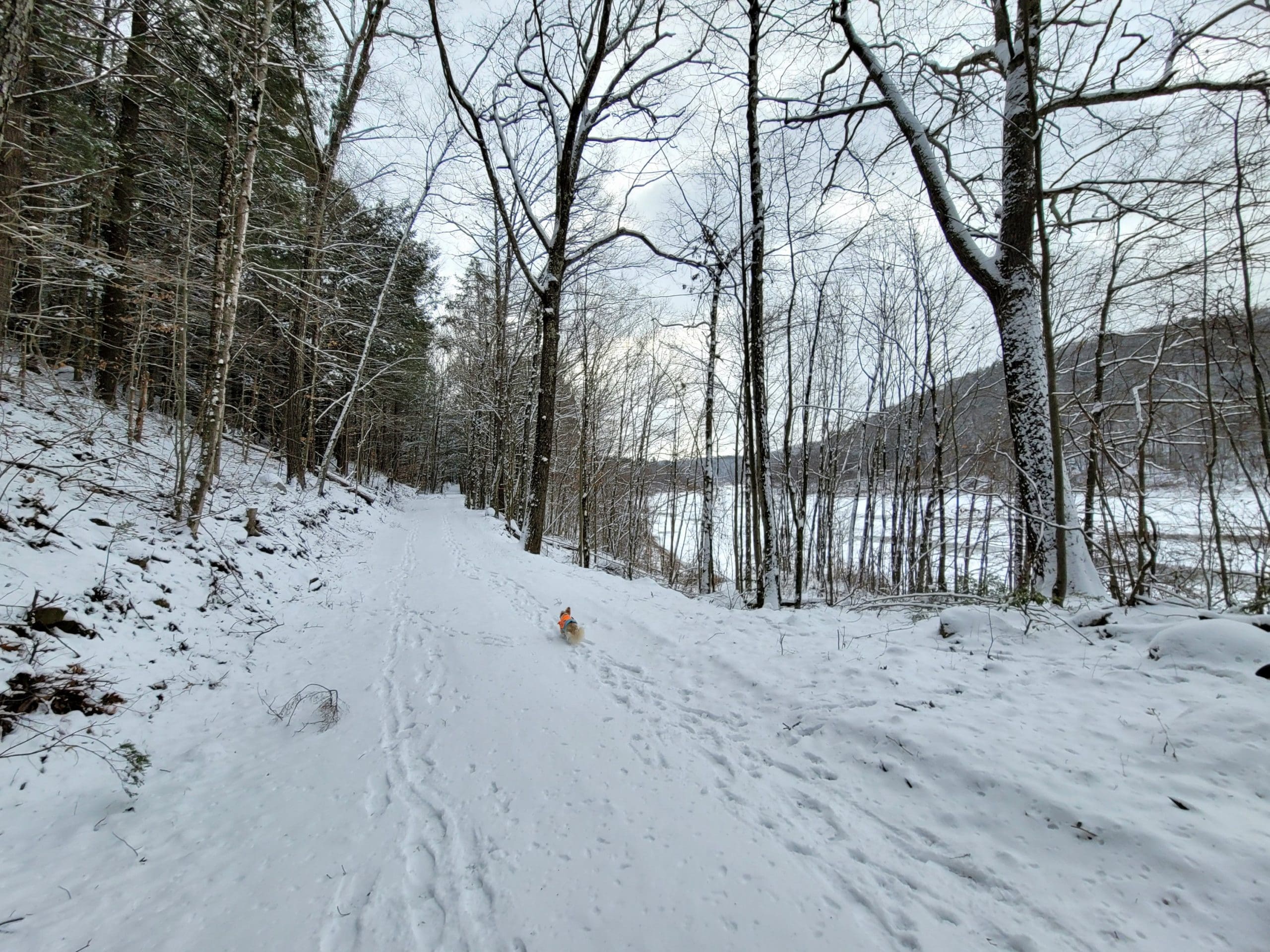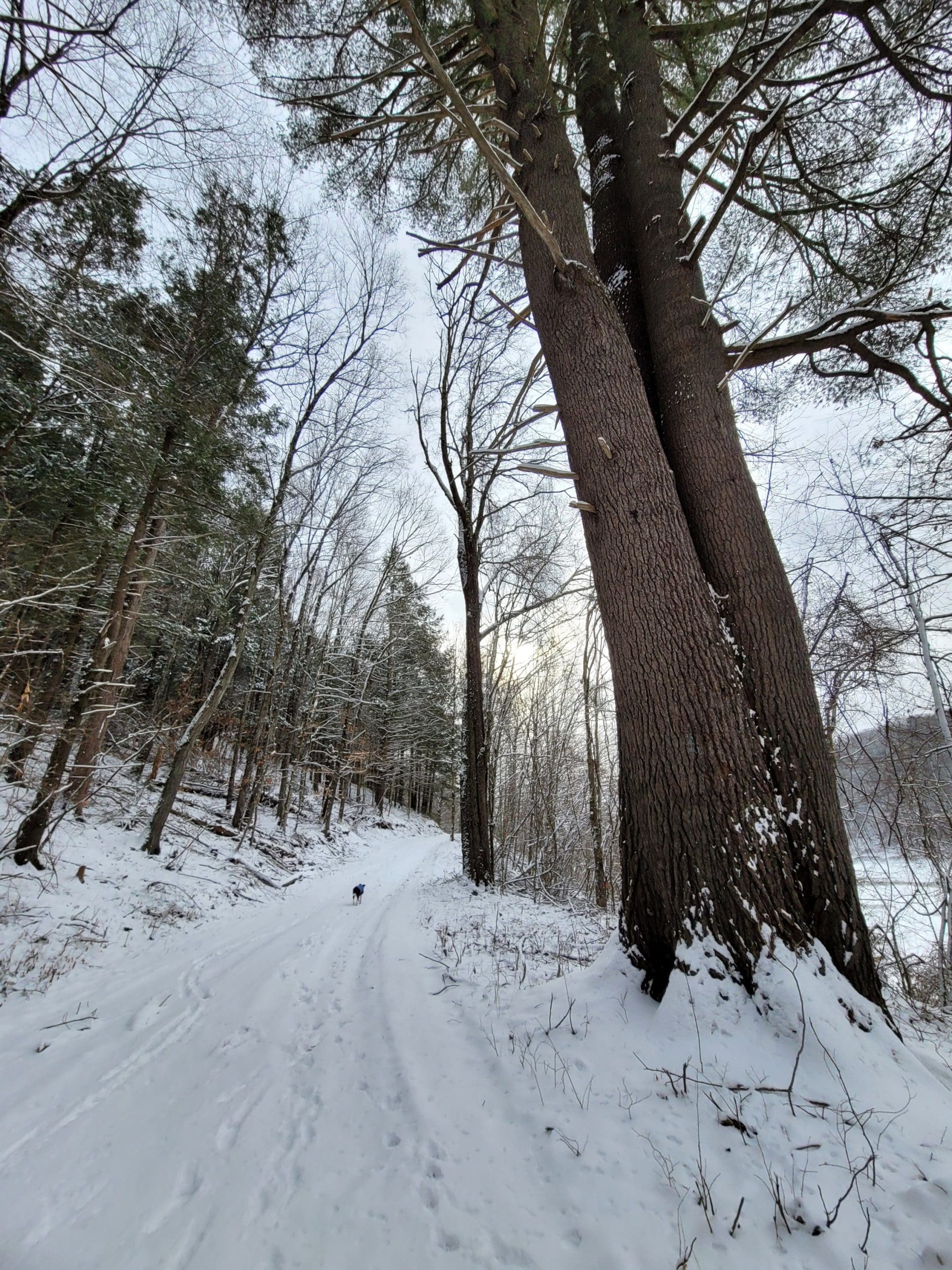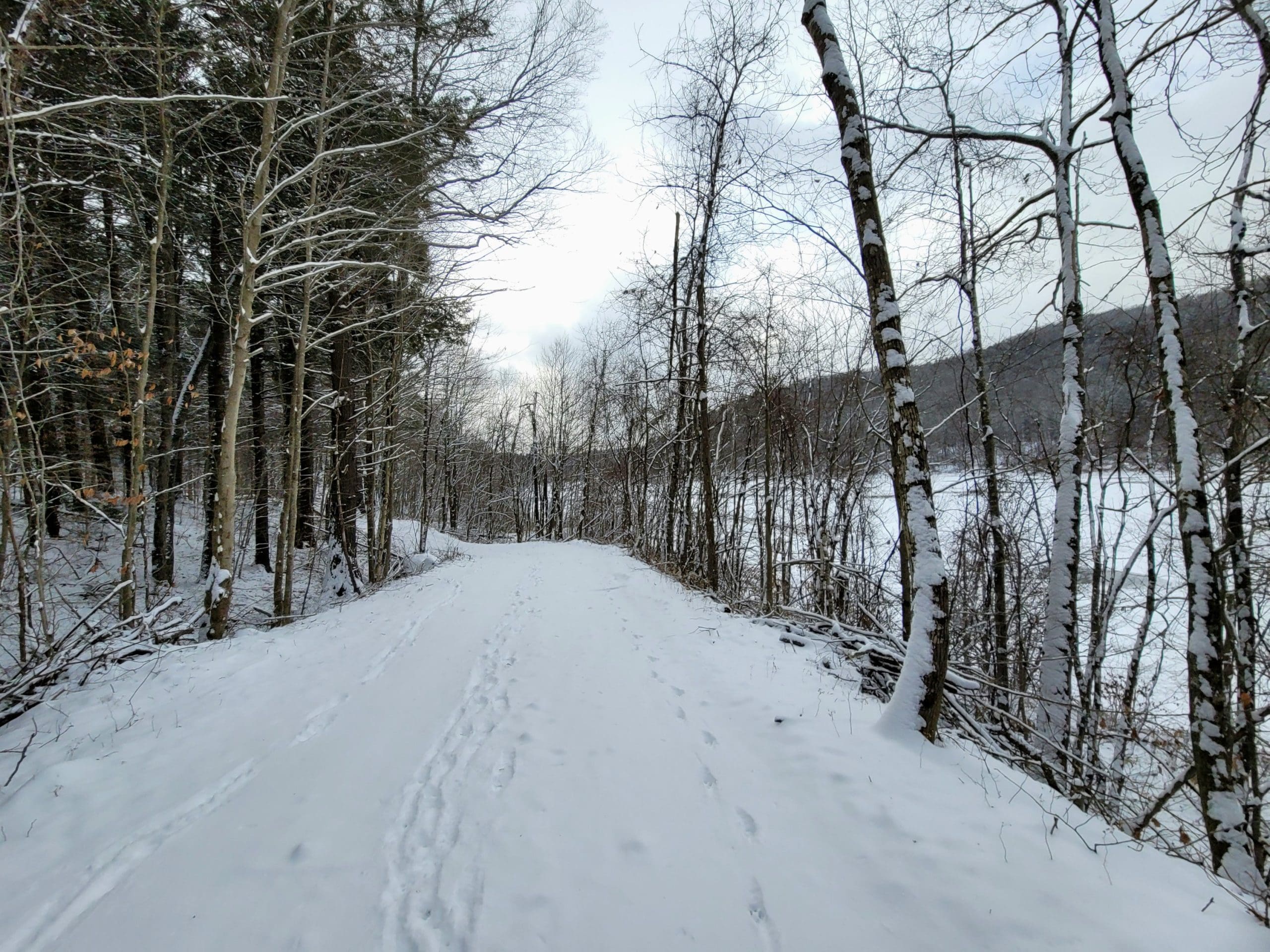 Flash hiking the Claude M. Hill Trail at Knightville in Huntington along the East Branch of the Westfield River. This trail starts behind the ranger station where you park. This is our winter “go to” since the trail is wide and relatively flat with rolling hills following the water. This trail continues about 7 miles to Indian Hollow in Chesterfield. Its great for skiis and snowshoes too. Flash hikes are short notice hikes for experienced hikers, most Fridays, Saturdays and Sundays. We use Facebook Messenger group texts for a platform, message or email us westernmasshilltownhikers@aol.com if you are interested.
