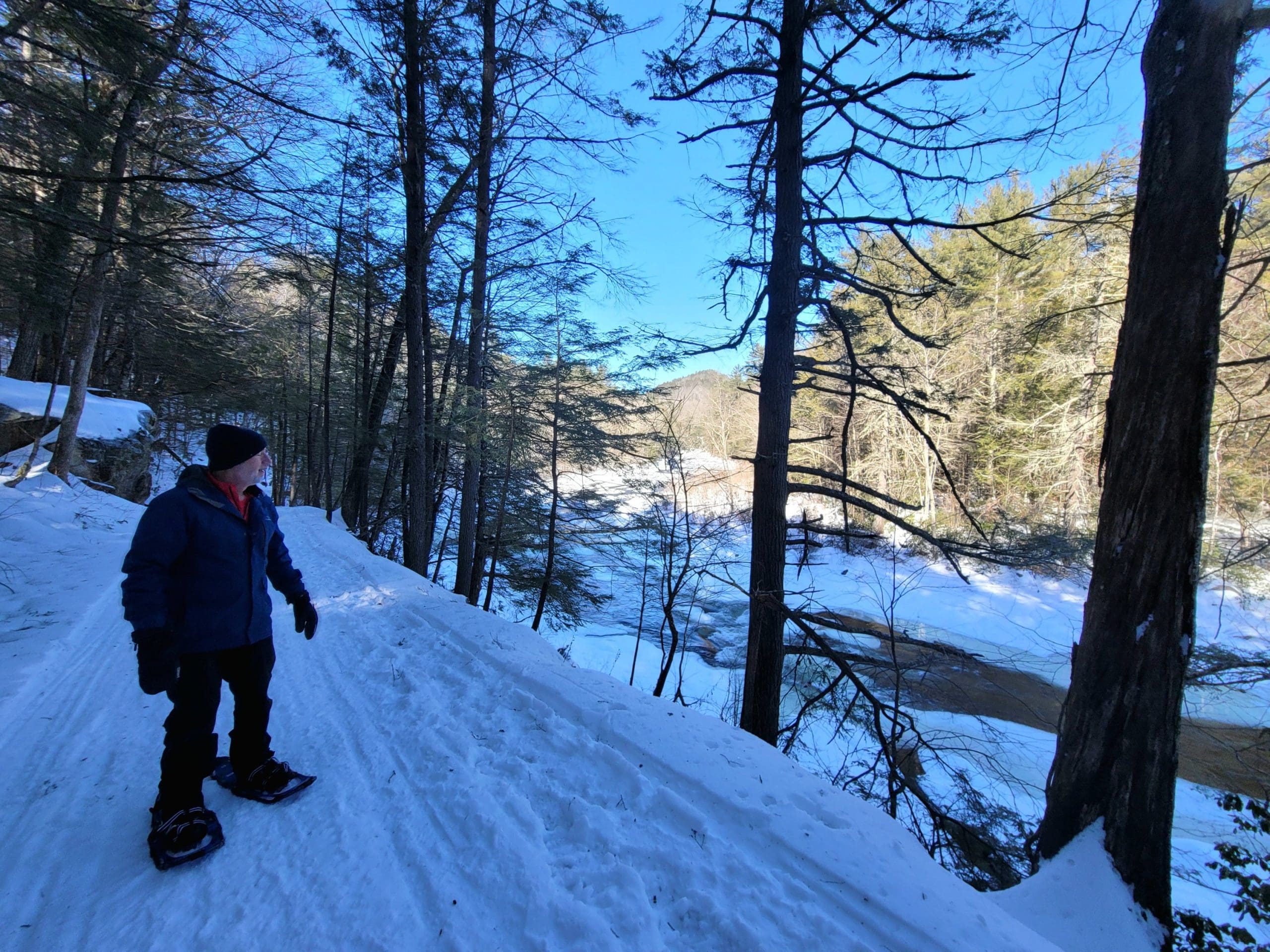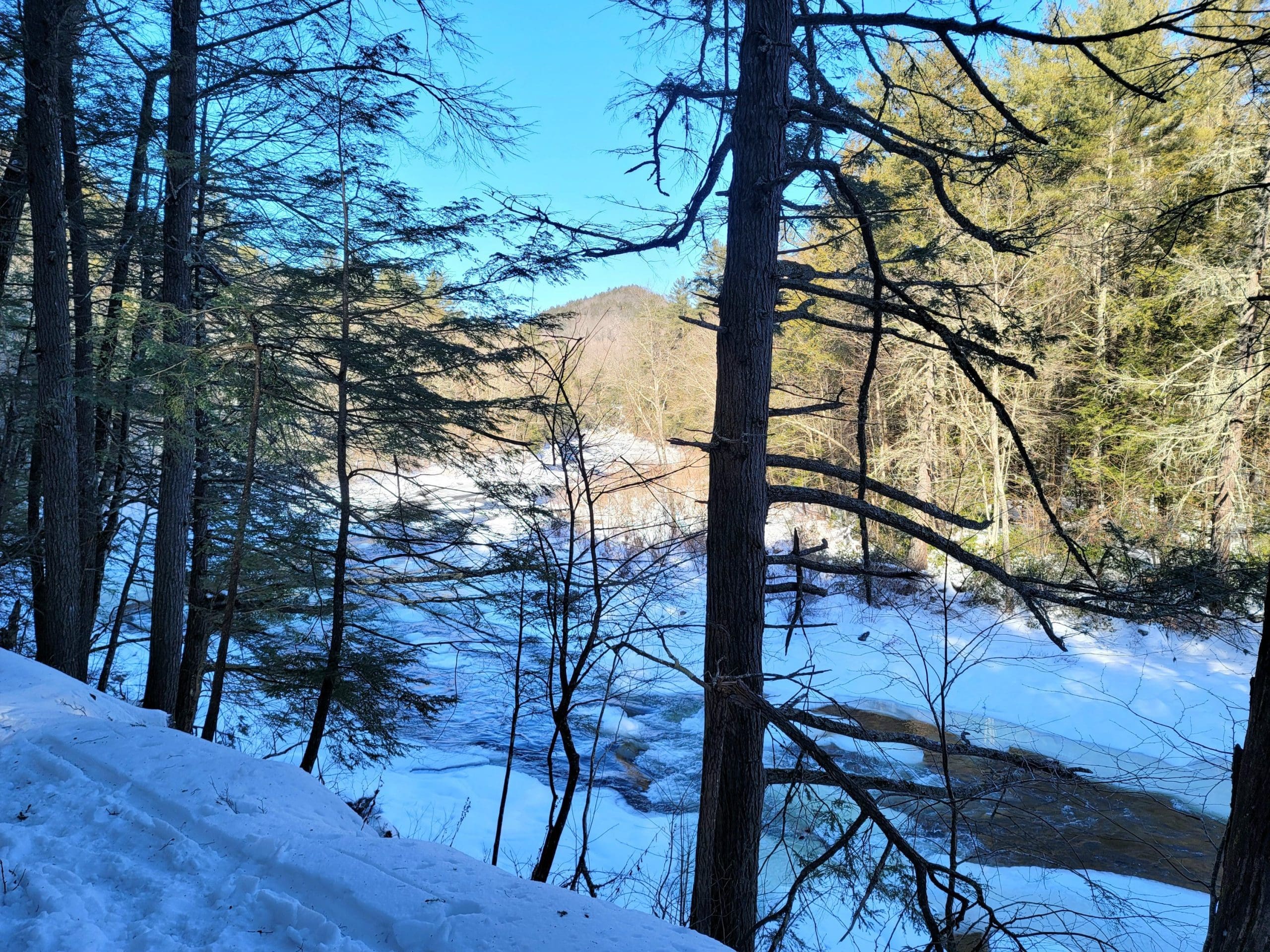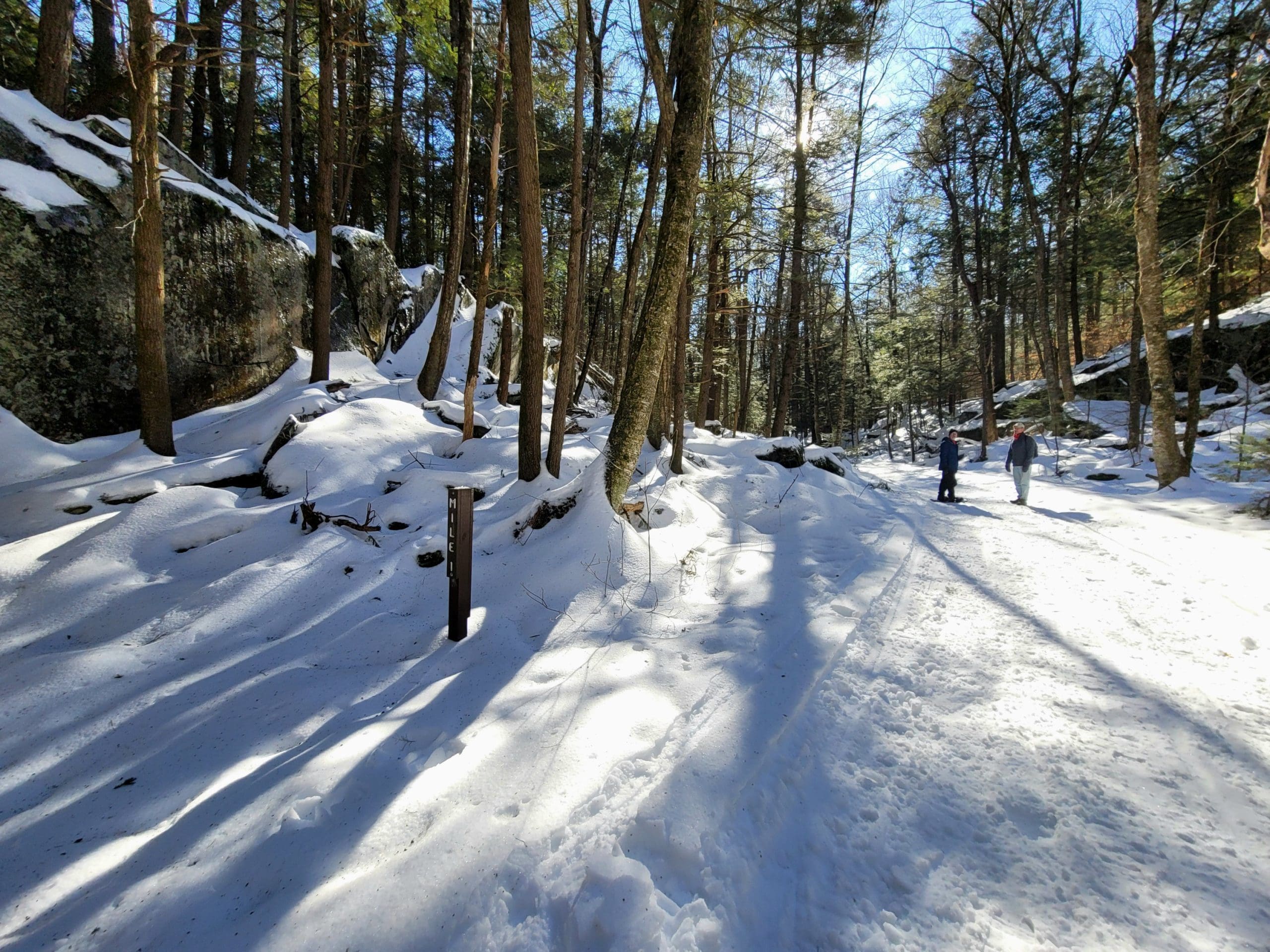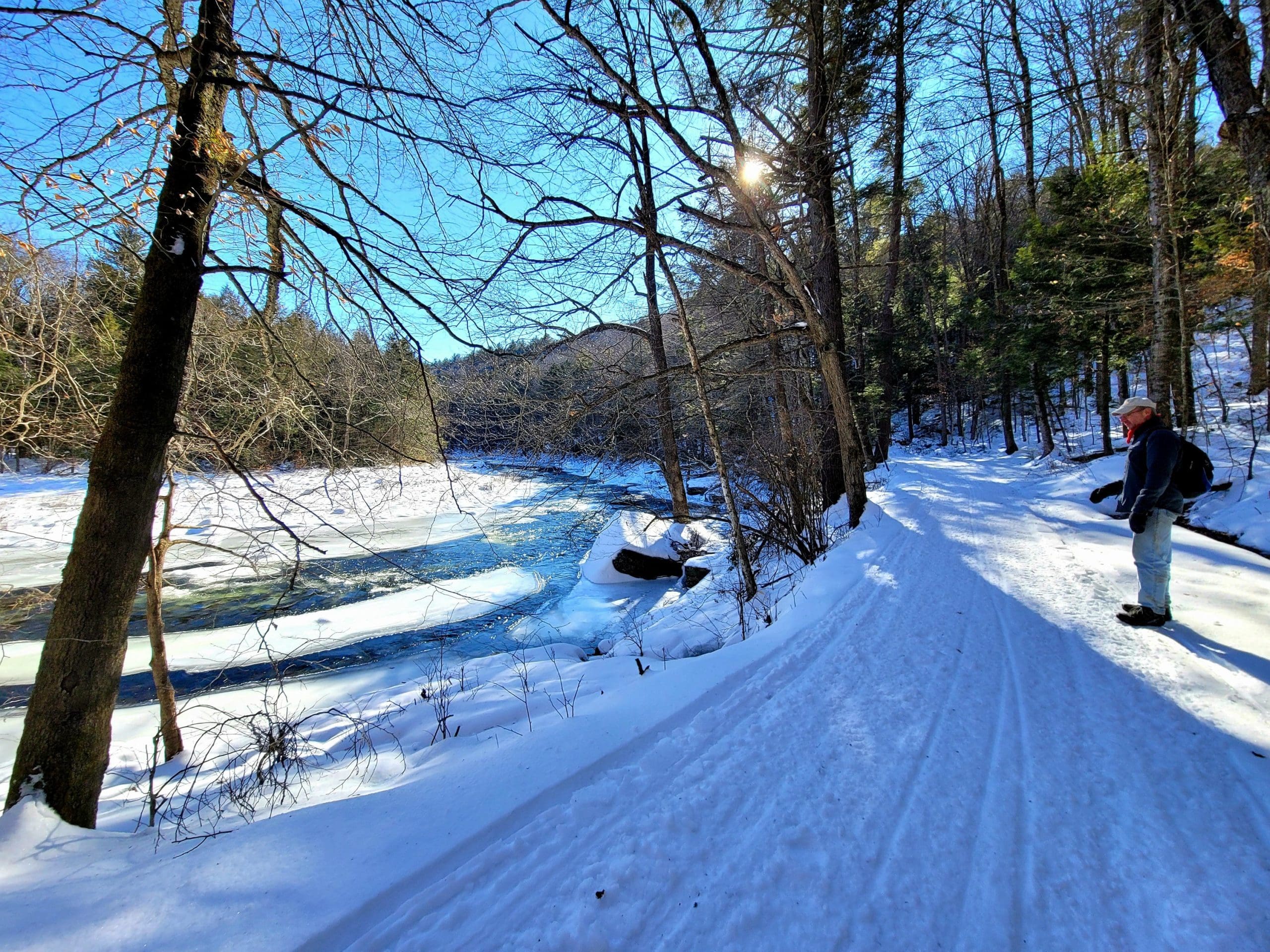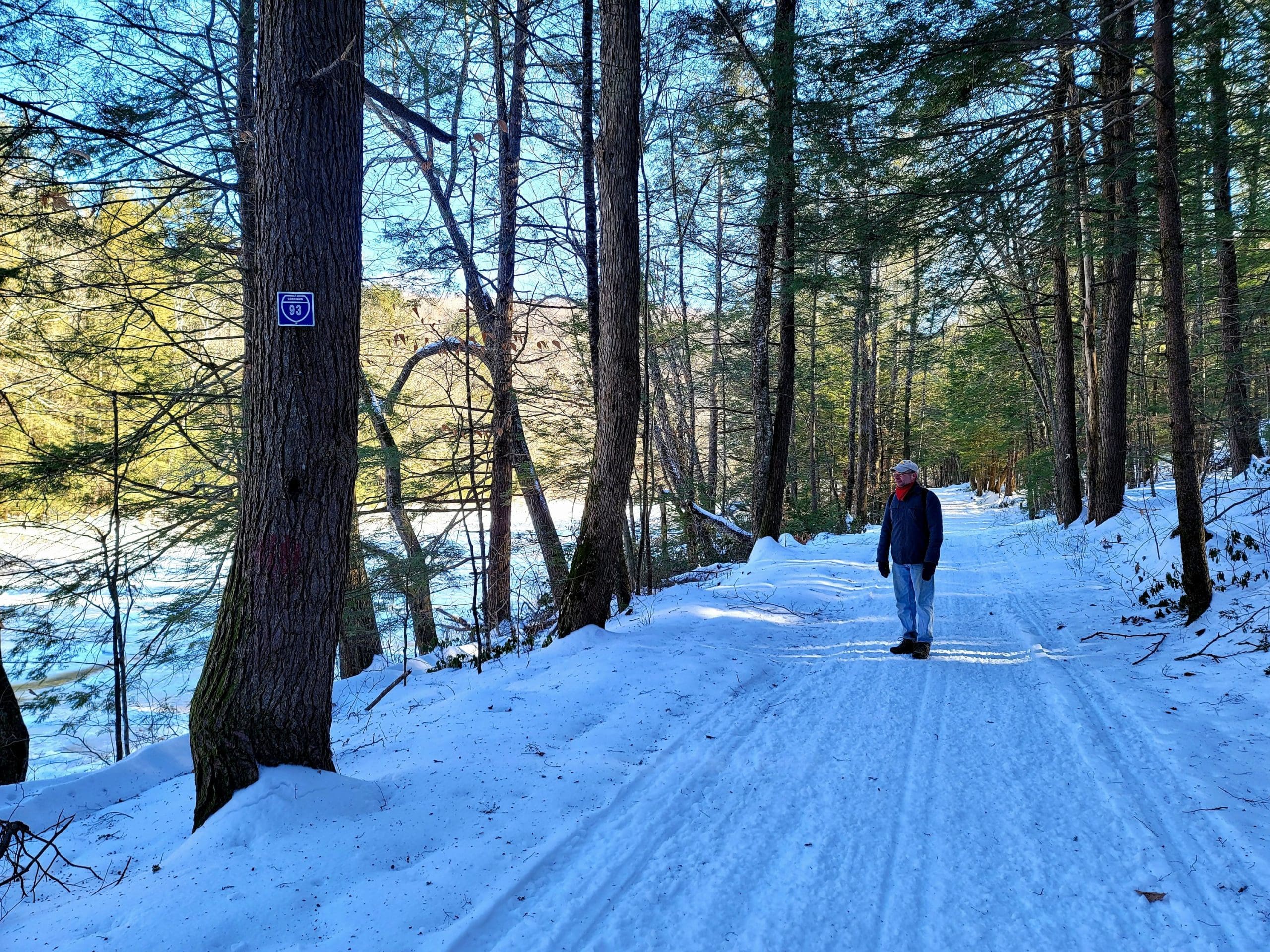 The East Branch Trail runs 6.6 miles from the Chesterfield Gorge trailhead (The Trustees) to the Knightville Dam in Huntington, traveling thru the Gilbert A Bliss State Forest (DCR) along the East Branch of the Westfield River. Wide and relatively flat, the trail winds thru the most scenic and wild scenery including the old quarry site for the old bridge, and further along at the 3 mile marker the Baker Dam Mill Site and 5 miles in the Taylor Bridge and Indian Trading Village.