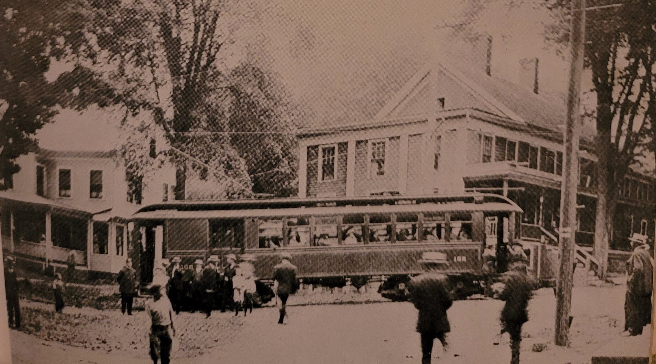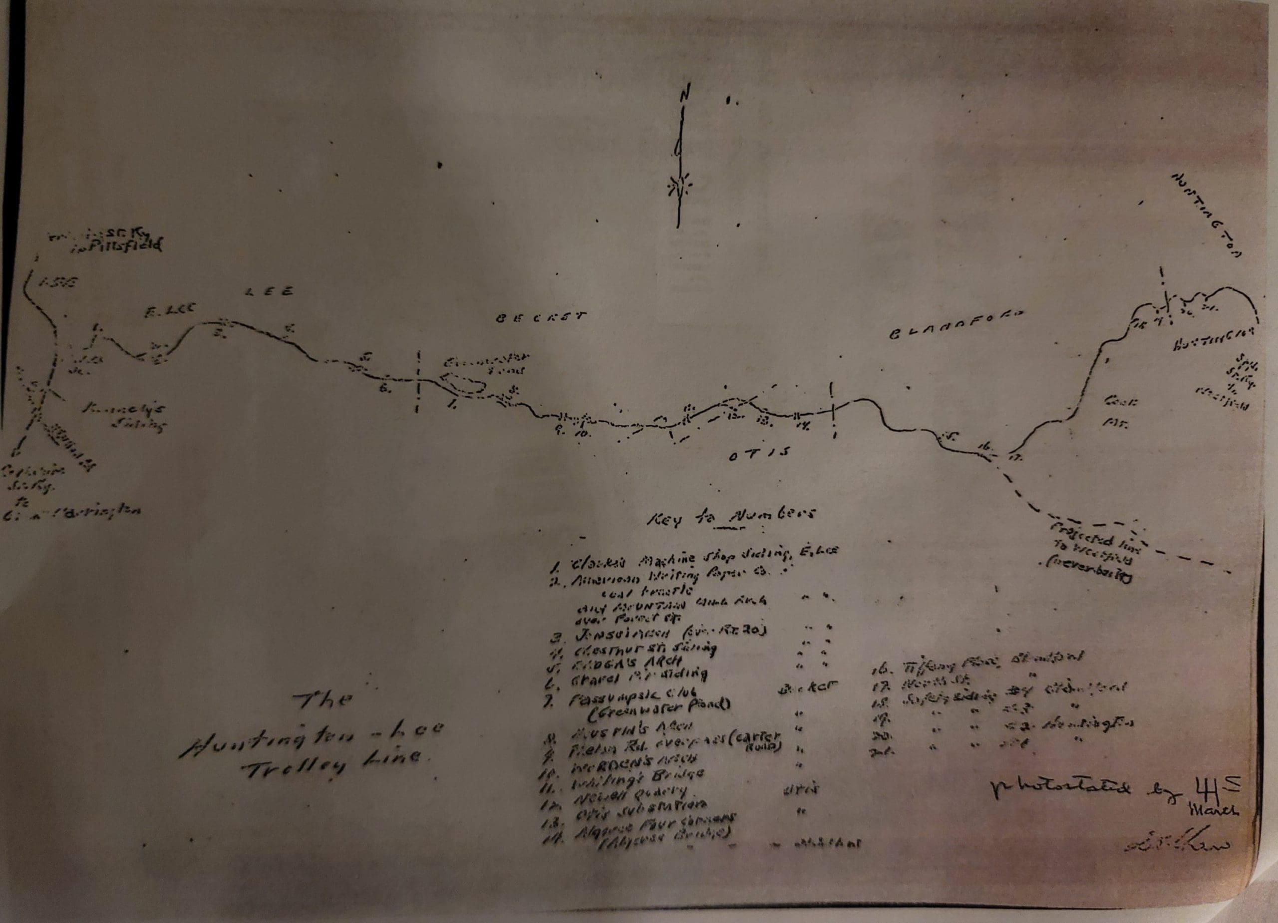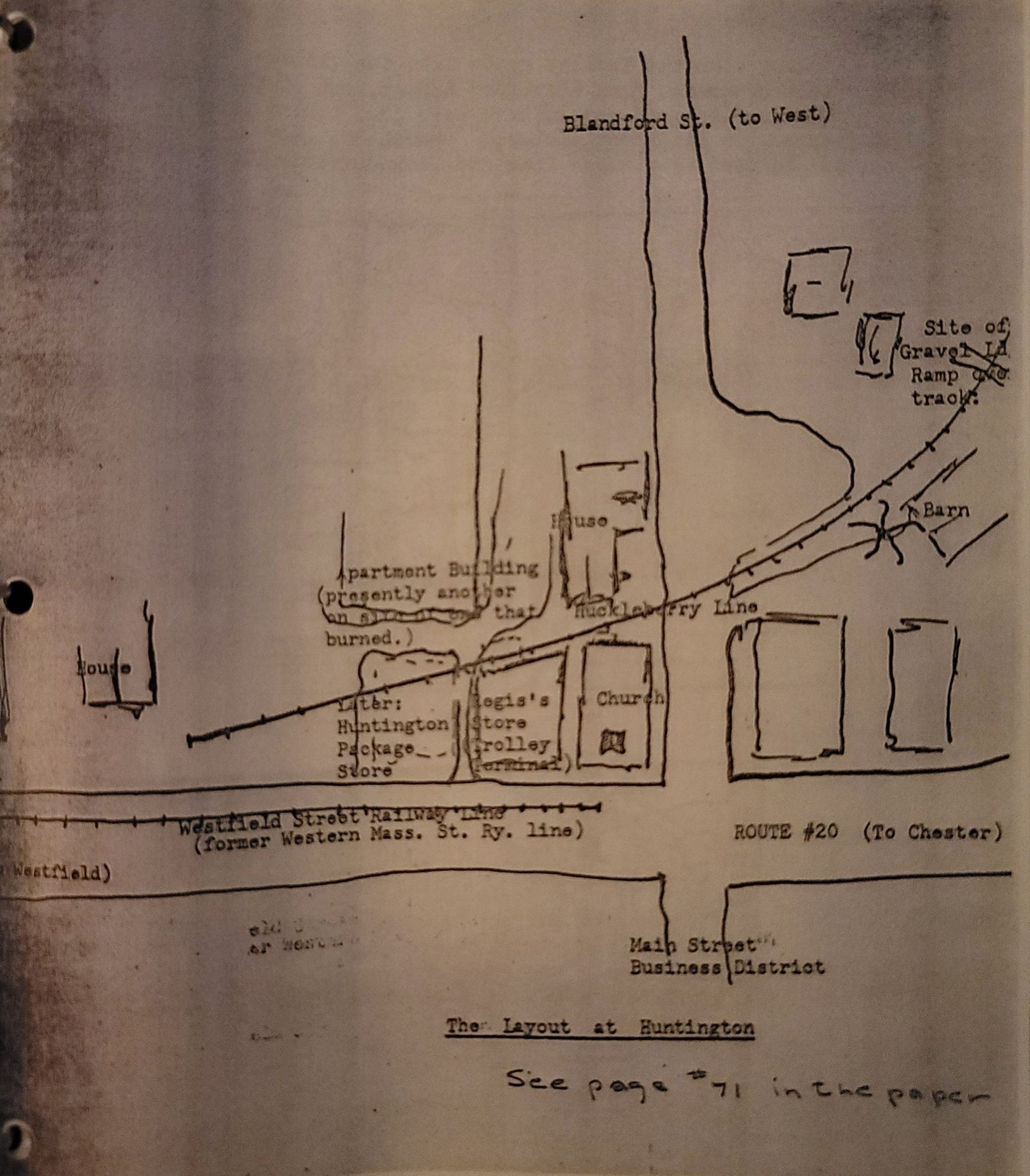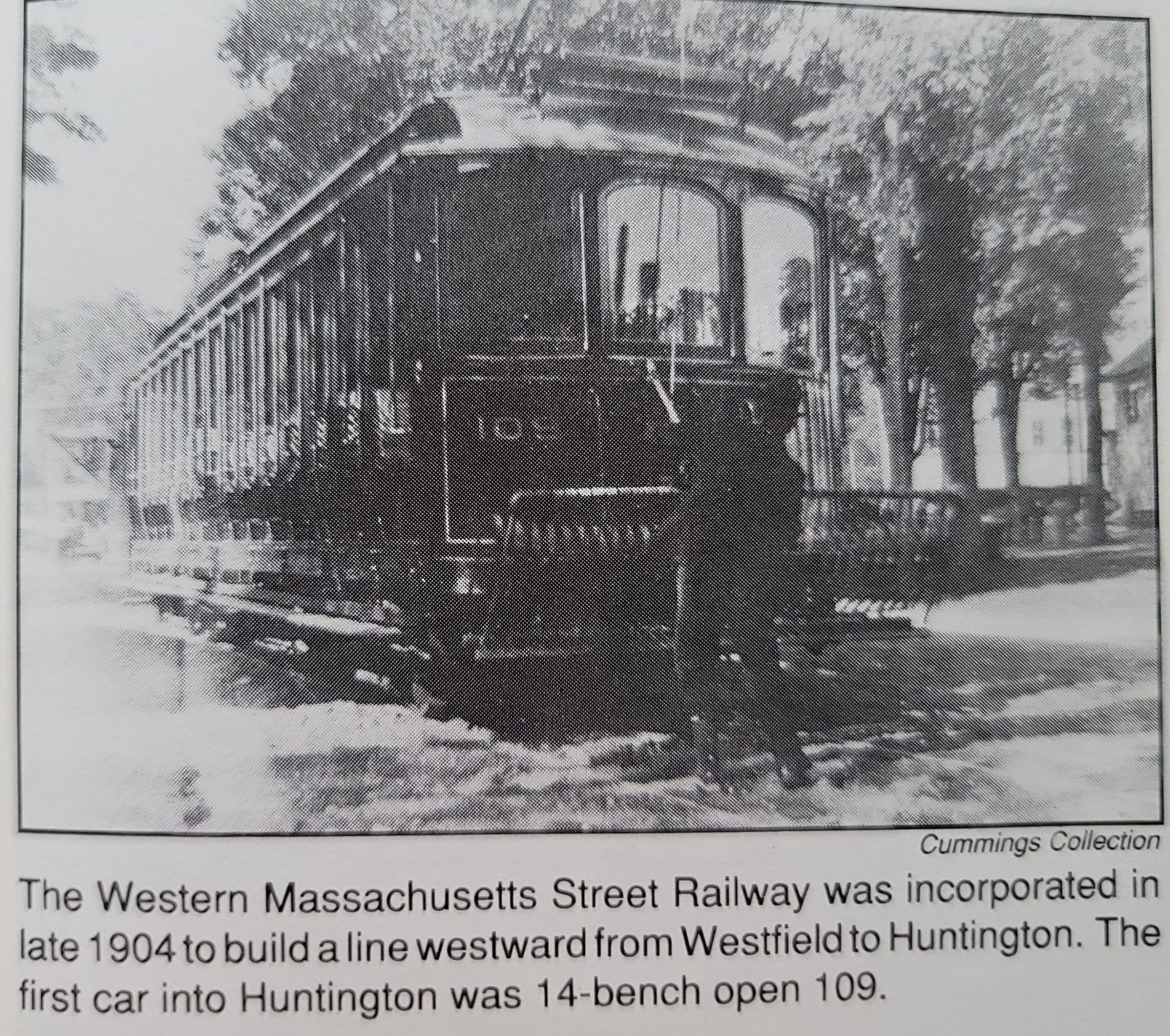 The grade up out of Huntington onto Cook Mountain was steep. Francis Knightly of Huntington, who had worked as water-boy on the crew building the trolley line from Westfield up to Huntington, admitted he had never ridden the Huckleberry; he had been “scared to death” to ride. A little less than three miles up the mountain was “Camp 10” so-called, the top of the grade. All was level beyond.