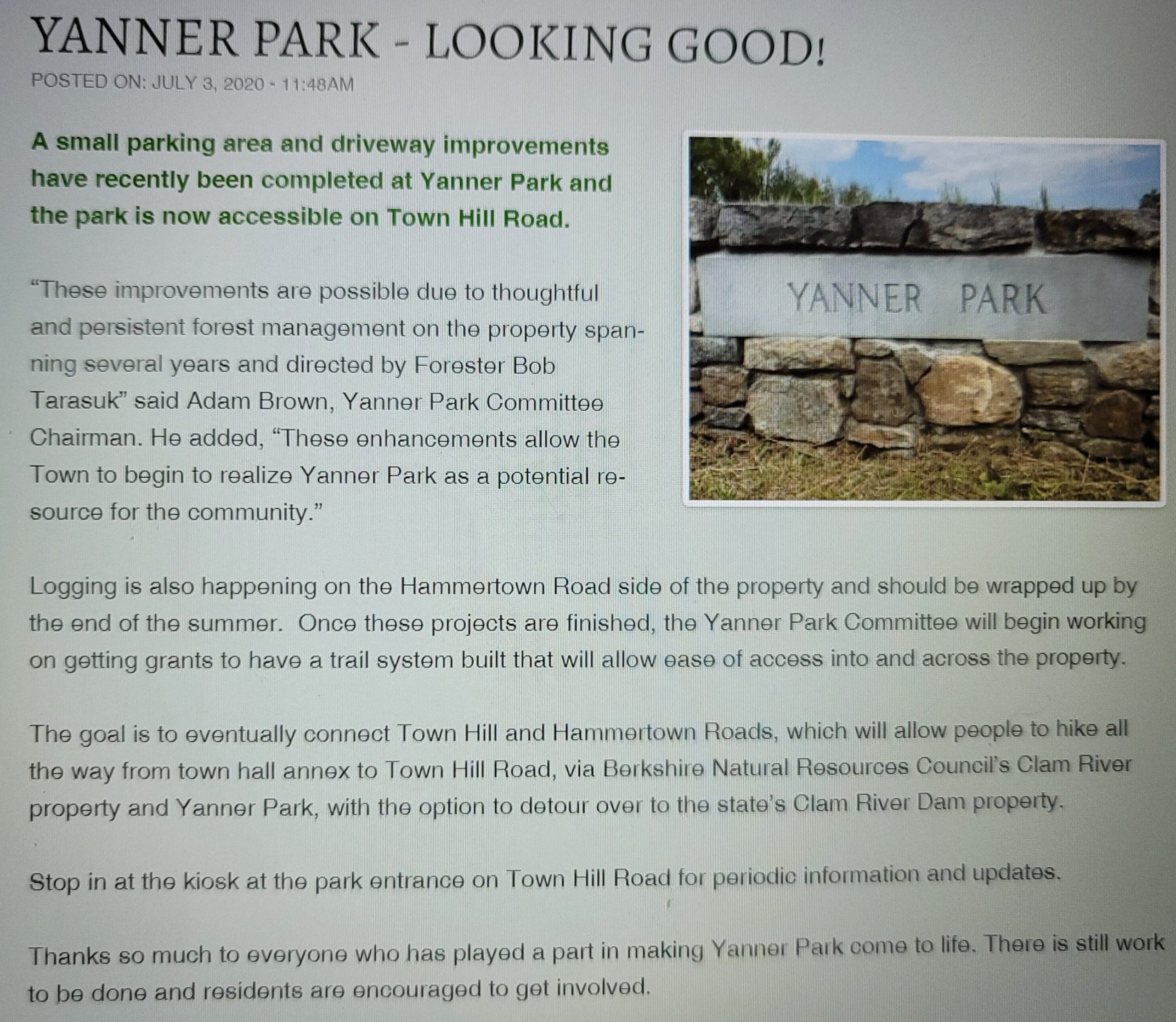 Trail update on Yanner Park in Sandisfield. We reached out to Adam Brown of the Yanner Park Committee and are super excited to report the latest update here.