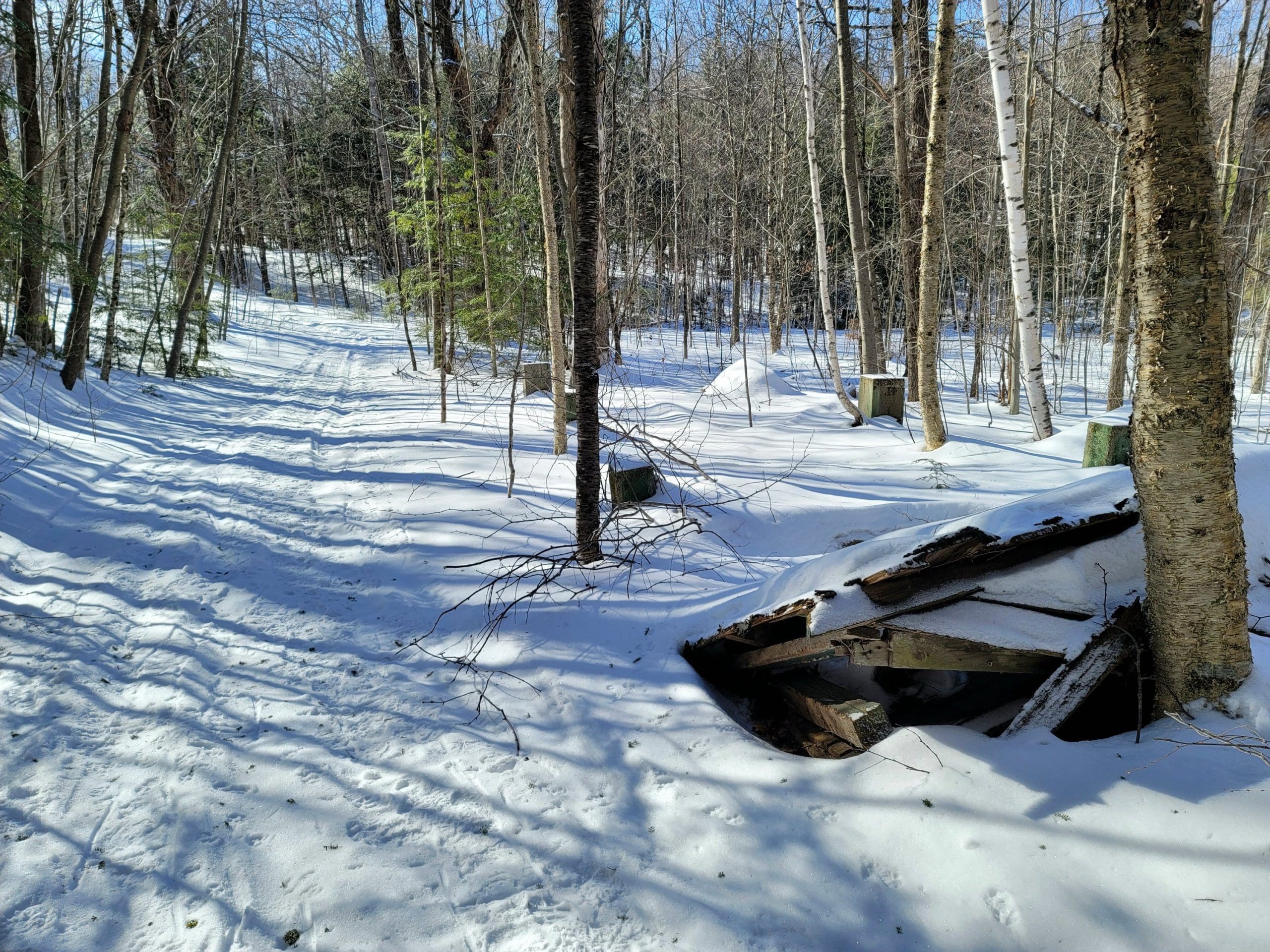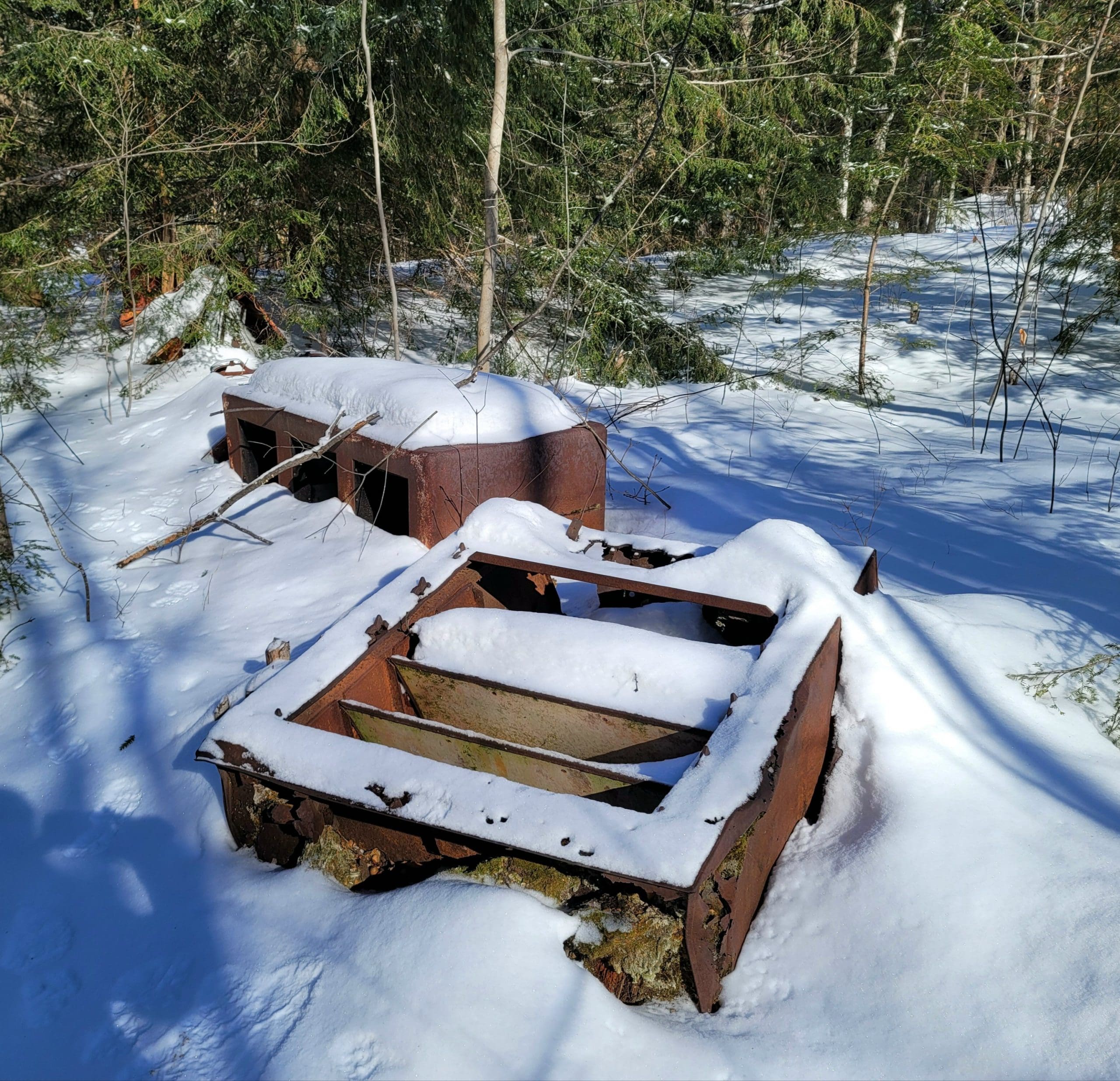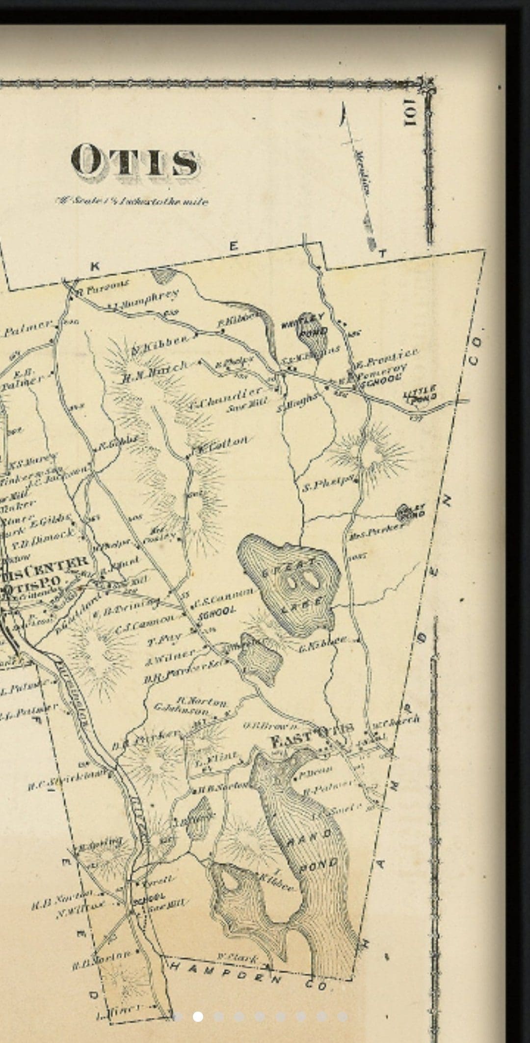 If we had not read everything we could get our hands on, we would of never found this one. On an old short path close to the Otis Substation on the Huckleberry Trolley Line we found the trolley workers camp. There were several along the line, which housed the Polish and Italian workers who dug the grades, laid the tracks. 1800’s map overlays show there were at least 20 small structures here. No doubt it was set up here because within a half mile radius was the power substation and a passenger trolley stop (former Kibbee cellar hole on Lee Westfield Rd)