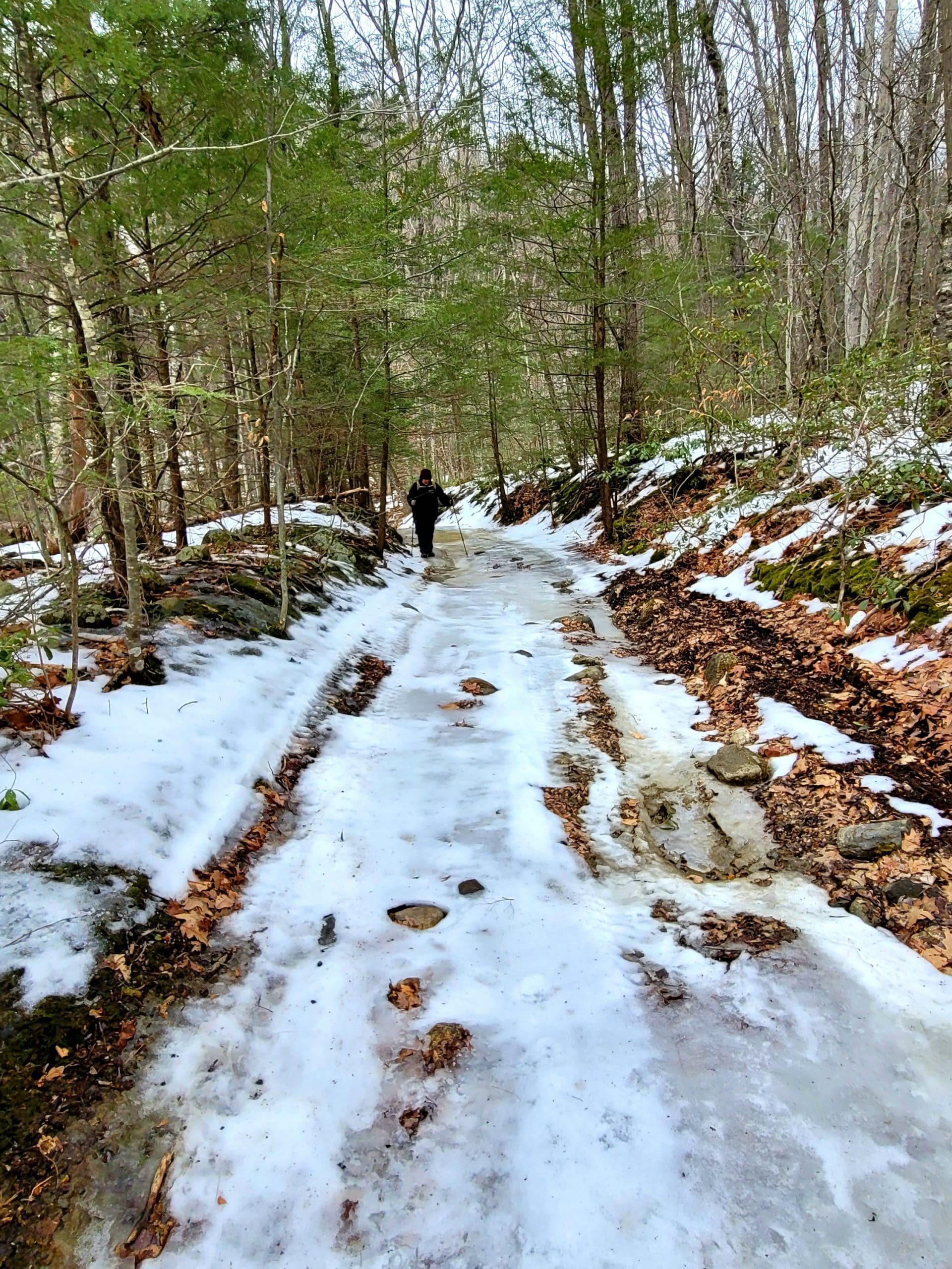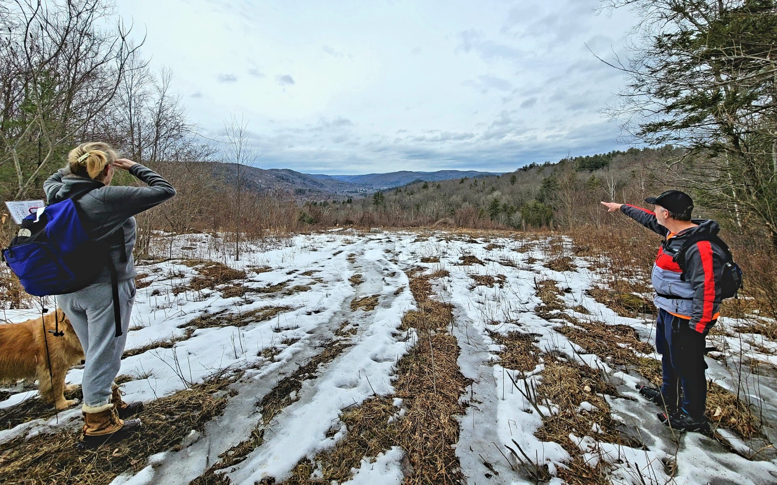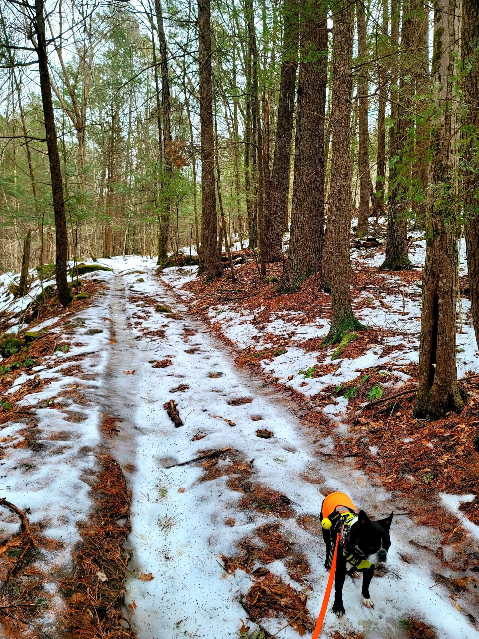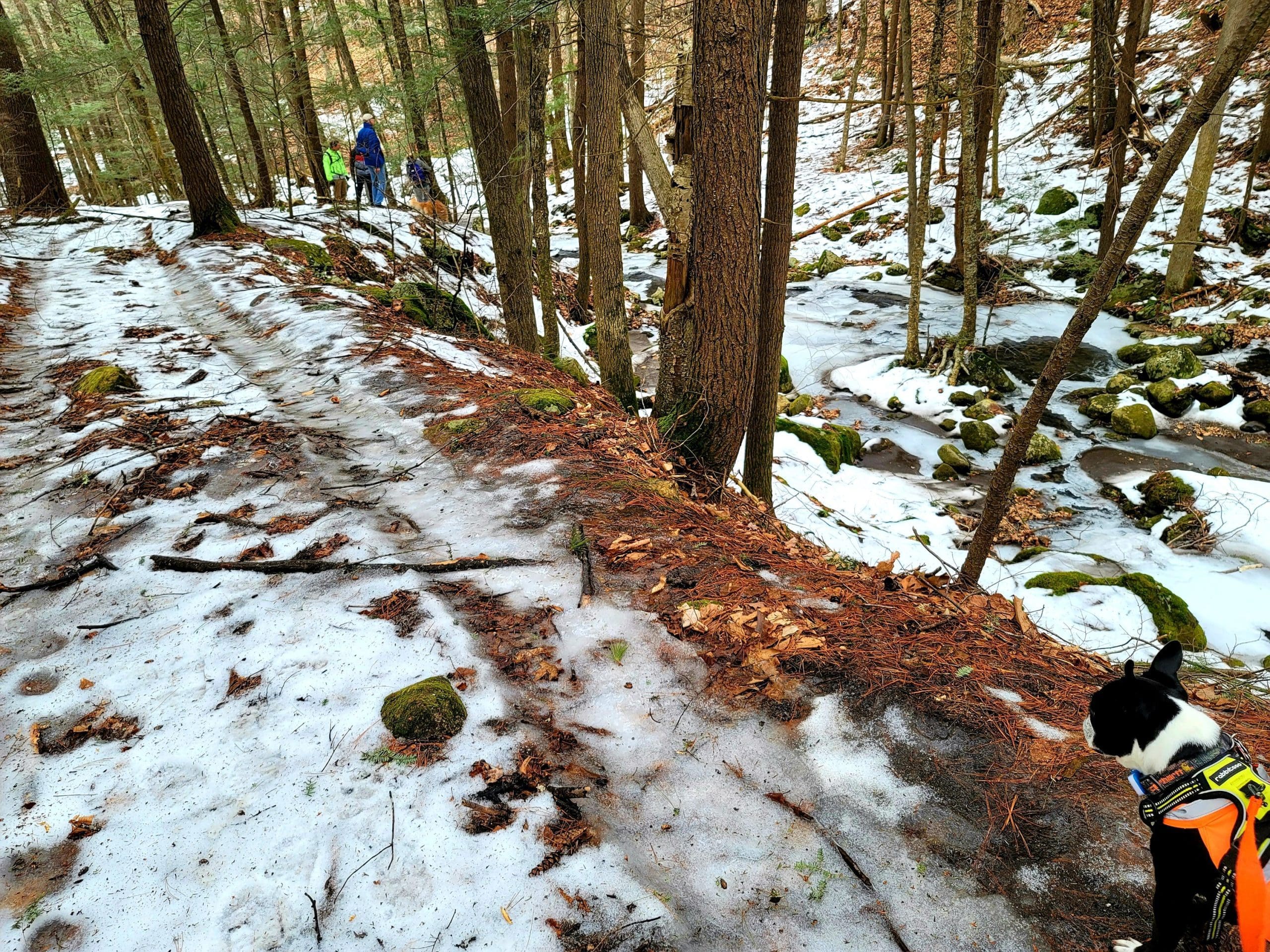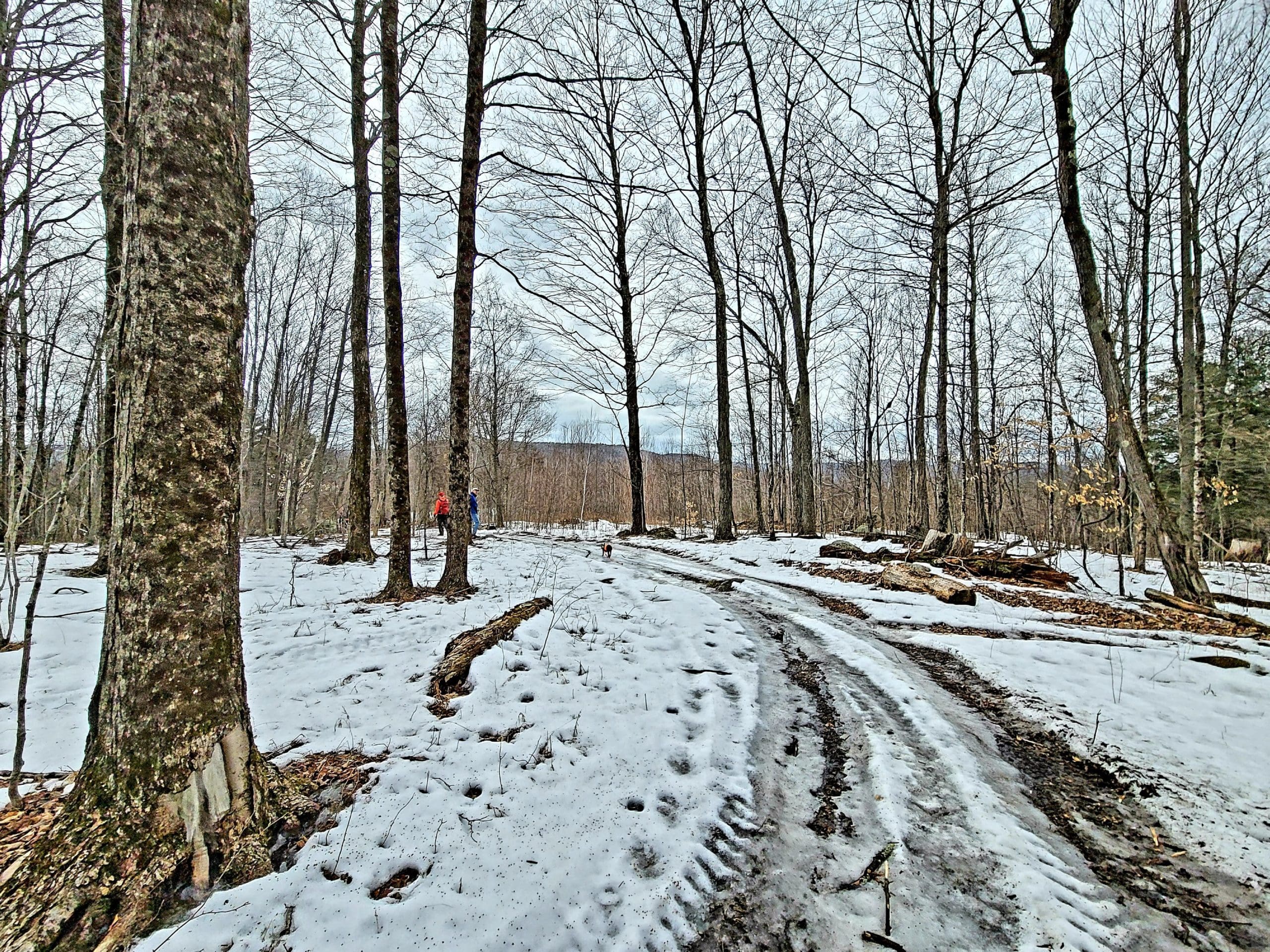 county road flash hike high up on the Montgomery hillside. This old road was once bustling with folks getting from Carrington Road to Pomeroy Road long before Russell Road was built up the mountain. The entire mountainside just east of the Shatterack ridge was used for grazing back in the 1800’s and was known as the Brant lot. Now wooded with young growth, the original 200+ year old oaks and ironwood are easy to spot. The overlook of Huntington is amazing. An old well formed meticulously by natural oval stones is the only one we have ever seen. The old road continues west to Bearden Brook, there it follows the brook both north and south. We saw amazing amounts of animal tracks.