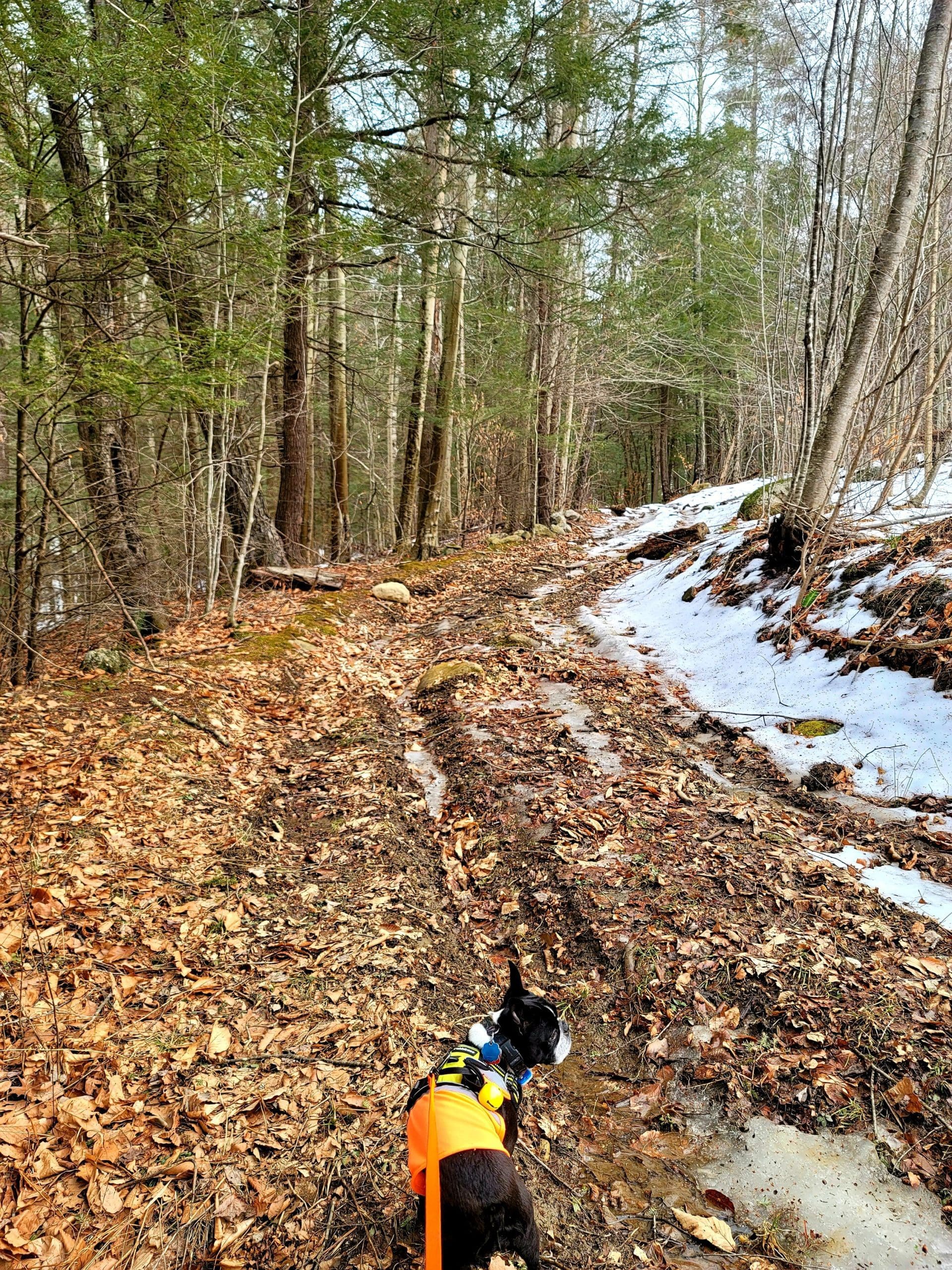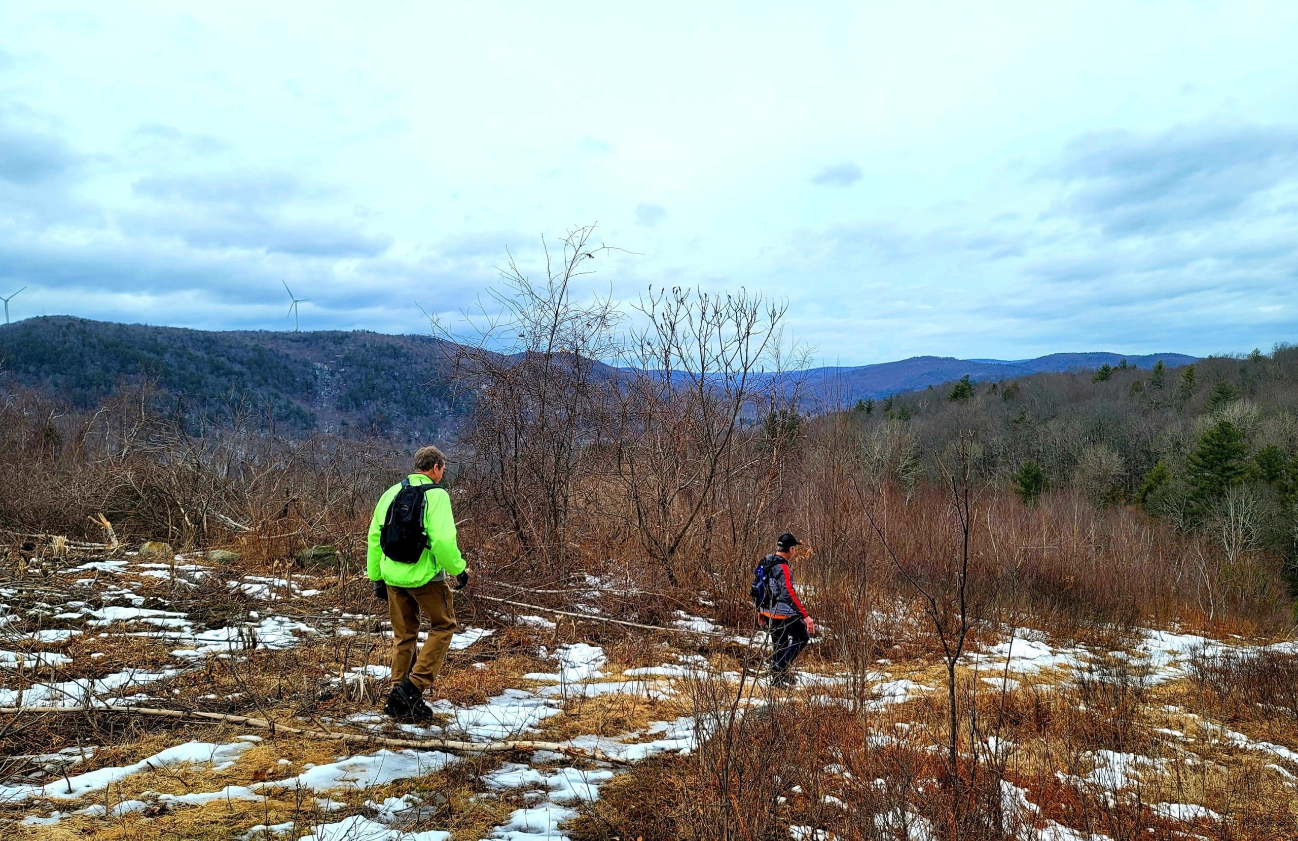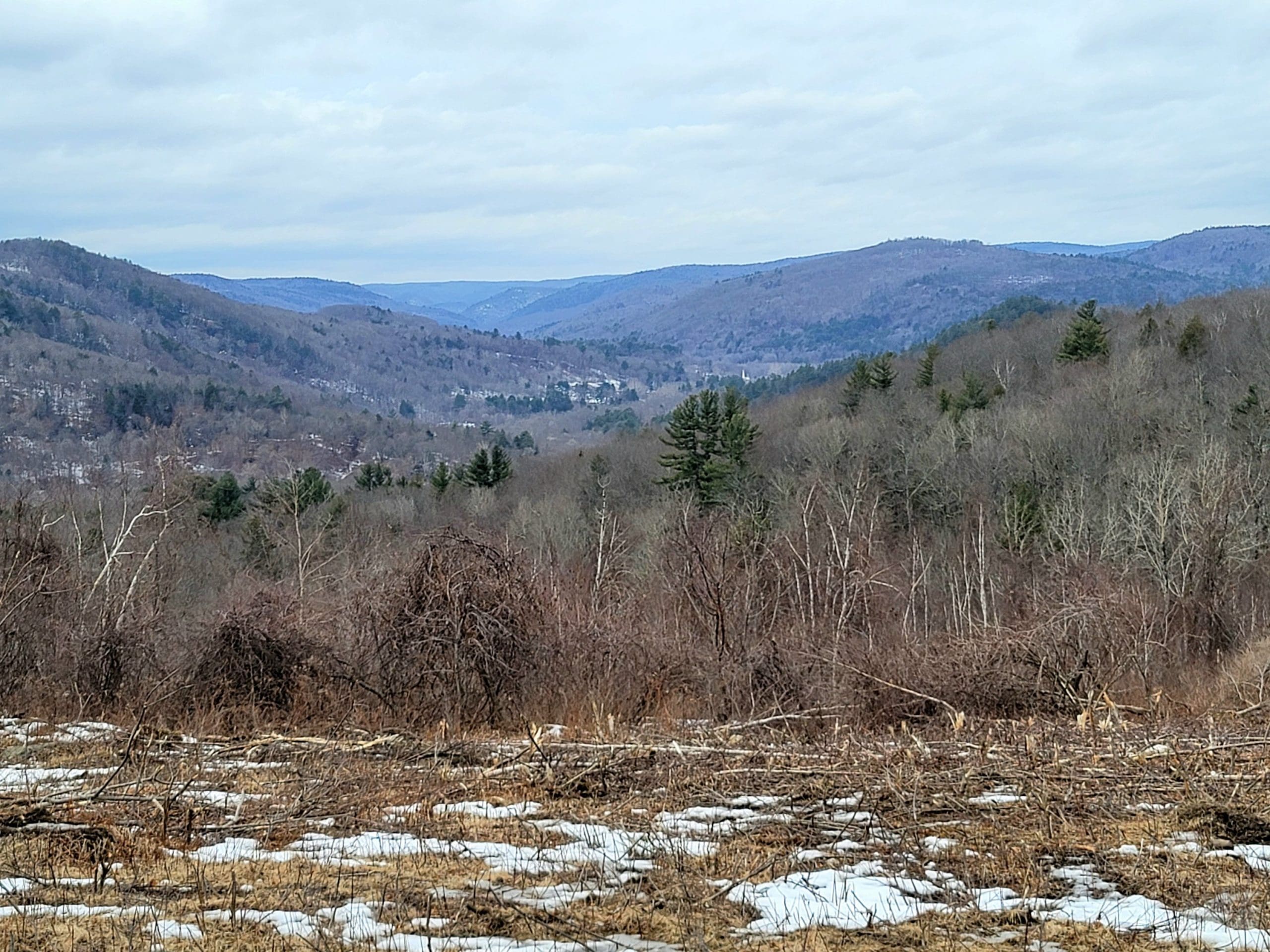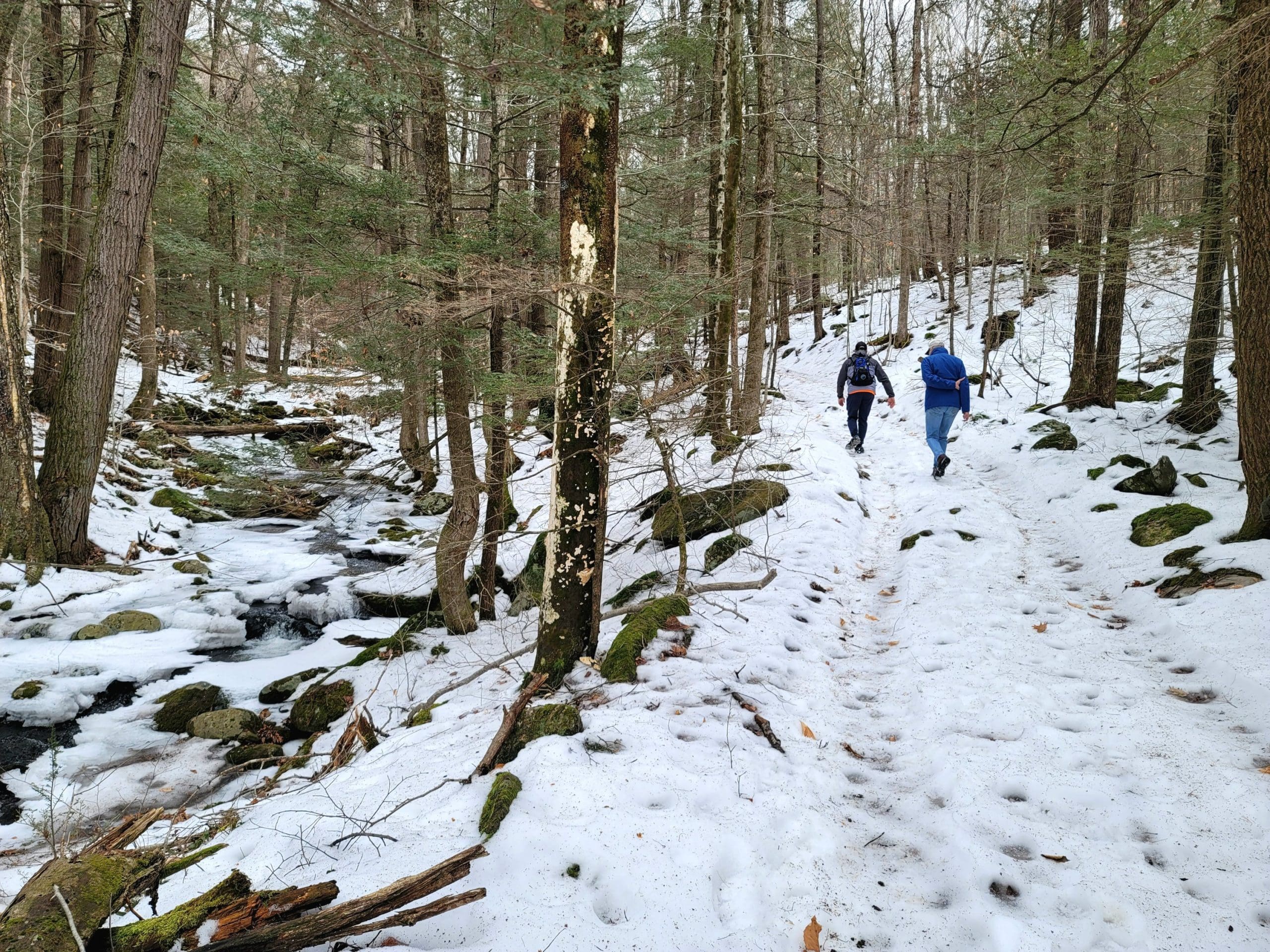 county road flash hike high up on the Montgomery hillside. This old road was once bustling with folks getting from Carrington Road to Pomeroy Road long before Russell Road was built up the mountain. The entire mountainside just east of the Shatterack ridge was used for grazing back in the 1800’s and was known as the Brant lot. Now wooded with young growth, the original 200+ year old oaks and ironwood are easy to spot. The overlook of Huntington is amazing. An old well formed meticulously by natural oval stones is the only one we have ever seen. The old road continues west to Bearden Brook, there it follows the brook both north and south. We saw amazing amounts of animal tracks.