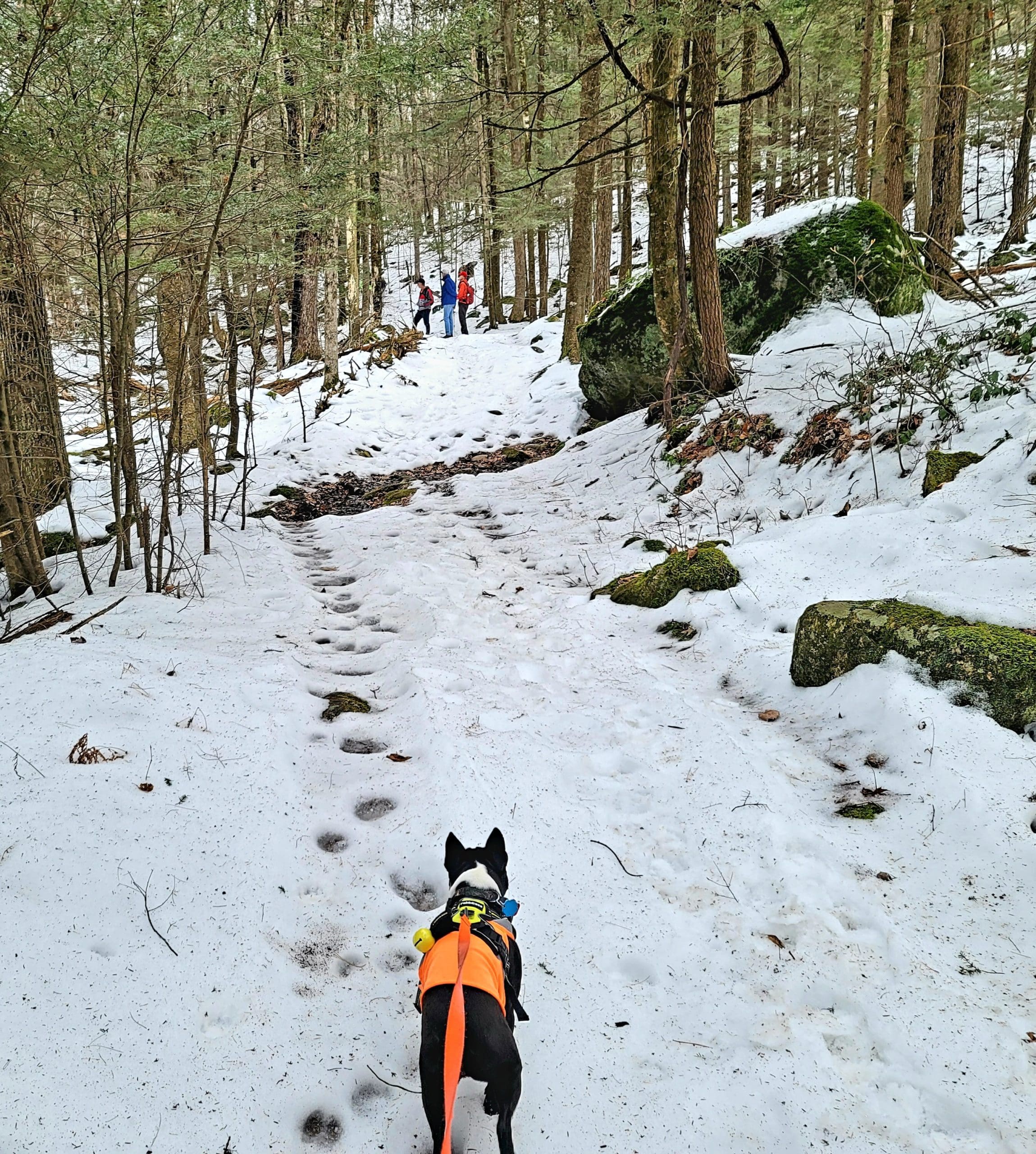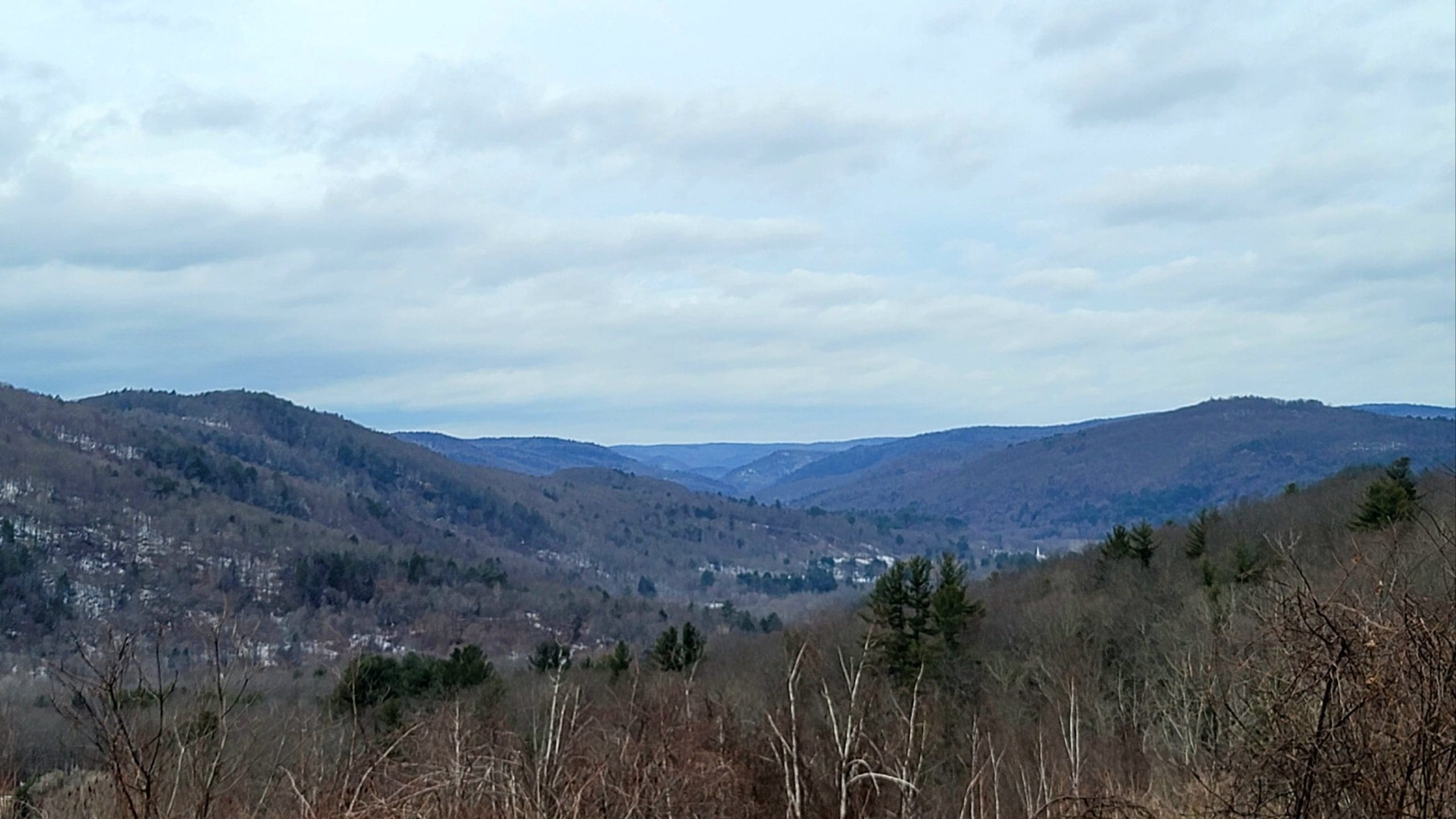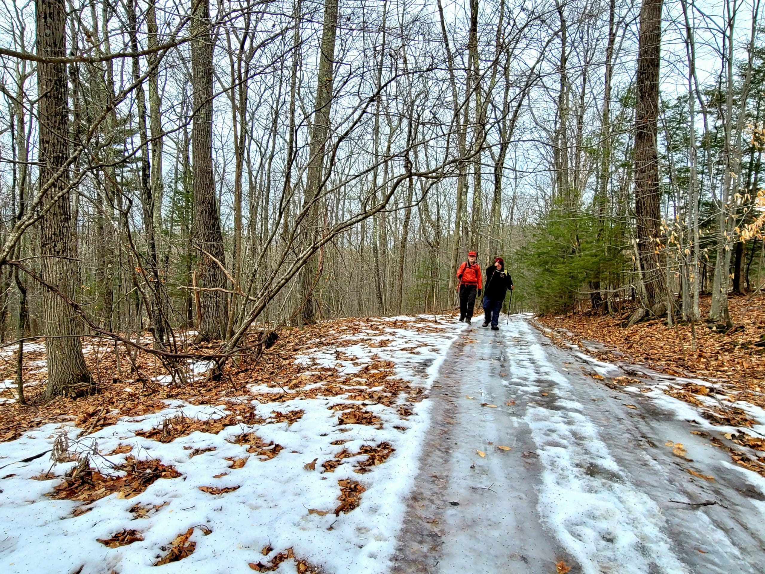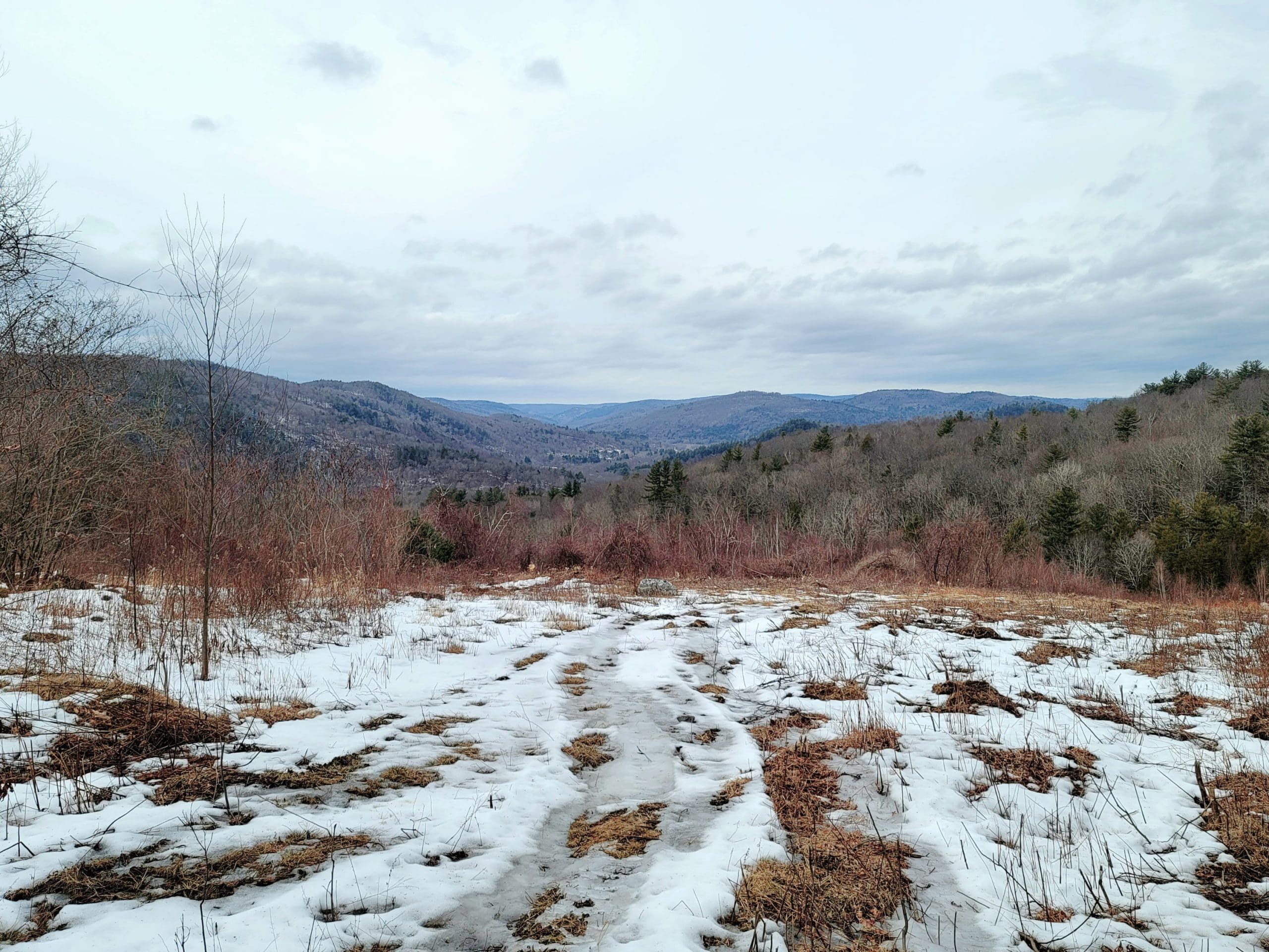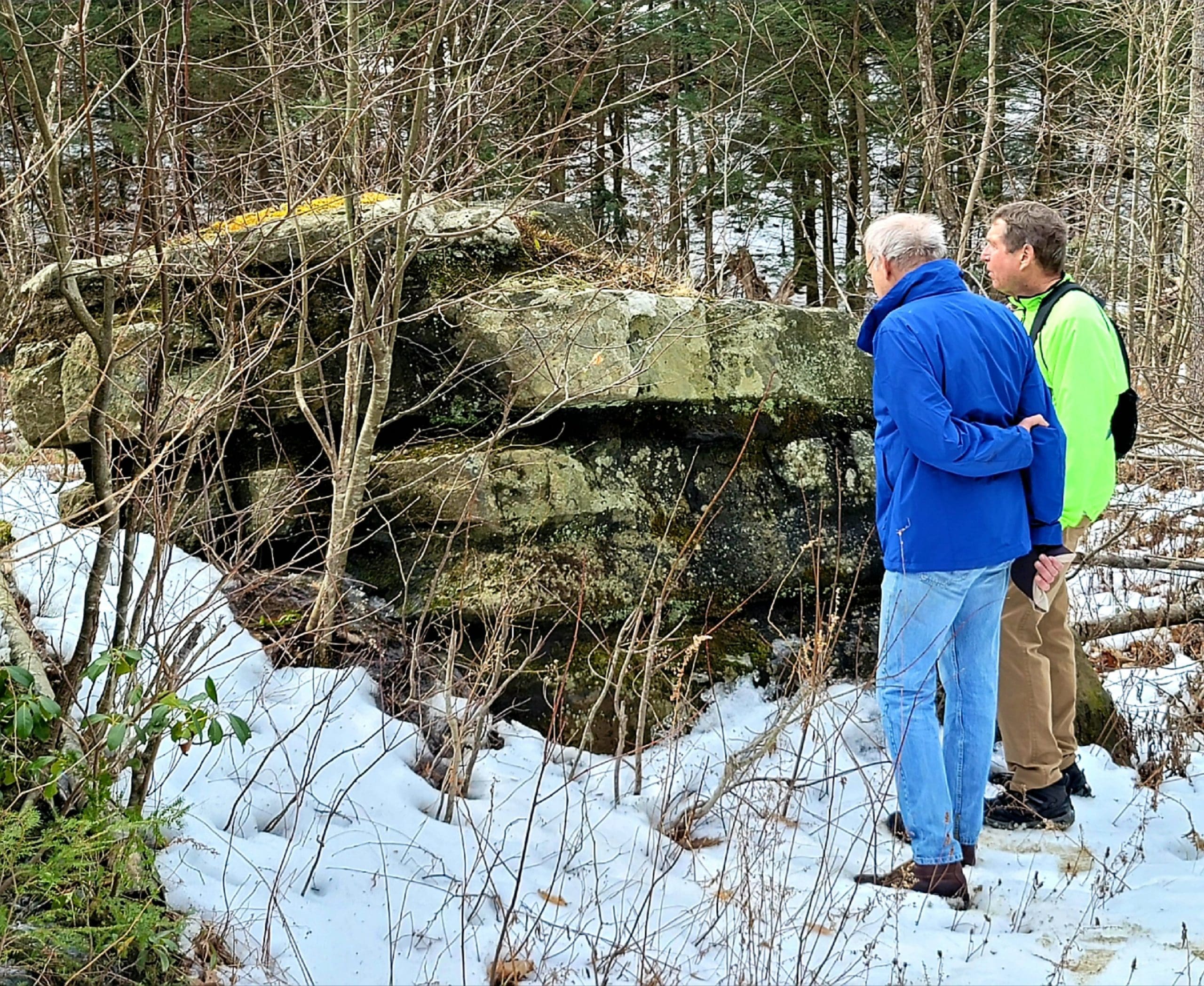 county road flash hike high up on the Montgomery hillside. This old road was once bustling with folks getting from Carrington Road to Pomeroy Road long before Russell Road was built up the mountain. The entire mountainside just east of the Shatterack ridge was used for grazing back in the 1800’s and was known as the Brant lot. Now wooded with young growth, the original 200+ year old oaks and ironwood are easy to spot. The overlook of Huntington is amazing. An old well formed meticulously by natural oval stones is the only one we have ever seen. The old road continues west to Bearden Brook, there it follows the brook both north and south. We saw amazing amounts of animal tracks.