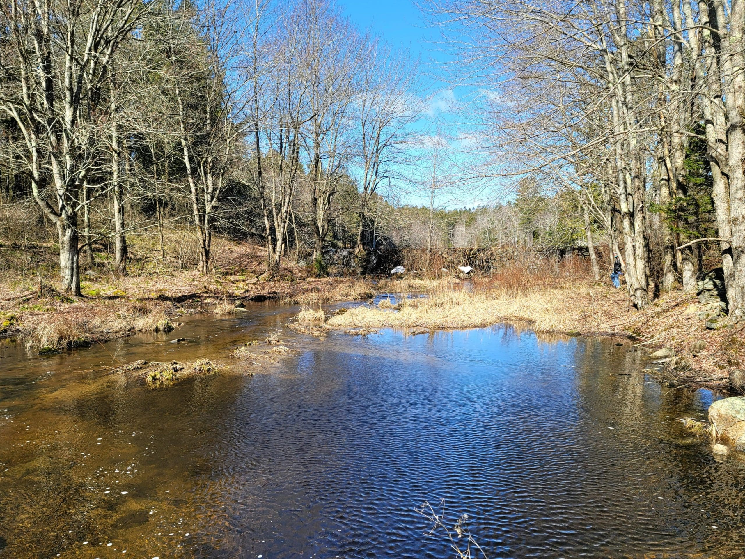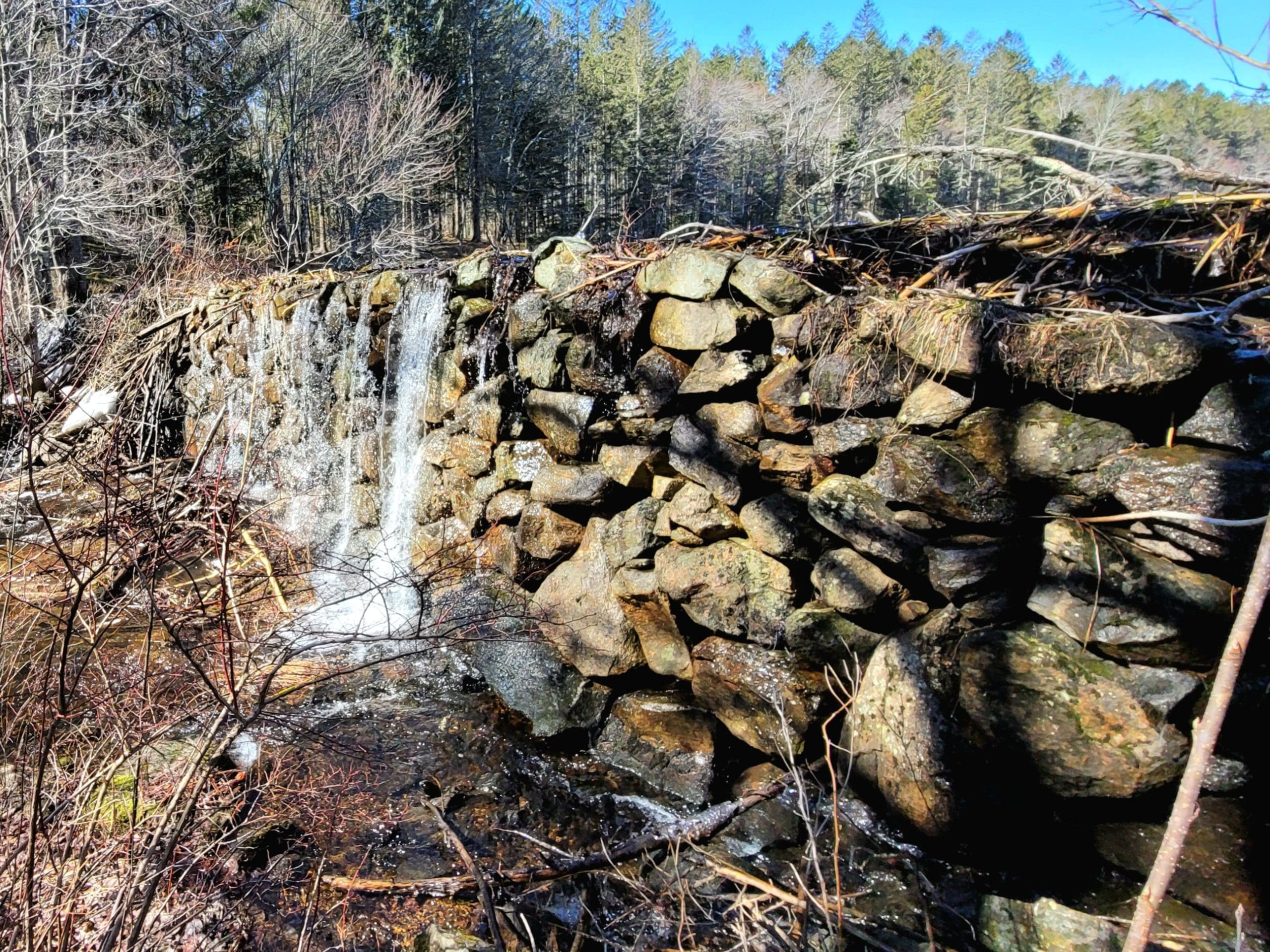 Codding’s stone dam 1830 still holds water, the infinity edge is spectacular as the dam height is about 6 feet standing under it. The beavers have it easy here. The sawmill was located just down stream.