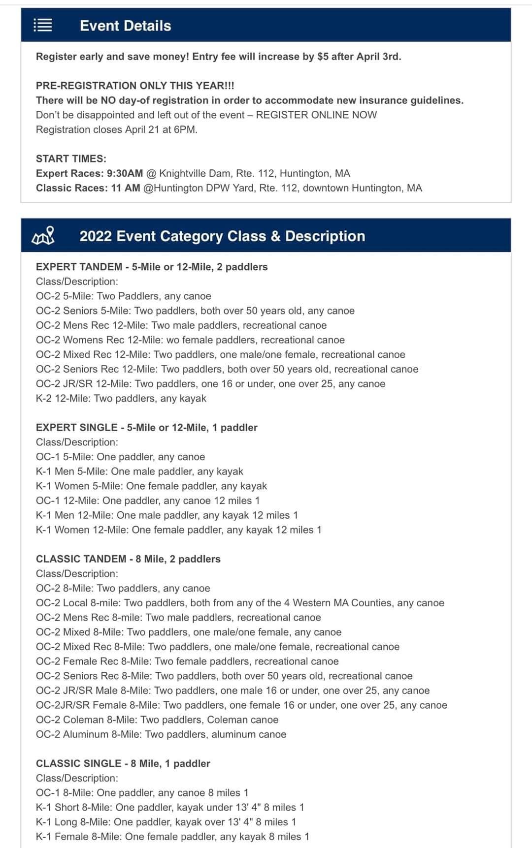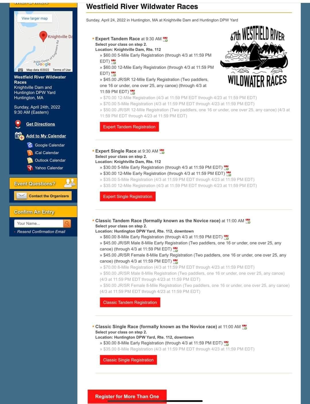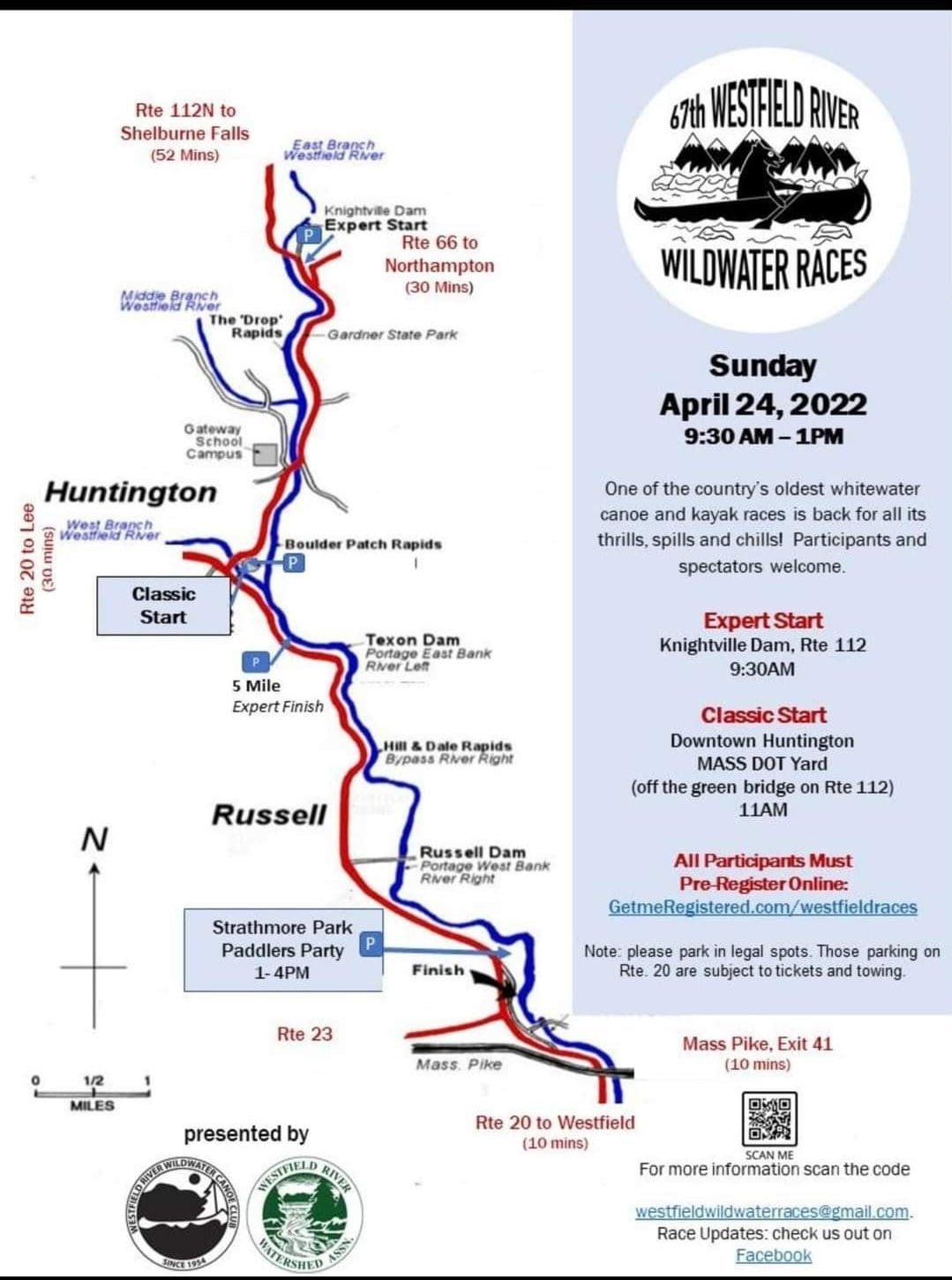 What a fabulous day with the Westfield River Wildwater Races in Huntington and Russell, MA on the Westfield River with hundreds of spectators and competitors in canoes and kayaks registering for either the Expert 5 mile and 12 mile runs or the 8 mile Classic events! The water was high at 1300 cfs so there was plenty of excitement and challenge on the river making for fast conditions. It was gratifying to work with the race committee to revive what had been the longest continuously running wildwater race in the nation before the two year hiatus due to the Covid pandemic. Congratulations to the volunteers, the supporters and the donors who made this amazing event such a resounding success! On to next year!!! #WestfieldRiverRaces #RaceCommittee #CanoesKayaks #BigWater #LotsOfBoats #ExcellentTurnout #LotsOfYoungPeople #67thEvent Harry Rock Edward Hamel Travis Wheeler Karen Sikes McTaggart Joe Shaw Heather Wyman New England Canoe and Kayak Racing Association Brian Conz Berkshire Outfitters Johnny Canoes Kurt Kuehnel Neil Wheeler Elizabeth Massa Sue Slowick Tim Allen Terése Wheeler John DeFeo