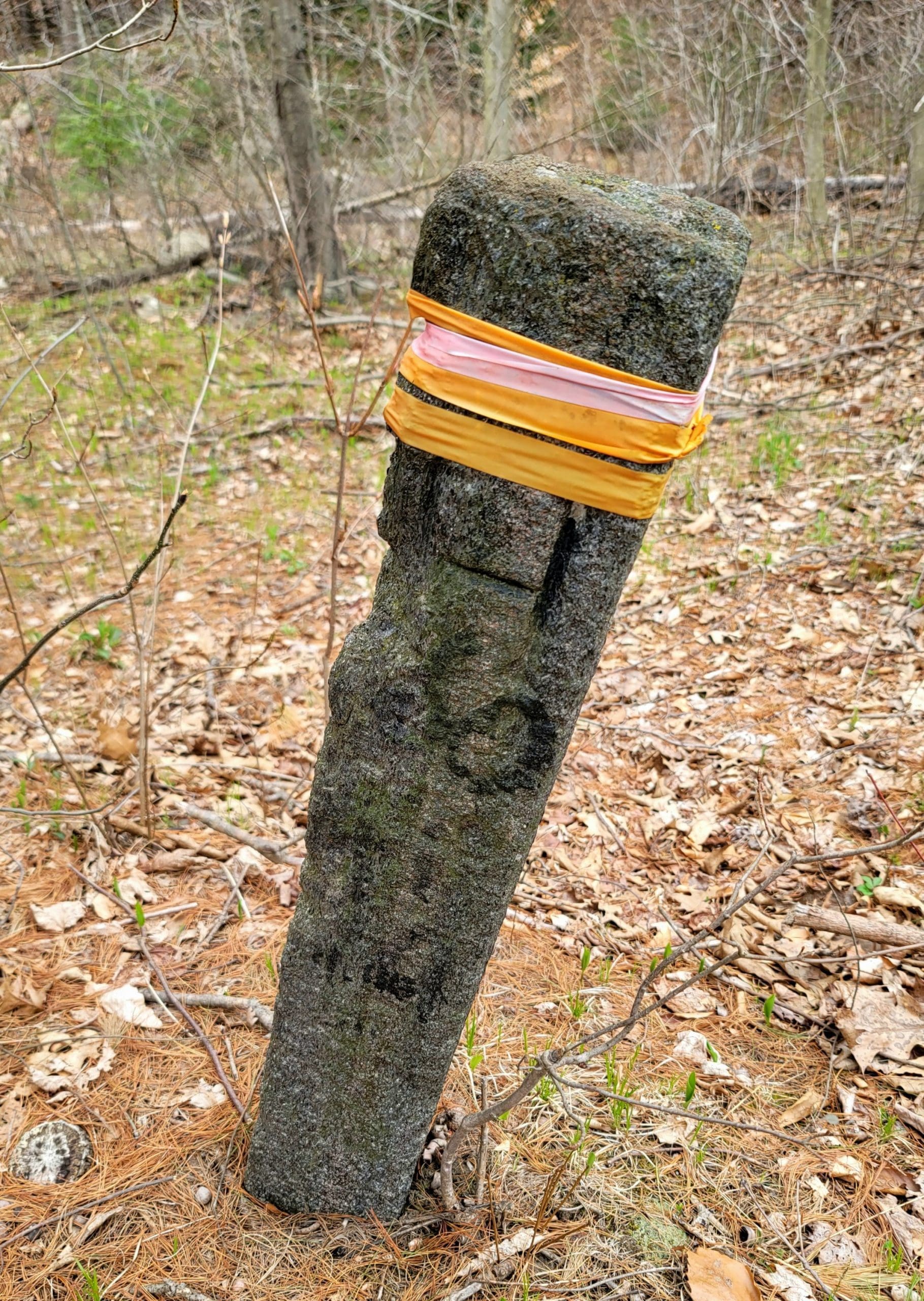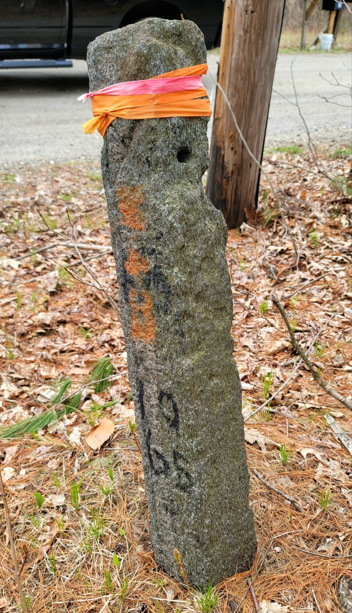 Huntington Montgomery Boundary Stone, when Thomas Road went thru to Huntington. We get around much quicker on the old roads in the woods than the present day blacktop!
