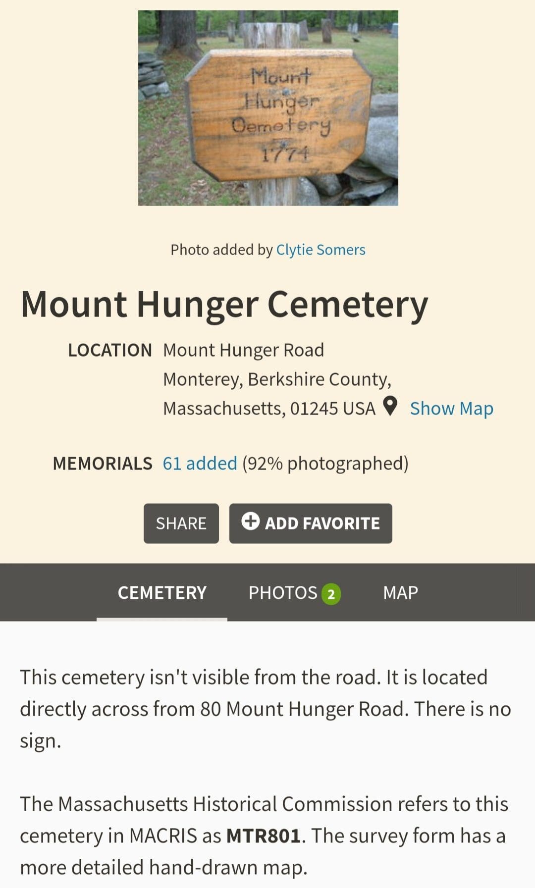 Mount Hunger Cemetery in Monterey est. 1774 in the woods at Beartown State Forest on Mount Hunger Road. #montereyma