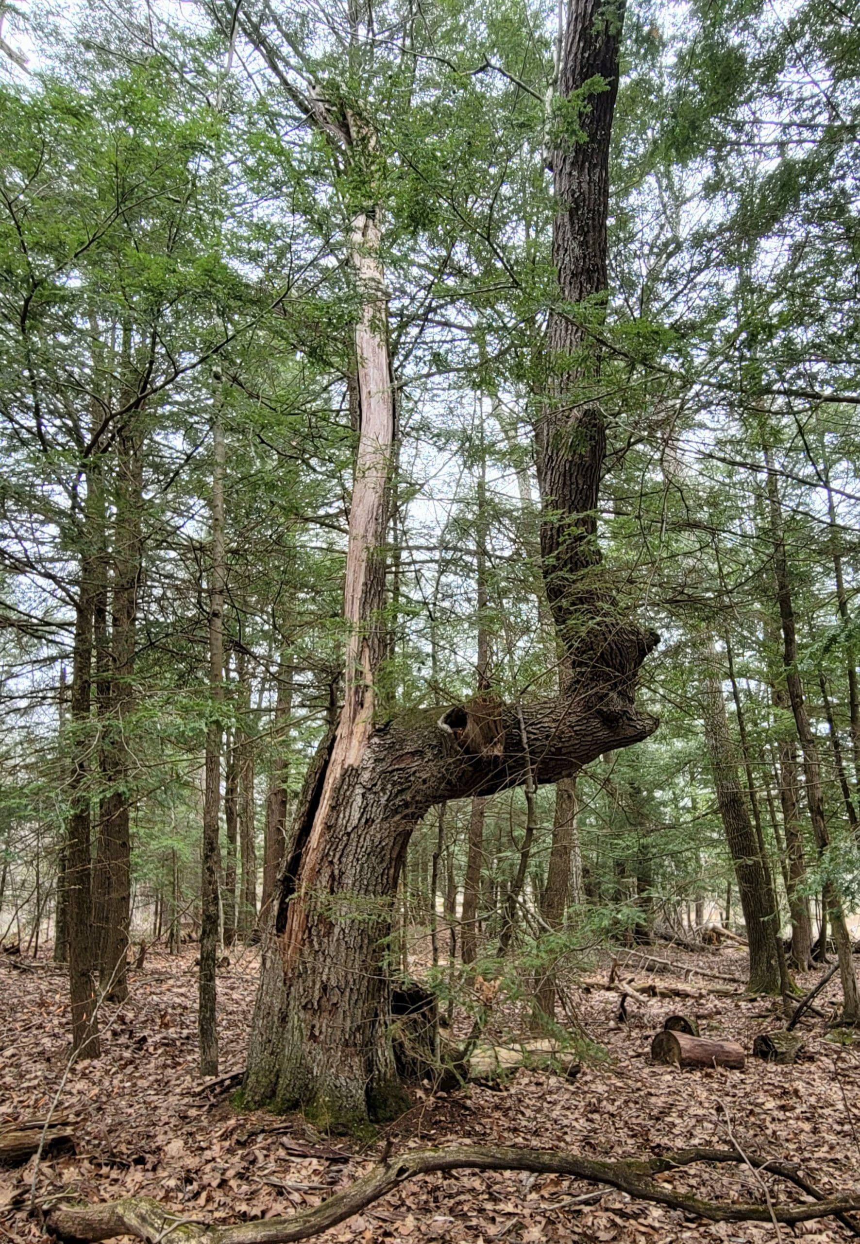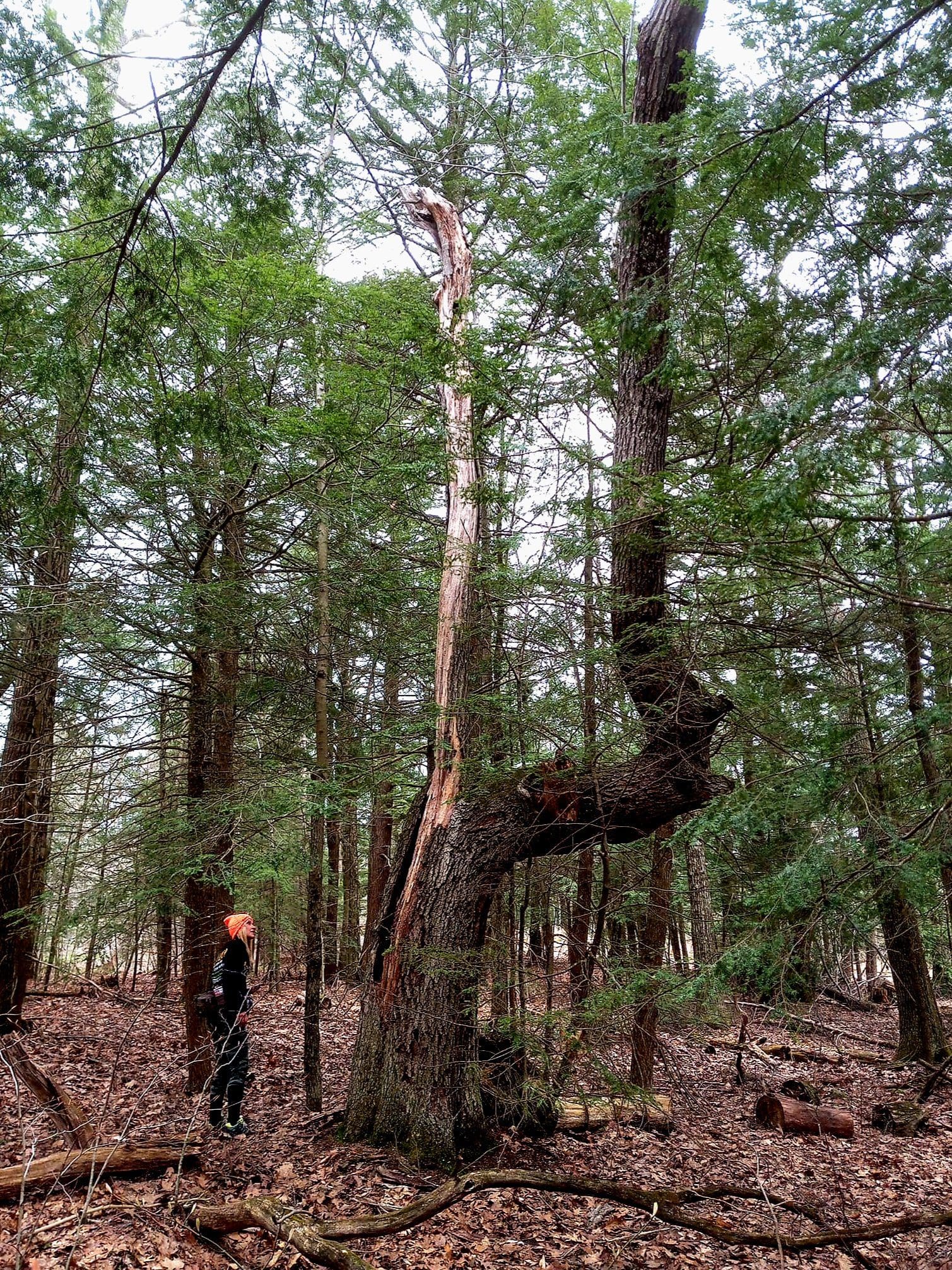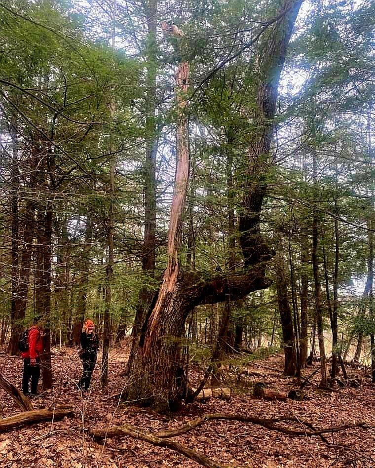 Indian Tree near the old Lee Westfield Road bed in Becket and pointing to that very old footpath. #becketma #hikethehistory
