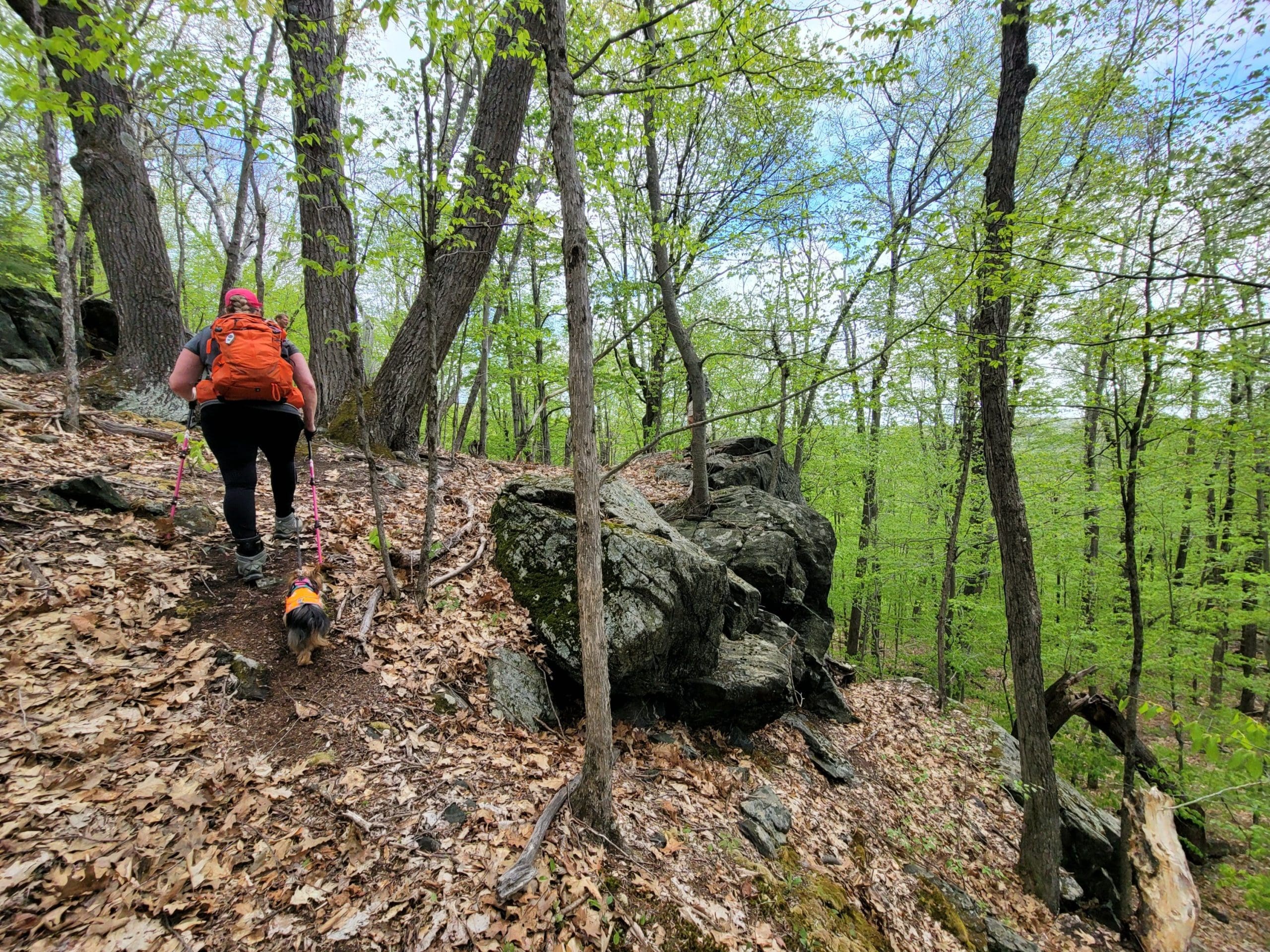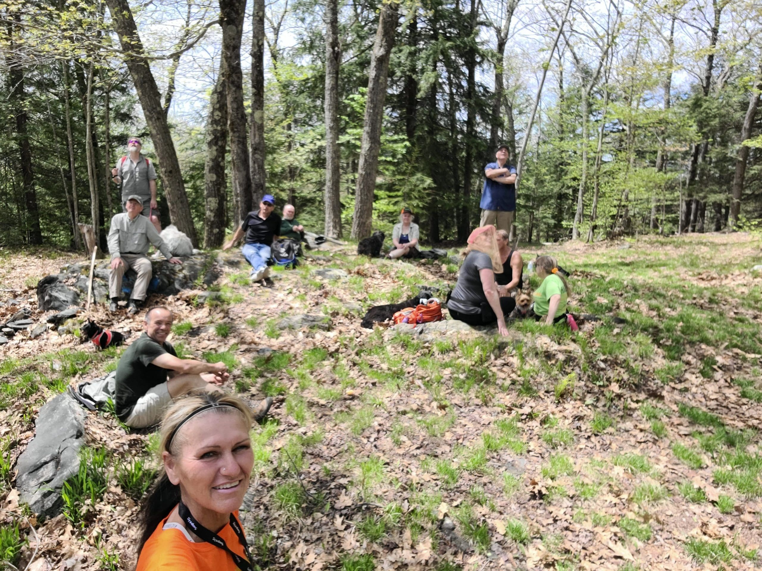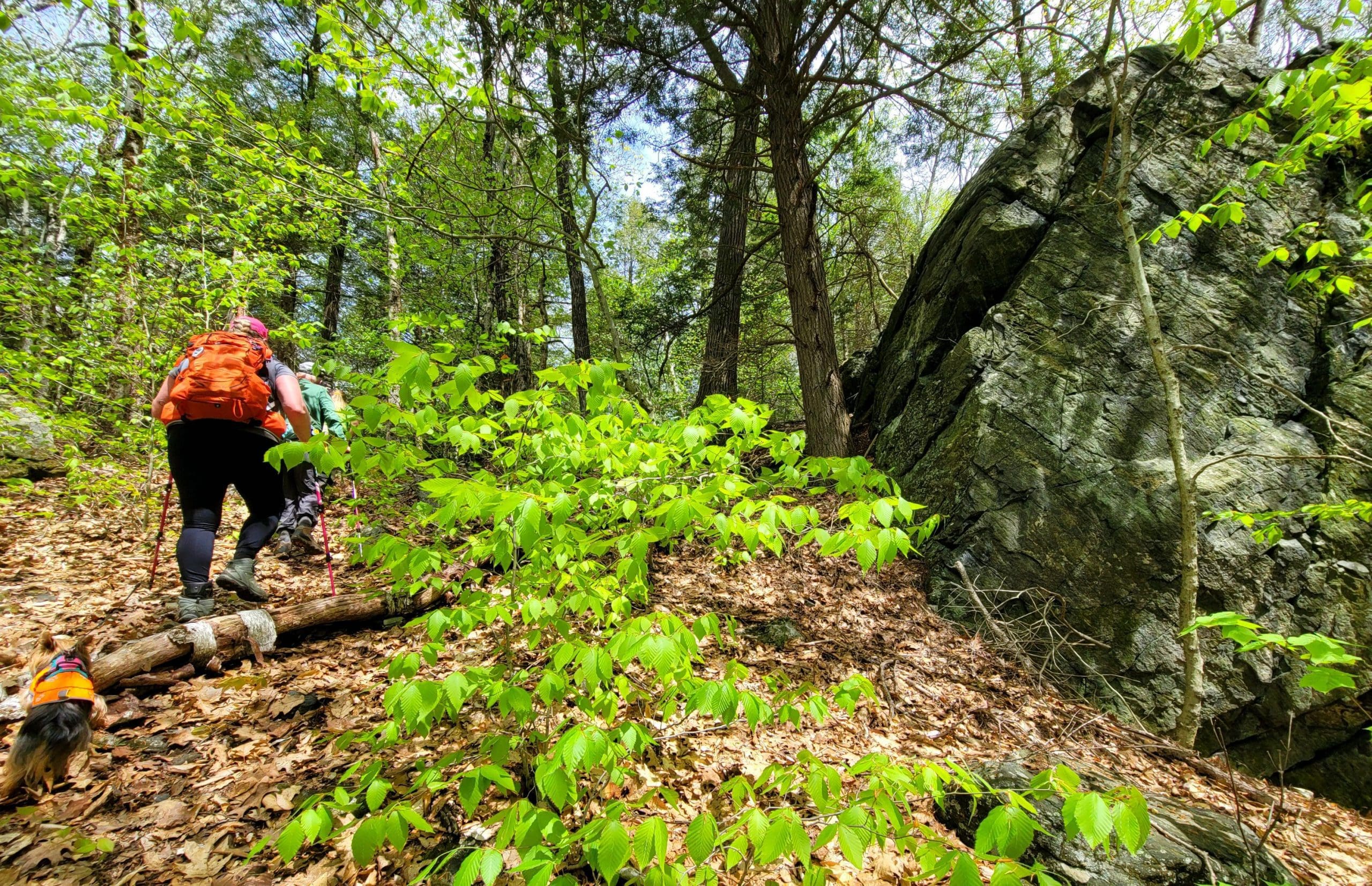 The Highlands Footpath is a walking journey across the Hilltowns of Western Massachusetts! Our May group hike took us up Gobble Mountain in Chester, with a 1,000 foot elevation gain on this unique mountain which also holds several mines! The trail head for this section is at the boot post directly across from Hampden Street where it meets Route 20. Parking at the Chester Becket Railroad Trailhead. The trail is blazed green up to the Nature Conservency property, and then continues white dot blazed as this is the Unkamit’s Path trail. We went down the Beacon Trail for a 5 hour 4.3 mile hike (s0ot a car on Beacon trailhead Middlefield Road)