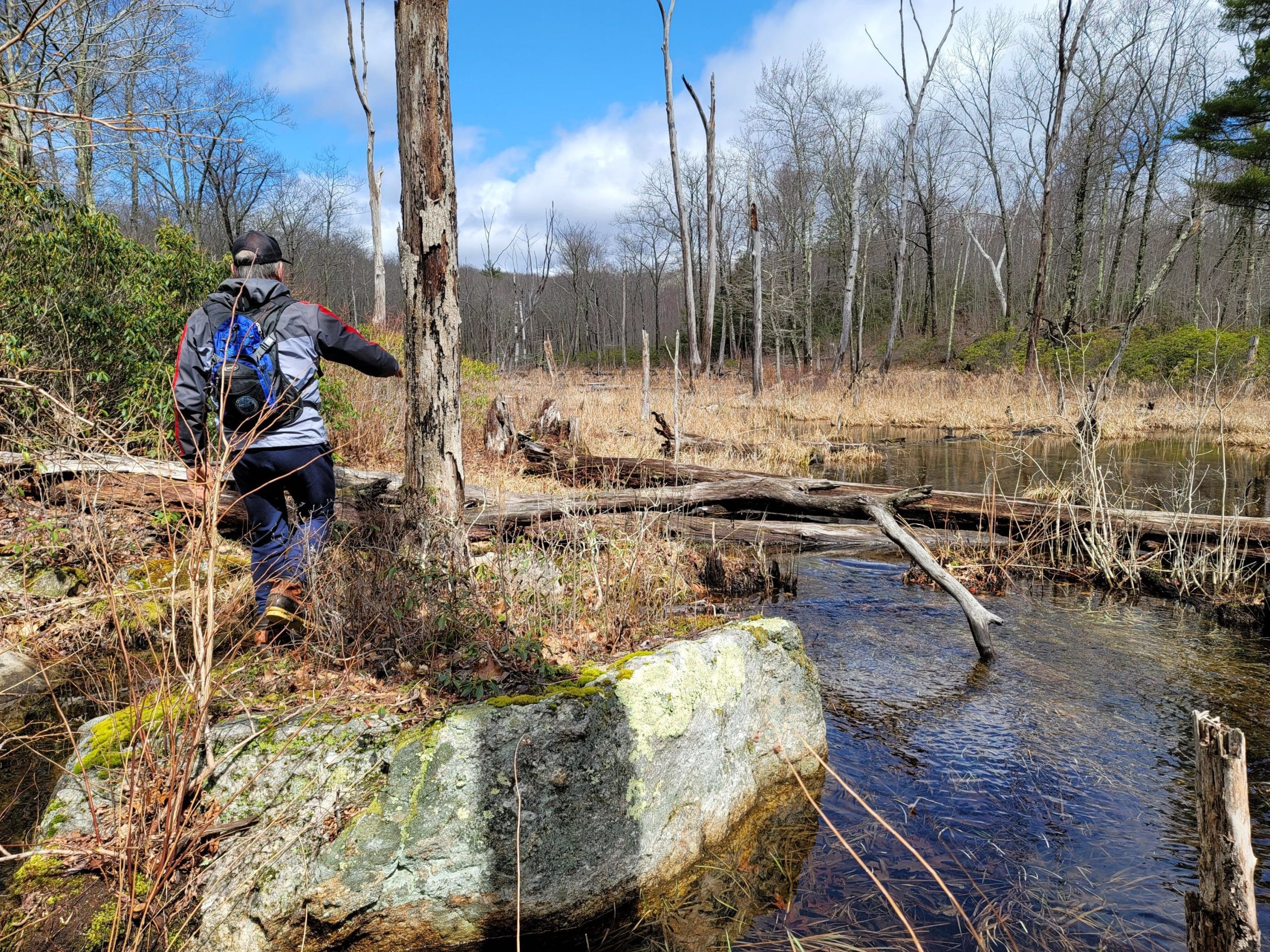 Another section, here at the second beaver swamp close to the English Grass Trail Montgomery on Unkamit’s Path section 7, white blaze Indian footpath on a Flash Hike Friday five miler one of the many beautiful trails thru Moose Meadow and the Tekoa Mountain Wildlife Management Area. Parking at Reservoir Road in Westfield or Mountain House Road in Montgomery. The Indian footpath was first blazed in this section 1968 by John Murphy and Henry Warchol from Westfield State College.