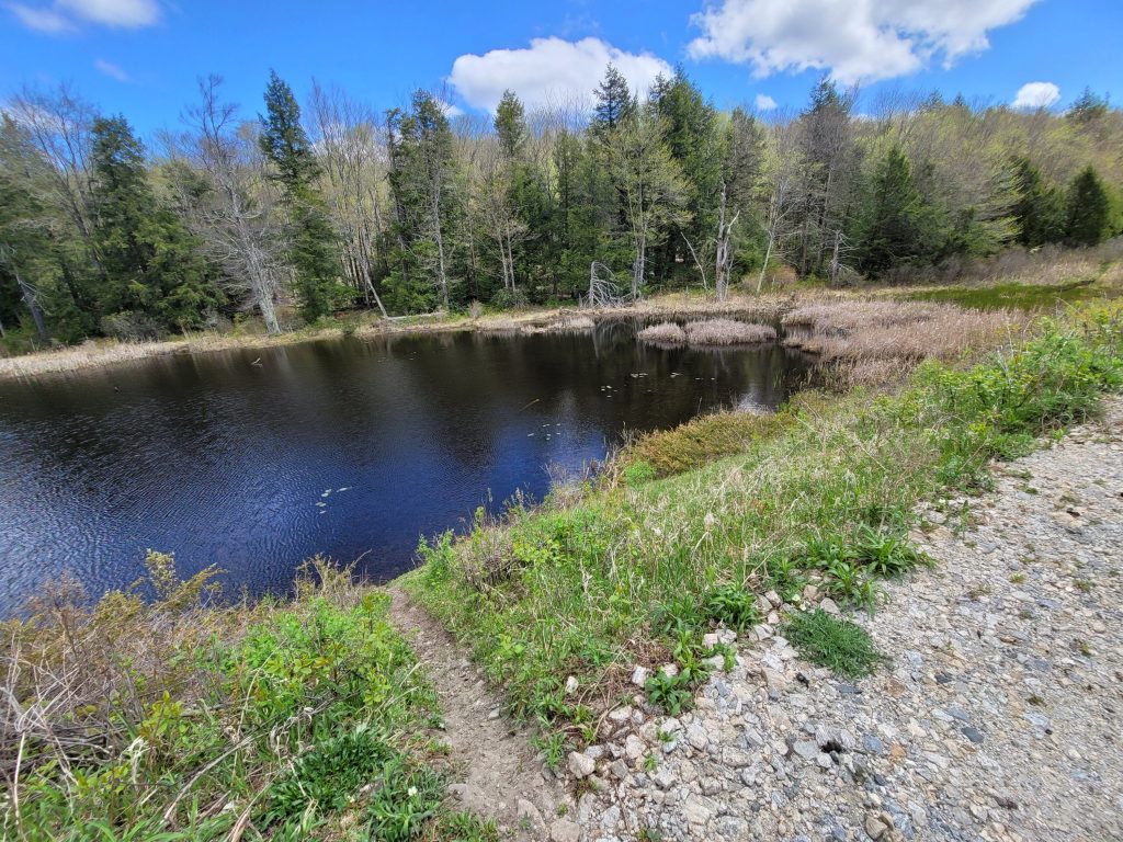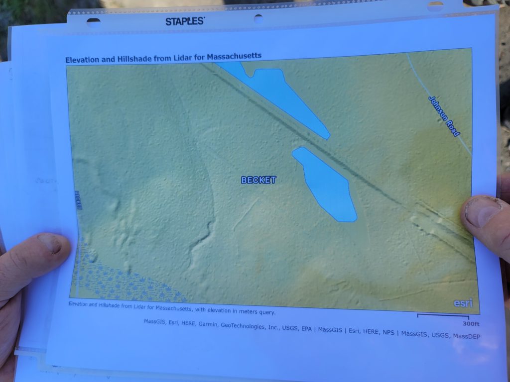 Flash Hike Friday on the old Huckleberry Trolley Line bed in Becket and Otis. After hiking the old Lee Westfield Road from one Otis/Becket town boundary to the other (see previous post) we took the Trolley back. This section of the line travels through the SW corner of Becket over Whitings Bridge as the grade rises to its highest point near the present day Williams Stone Quarry, which was the original Newell Quarry which was still in operation and used the trolley line for granite transportation! What a view those passengers had, wow! The line got murky and wet right where the Turnpike cut thru it, however we found a rare artifact there! Photos and maps from our research of materials courtesy of Gail Kusek Becket Historical and the Berkshire Street Railway publication and our own Karen at Russell Historical.